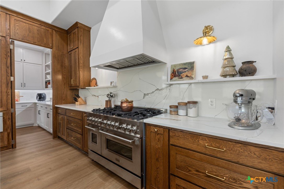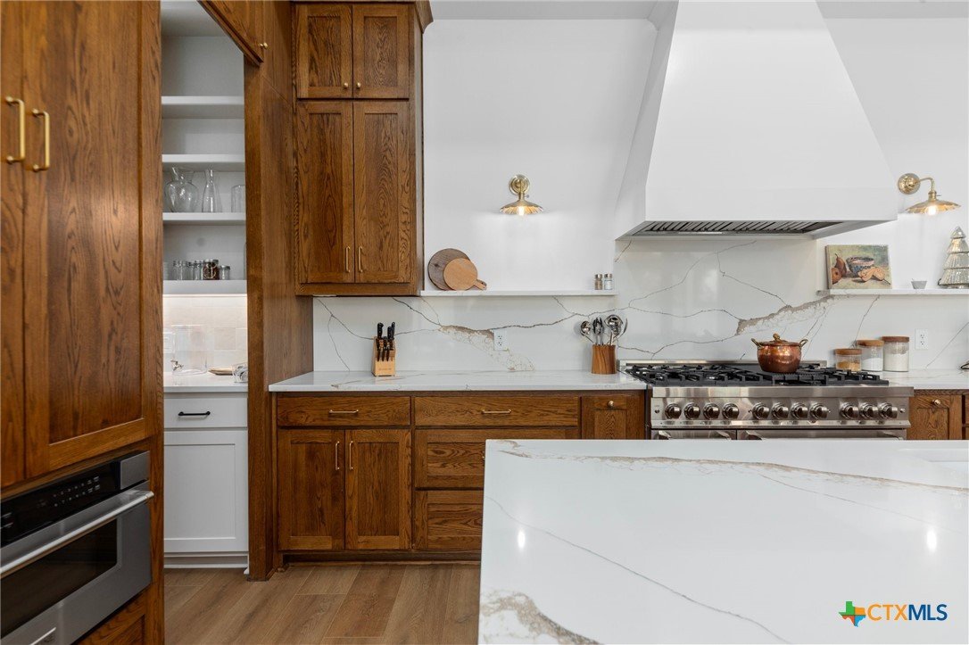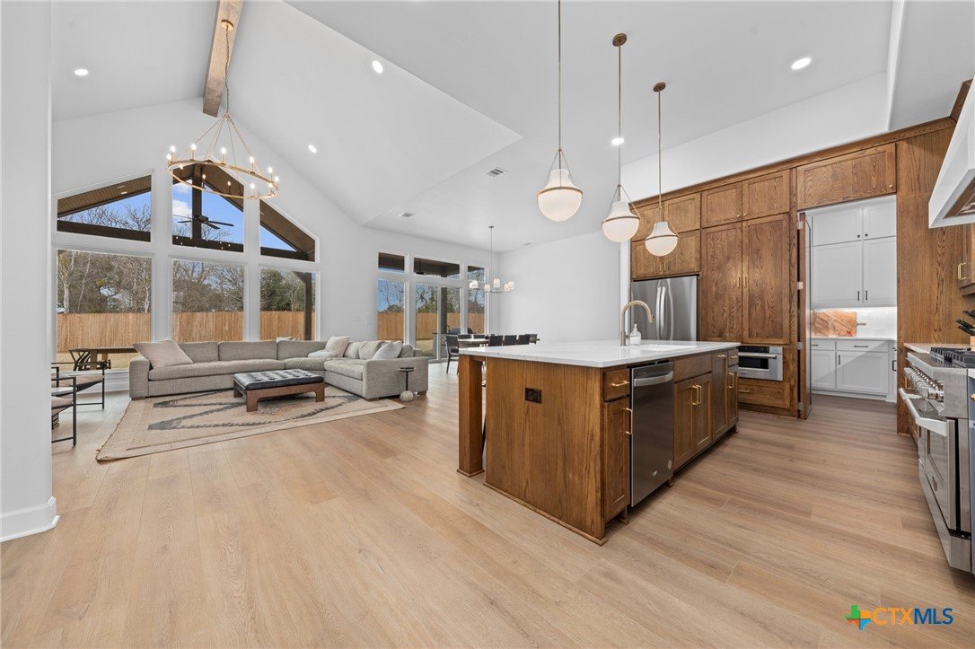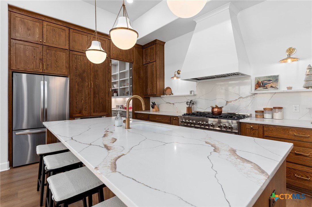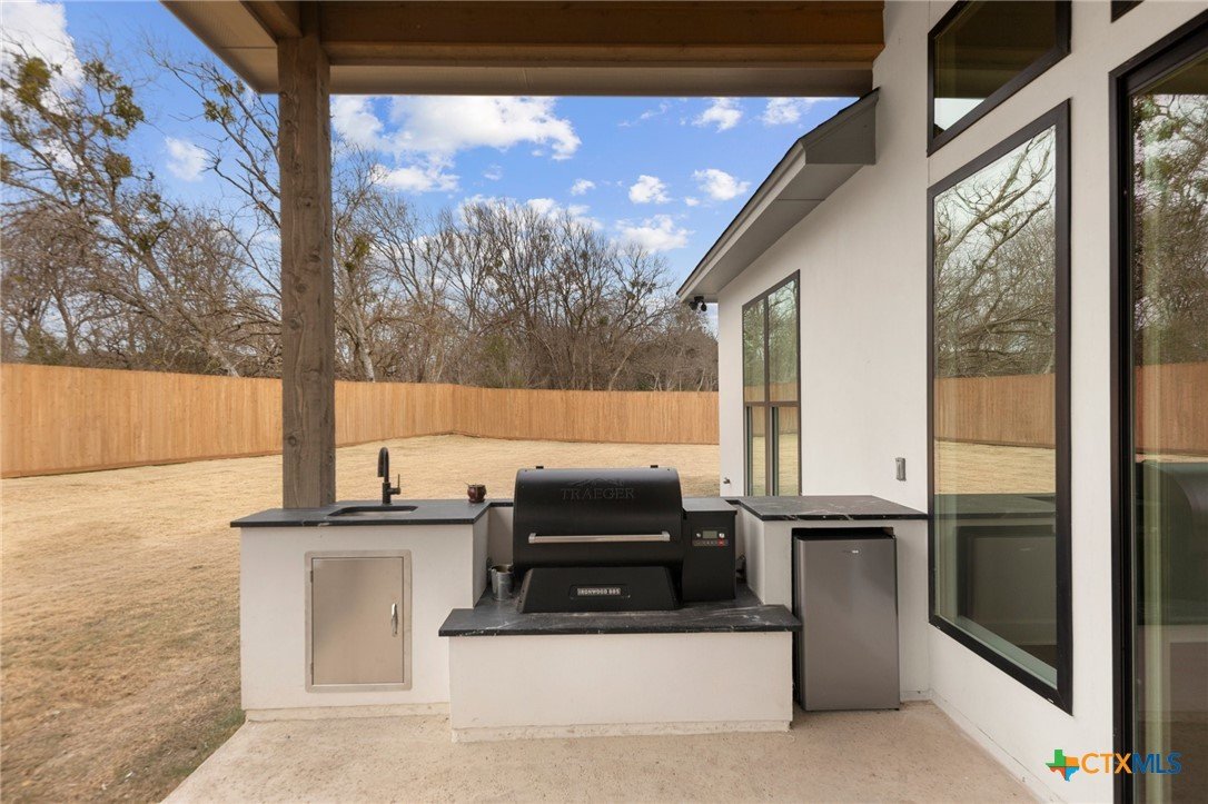 This stunning 4-bedroom, 3-bathroom home offers luxurious living with thoughtful upgrades and modern amenities. Nestled on a generous half-acre lot, this property provides ample space for families, guests, pets, and entertaining. Inside, you'll find elegant white oak cabinets and soft-close features throughout, complemented by sleek marble flooring in the bathrooms for a touch of sophistication. The heart of the home boasts a high-end Z Line dual range, ideal for culinary enthusiasts, and a hidden butler’s pantry concealed by a stylish false cabinet door. A versatile flex room provides space for a home office, gym, or playroom to suit your lifestyle needs. Outside enjoy the expansive backyard, complete with an outdoor kitchen featuring a Traeger grill—perfect for hosting gatherings. While you cozy up by the double-sided fireplace, your pets (for those pet lovers) will appreciate the insulated, heated, and cooled 8x8 doghouse, ensuring year-round comfort. The spacious 3-car garage provides ample storage and parking, catering to all your needs. With its blend of high-end finishes and functional spaces, this home offers a unique blend of comfort, beauty, and convenience. Whether you're relaxing in the beautifully designed interior or enjoying the outdoor oasis, this property is a true gem. Don’t miss the opportunity to make this exceptional home yours!