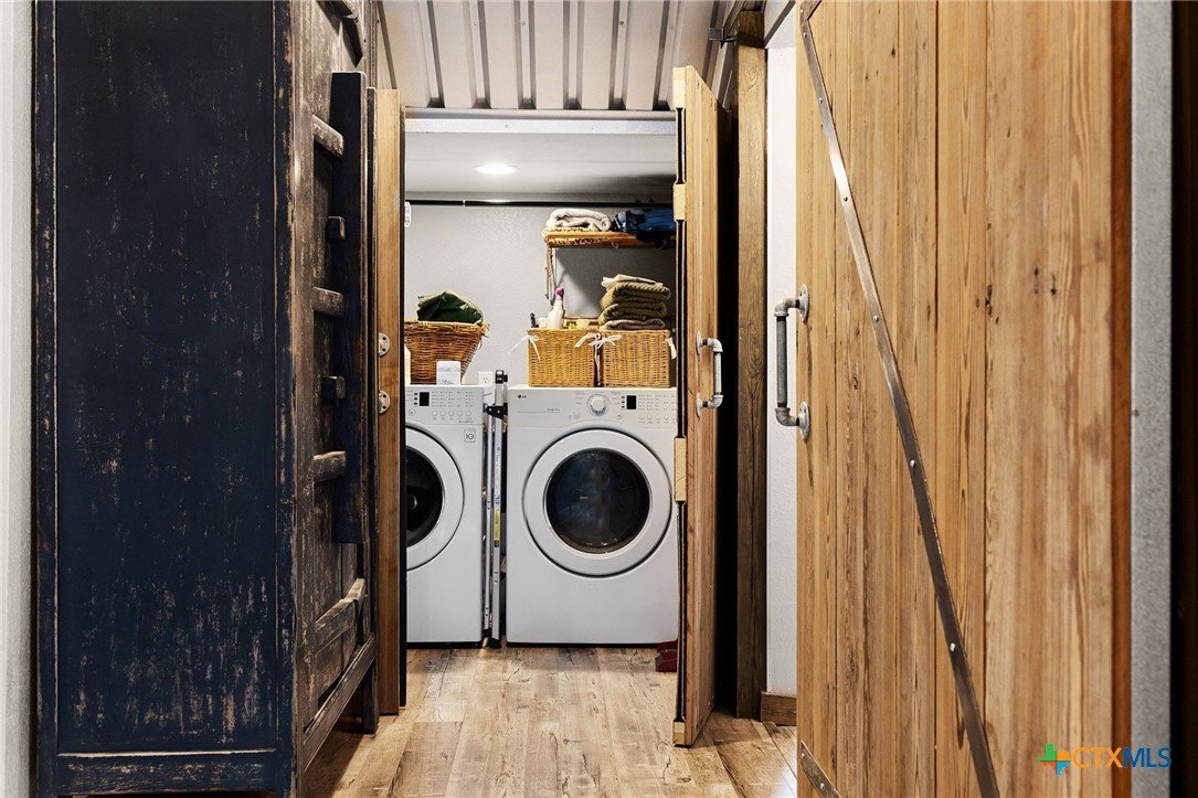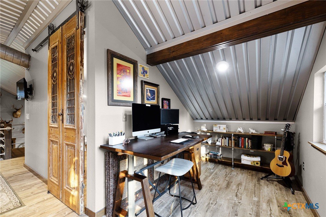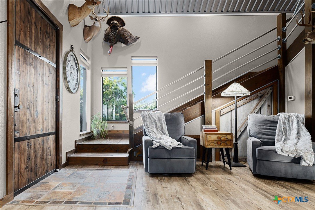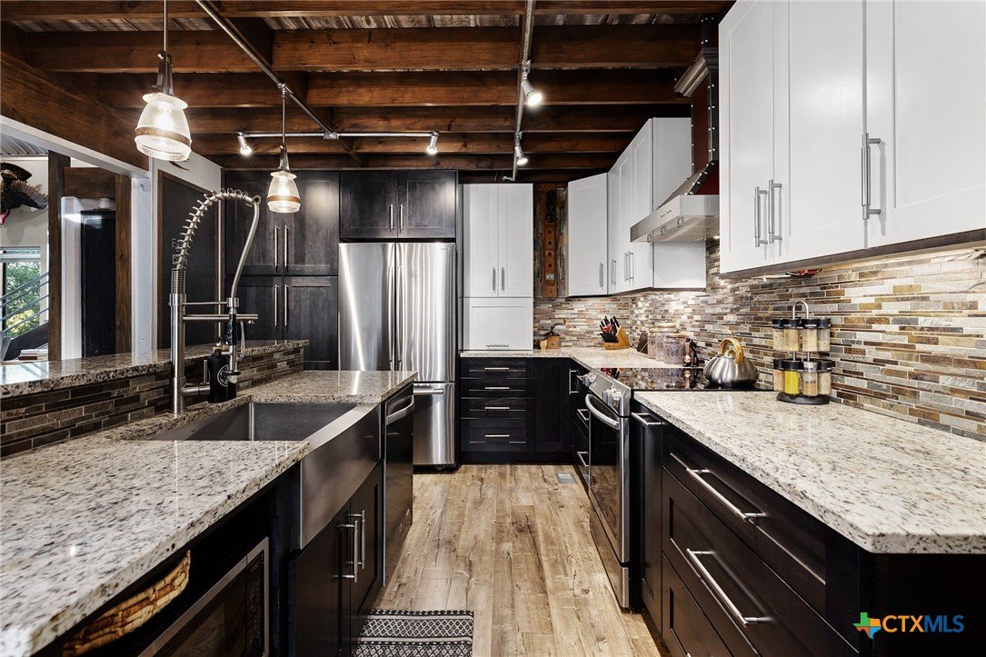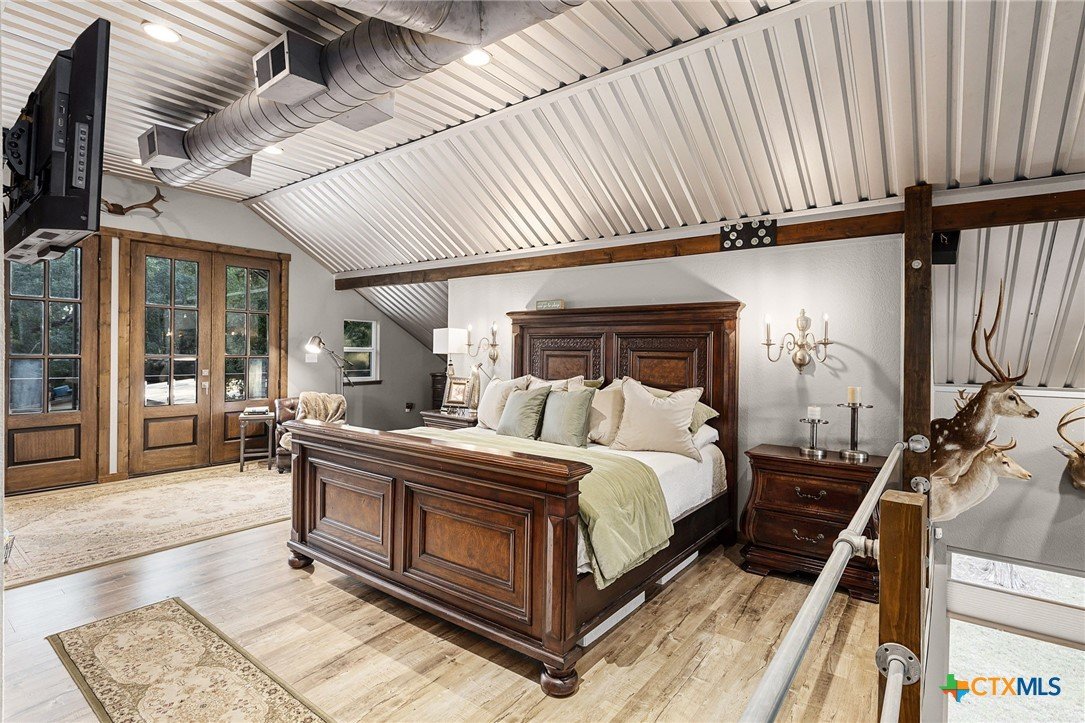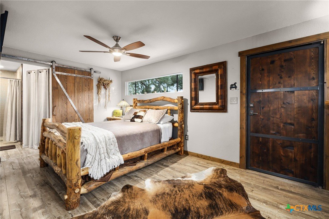 RARE FIND! Welcome to the Peace, Tranquility & Privacy of this Texas Hill Country Home Nestled on 4.68 Acrs. NO HOA-No Restrictions. Can be Used as Short Term Vacation Rental, as a Full Time Residence or Vacation Home. Custom Blt w/Many Unique High Quality Upgrades. Oversized Windows with Top Down/Bottom Up Shades Provide a Plethora of Natural Light. Interior Doors are 100 Yr Old Cypress. Custom Made Front/Back Doors are Solid Wood, Distressed & Banded w/Black Iron. Fabulous Kitchen Solid Wood Cabinets w/Deep Pull Out Drawers & Pull Out Spice Cabinet, Lrg Pantry w/Pull Out Drawers, SS Appl, Granite Counters, Breakfast Bar, Dishwasher & X-Lrg SS Farm Sink. Antique Refurbished Franklin Wood Stove (1800's). Soaring Galvanized Aluminum Vaulted Ceiling. Upgraded Lighting & Plumbing Fixtures T/O Home & Recessed Lighting. Baths have Soaking Tubs & Sep. Showers. Beautiful Refurbished Antique Cowboy Tin Tub w/Brushed Nickel Faucets in One & a Genesa Soaking Tub (for 2) in the other. Stunning Views from 3 Covered Patios Decked w/Sturdy TREX Material. Covered Deck Overlooks Pond, which has a New Pump & Liner. Babbling Creek from Private Well Fills the Pond. Convenient Outdoor Shower w/Hot & Cold Water. Sprinkler Sys Yard w/Manual Shut Off Valves, Water Softener (owned), Safe Room, Living Room & Patios Wired For Speakers, Wired for WiFi, Gated Entry, Concrete Driveway with/Outdoor LED Lighting, 5 Camera Ext. Security Sys w/Night Vision, 2 Wildlife Stands. 30 & 50 AMP Plug Ins for Camper/RV. Convenient Outdoor Shower w/HOT & COLD Water. Private Well, Spray Foam Insulation and Aerobic Septic Make for Low Utility Bills. Well is approx. 580' w/an 3000 Gallon Cistern. Cool 1260 SqFt Basement Provides Lots of Storage & Boat Storage. Garage is Currently Used as a Workshop. All Appliances Convey. Furnishings Avail & Nego. Owner needs Short-Term Leaseback. Prime Location! Minutes from Gruene, New Braunfels, Canyon Lake, Guadalupe River, Wimberley & San Marcos.