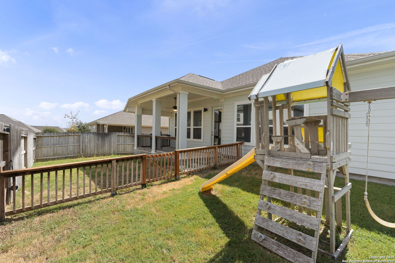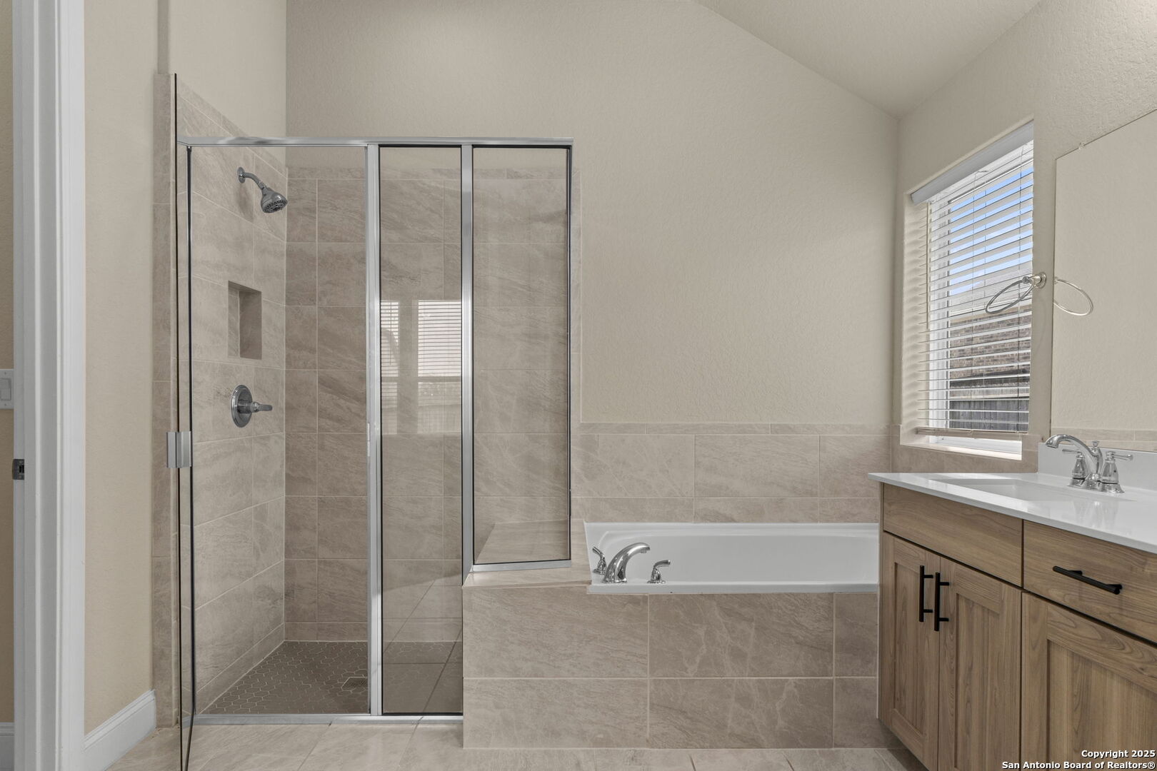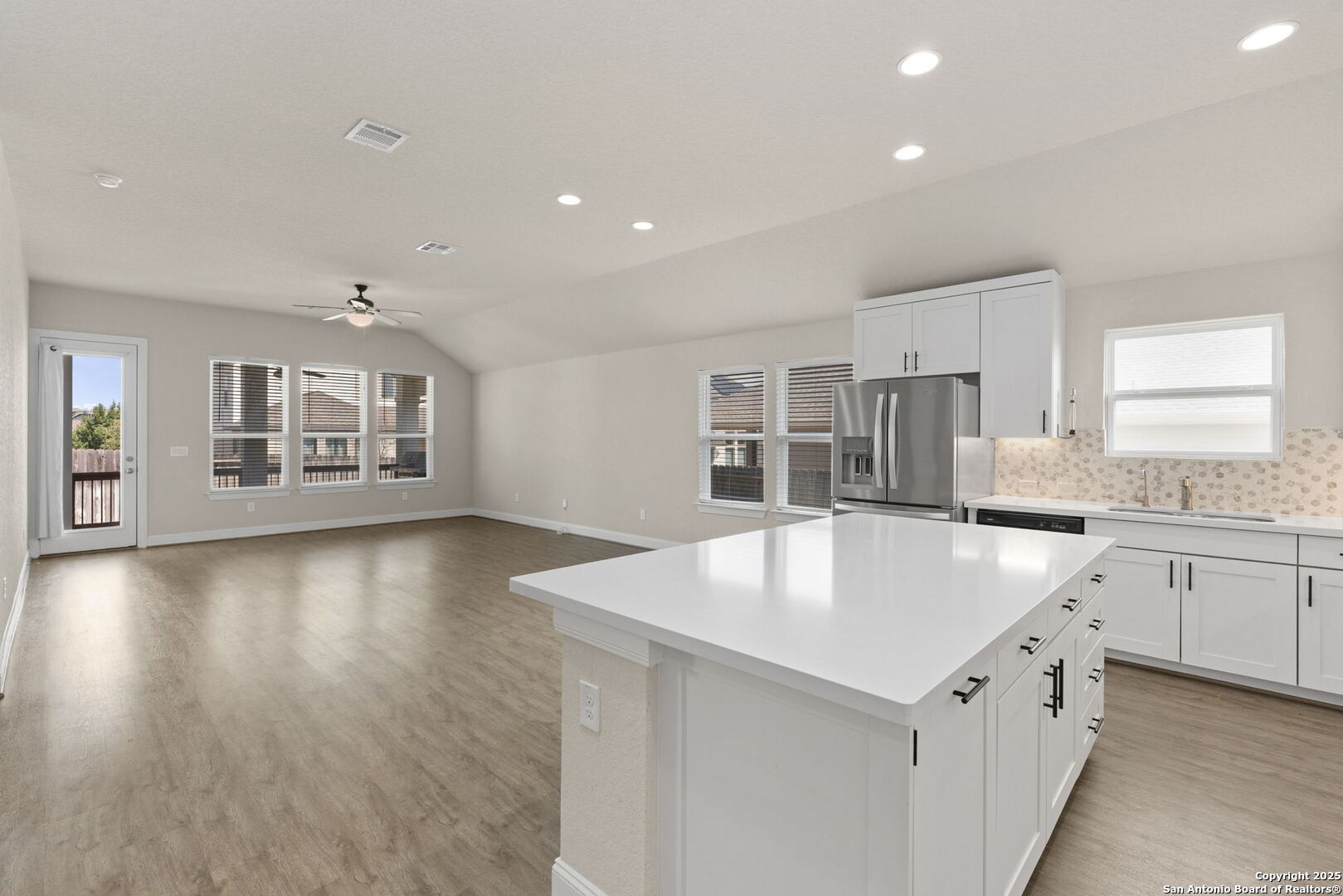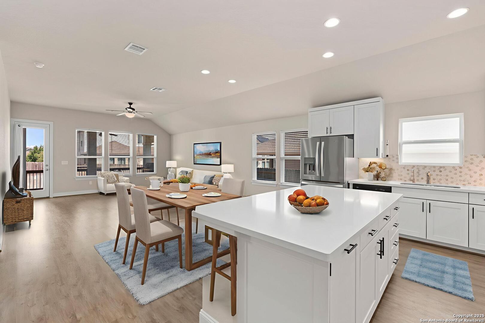 VA assumable loan to a qualified VA buyer. Beautifully designed 4-bedroom, 3-bath, one-story home featuring an inviting open-concept layout perfect for modern living. Step inside to soaring high ceilings that enhance the spacious feel of the living and dining areas, seamlessly connected to the kitchen for effortless entertaining. The thoughtfully designed kitchen offers ample counter space and storage while overlooking the main gathering space. The private owner's suite includes a large bath with dual vanities and a walk-in shower. Secondary bedrooms are generously sized, offering comfort and versatility for guests, work, or hobbies. Practical touches set this home apart, including an extra 5-foot storage space in the garage-ideal for tools, seasonal decor, or projects. Outdoor living is a breeze on the covered patio, perfect for relaxing evenings or weekend get-togethers. A perfect blend of style, functionality, and comfort, this home is move-in ready and waiting for its new owner.