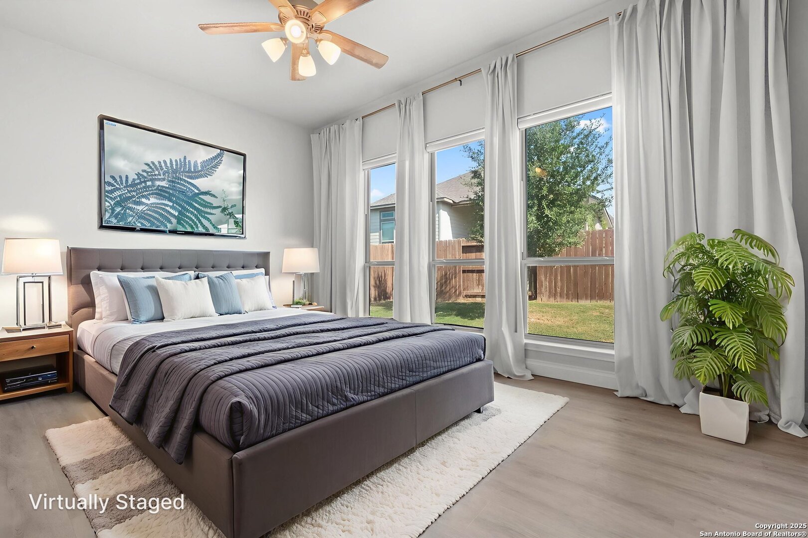 Move in ready 4-bedroom, 3-bath Perry home in the sought-after Homestead community. Built in 2020 with nearly 2,500 sq ft, this two-story floor plan features soaring ceilings, open living spaces filled with natural light, home office, a private owner's suite downstairs with an additional downstairs bedroom & bathroom. Upstairs, you'll find 2 additional bedrooms and flexible living areas. Sitting on an large lot, this home and back yard were made for enjoying and entertaining. Homestead offers a lifestyle like no other with a resort-style pool, fitness center, recreation space, pond and miles of walking trails. Conveniently located near Randolph AFB, San Antonio and New Braunfels, you'll have both community amenities and city conveniences at your doorstep.This home also has the option of an assumable VA loan at just 2.5 interest, providing an exceptional opportunity for qualified buyers. Move-in ready and perfectly located, 6548 Mason Valley is ready to welcome its next owner.