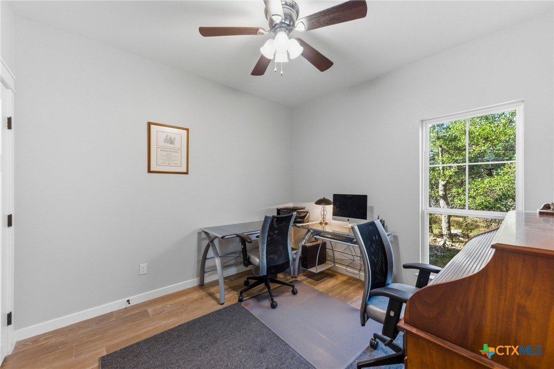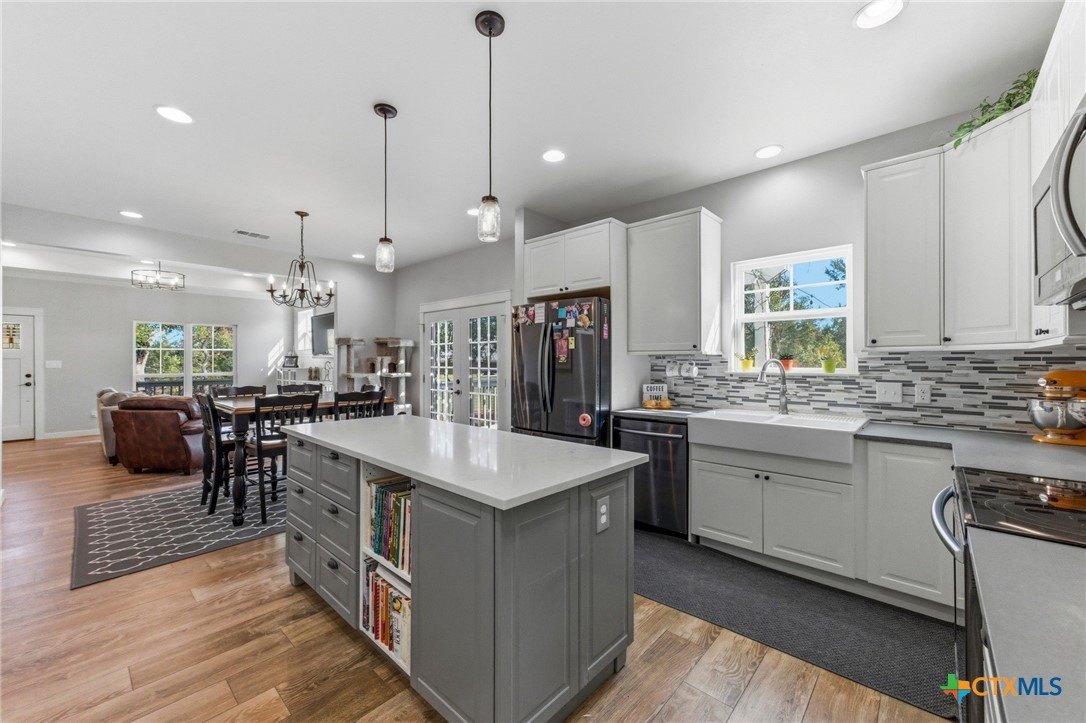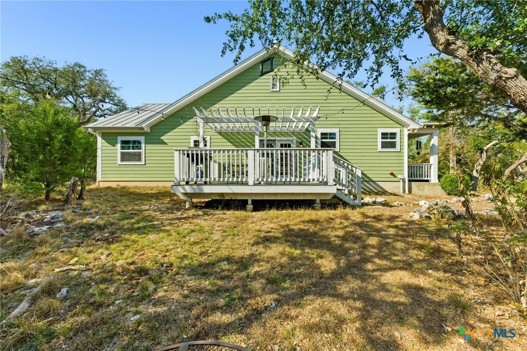Nestled on 5.07 acres in the Texas Hill Country, 655 Cascade Trail offers privacy, functionality, and a thoughtfully designed living experience. This gated 3-bedroom, 2-bath home features approximately 1,400 square feet of comfortable interior space, complemented by multiple outdoor living areas including covered porches, a fully screened-in back patio, and an expansive deck, perfect for taking in the surrounding natural setting. Upon entry, custom built-ins provide an elegant space to display books, photos, and cherished decor. With several distinct outdoor living areas totaling approximately 500 square feet, there’s always a perfect spot to relax, entertain, or simply enjoy the peaceful Hill Country atmosphere. The thoughtfully designed kitchen not only captures scenic views, but also features wall-to-wall cabinetry, abundant storage, and a beautifully crafted center island that anchors the space as the true heart of the home. The owner’s retreat continues the home’s charm with custom wall treatments and an elegant tray ceiling. The ensuite bath is appointed with a custom dual vanity and a stone walk-in shower. Two additional bedrooms are located on the opposite side of the home, including one with a Murphy bed, offering exceptional flexibility for guests, work, or everyday living. A hobbyist dream, this property features a 1500 square foot 4-car garage with a climate-controlled workshop, built-in cabinetry, electric car charging station and half bath. Additional improvements include a garden shed, greenhouse, and an attached fenced garden area, making this property well-suited for gardening and self-sufficient living. Utilities include a septic system and a rainwater collection system with a 20,000-gallon storage tank, which has historically maintained ample capacity. With expansive acreage, multiple outbuildings, and a peaceful Hill Country setting, this property offers a rare opportunity for buyers seeking space, versatility, and a connection to the land.
