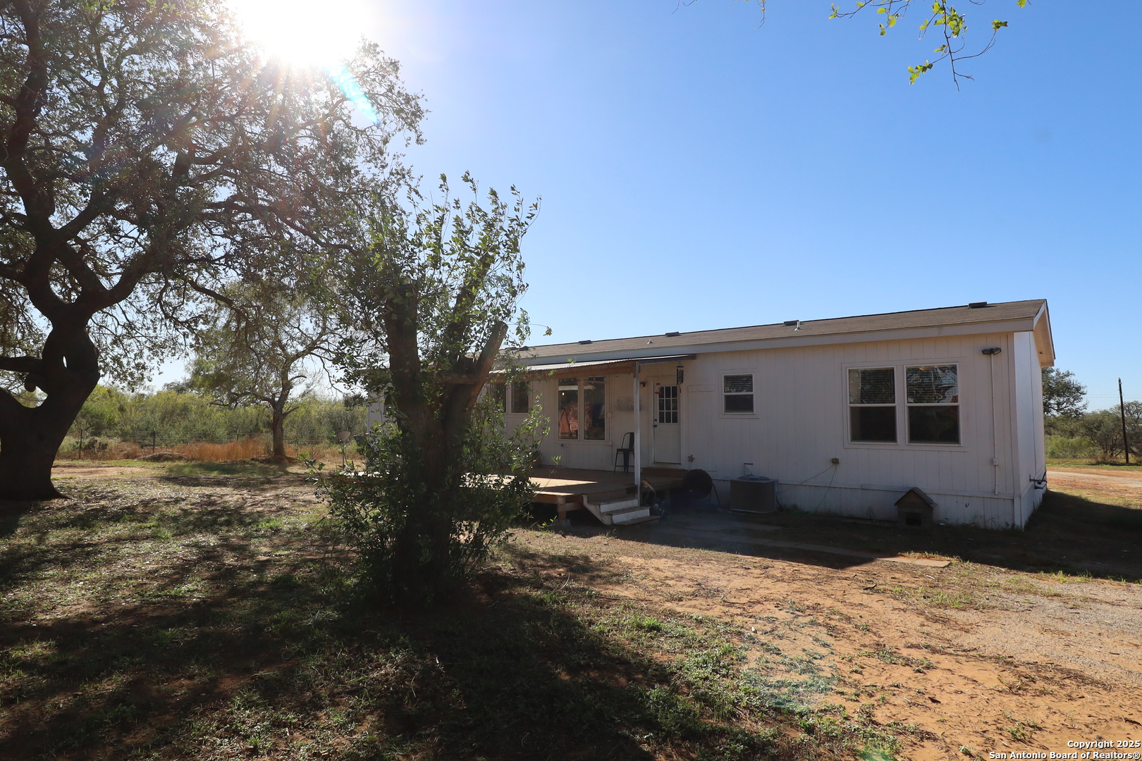 Discover a serene slice of Texas heaven in this expansive 10-acre property located in the tranquil countryside near Jourdanton. Just 15 minutes from town amenities like hospitals, grocery stores, and local dining, this residence offers both peaceful seclusion and convenient access to everyday necessities. Embrace the ultimate country lifestyle where wildlife roams freely and nature's beauty provides a picturesque backdrop. This spacious manufactured home boasts modern allure with its fully taped and textured interior walls, creating an inviting ambiance that effortlessly blends warmth with comfort. The expansive communal areas have new wooden floors providing durability for busy occupants. Imagine waking up to breathtaking sunrise views across your vast estate or enjoying evening sunsets from your porch as deer graze nearby. Whether you're an aspiring hobby farmer or simply yearning for freedom, the possibilities are endless here; animals are welcome to make this haven home as well. Create lasting memories with family gatherings under starry skies or explore future expansion opportunities on your massive land parcel. Perfect for those who desire tranquility without sacrificing the conveniences of urban living-this is more than just a house; it's your dream escape waiting eagerly in Jourdanton's lush landscapes!