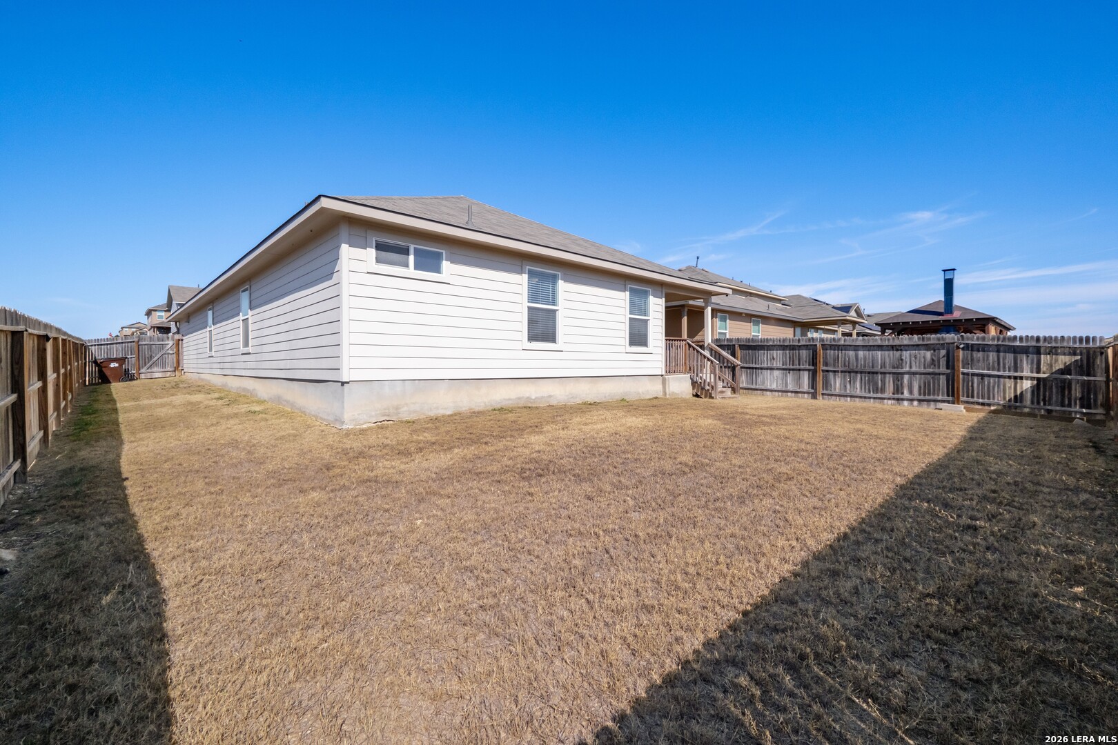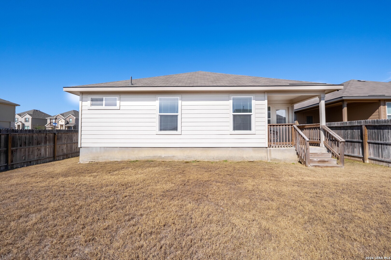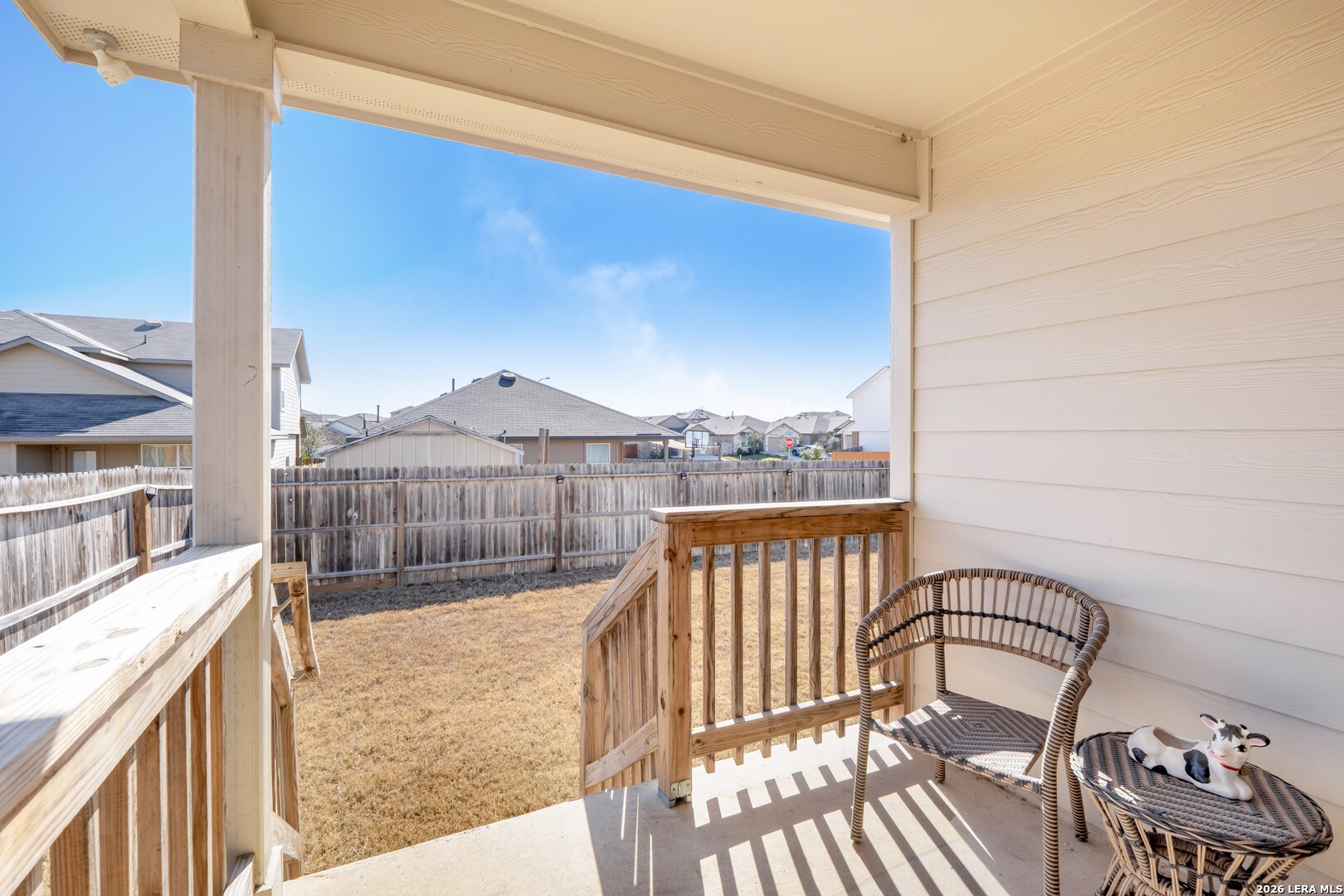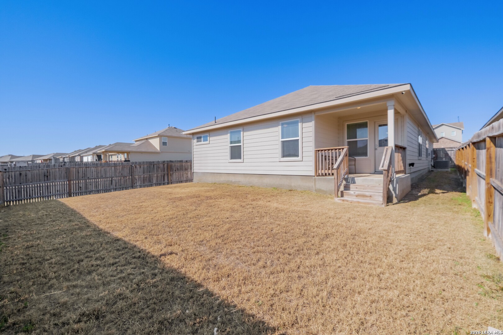 Situated on a desirable corner lot, this well-designed home welcomes you through a covered front porch into a defined foyer with direct access from the 2-car attached garage. The entry sets the stage for a functional layout that offers both comfort and flexibility. Just off the foyer is a front bedroom, ideal for guests, a home office, or a flex space. A full bathroom is conveniently located nearby, creating a practical front wing of the home. Moving toward the center of the home, the layout opens into an open-concept living area that seamlessly combines the living room, kitchen, and dining space. This expansive area is ideal for everyday living and entertaining. The kitchen features a central island with breakfast bar seating, granite countertops, ample cabinetry, and a pantry, all overlooking the main living space for easy flow and connection. Along the right side of the home, two additional secondary bedrooms and a dedicated laundry room provide functionality and privacy for family or guests. Tucked away at the back of the home, the spacious primary suite offers a private retreat. The primary bedroom is complemented by an ensuite bathroom with a dual vanity, garden tub, separate walk-in shower, and a walk-in closet. The dining area leads directly to a covered rear patio and a wooden-fenced backyard, extending the living space outdoors and creating an ideal setting for relaxing. Residents also enjoy access to community amenities that include a pool, clubhouse, and fitness gym, adding to the overall lifestyle appeal of this corner-lot home.