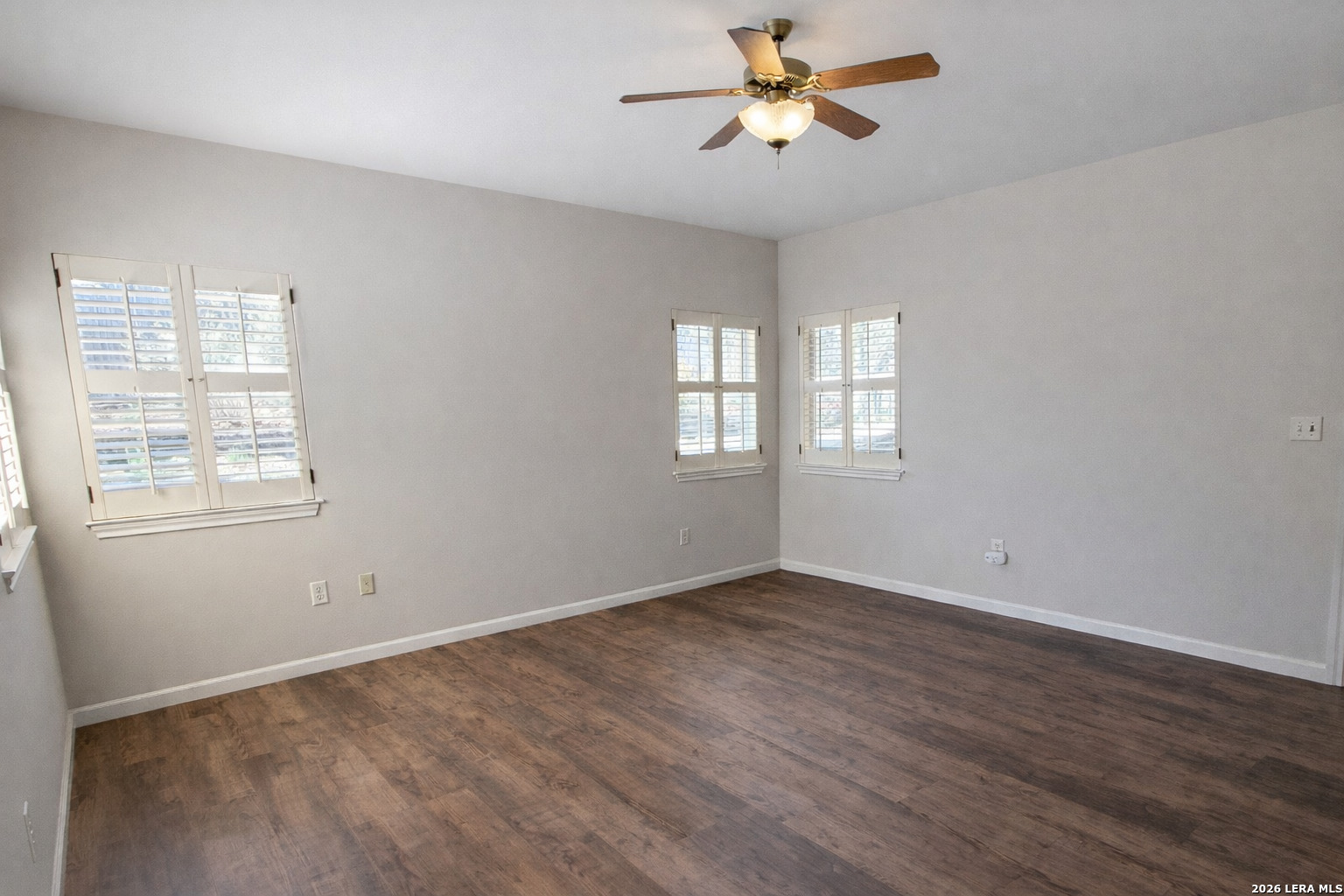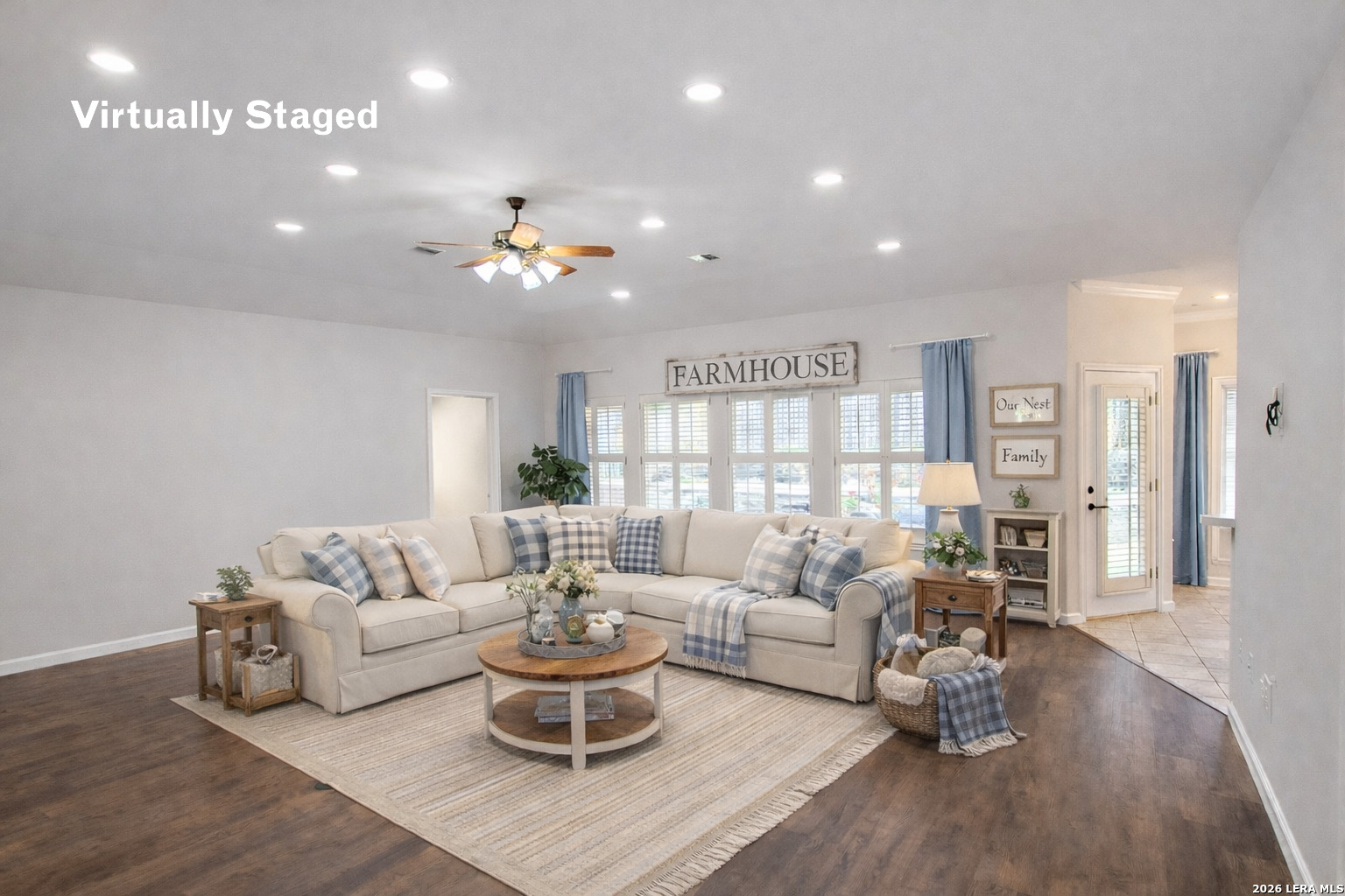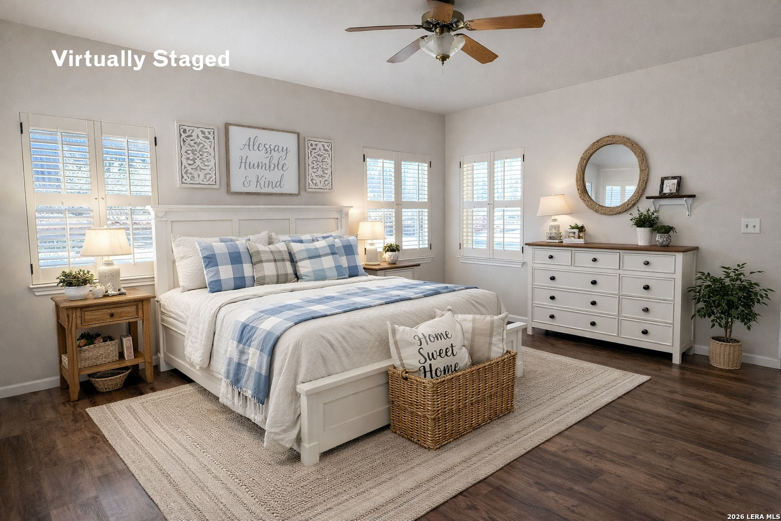 Welcome home to this charming 2-bedroom, 2 full bath residence in desirable Oak Hollow Estates, where comfort and easy living come together. This single-story home features high ceilings and an open, welcoming living area that feels warm and spacious- perfect for everyday living or hosting friends. Plantation shutters throughout add timeless style and soft natural light, while ceramic tile and vinyl flooring offer durability and low-maintenance living. The eat-in kitchen is thoughtfully designed with ample cabinetry and a convenient pantry, located in the utility room, keeping everything right where you need it. Both bedrooms are generously sized with walk-in closets, and abundant storage closets throughout the home ensure a place for everything. Step outside to a fenced backyard with a large, covered patio, ideal for grilling, relaxing, and entertaining family and friends. The xeriscape front yard adds curb appeal with minimal upkeep. Fresh interior paint, central heating and cooling, and a move-in-ready condition make this home truly effortless. Tucked into a well-loved Kerrville neighborhood, this Oak Hollow Estates gem is ready to welcome you home.