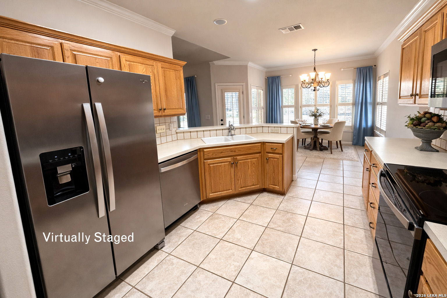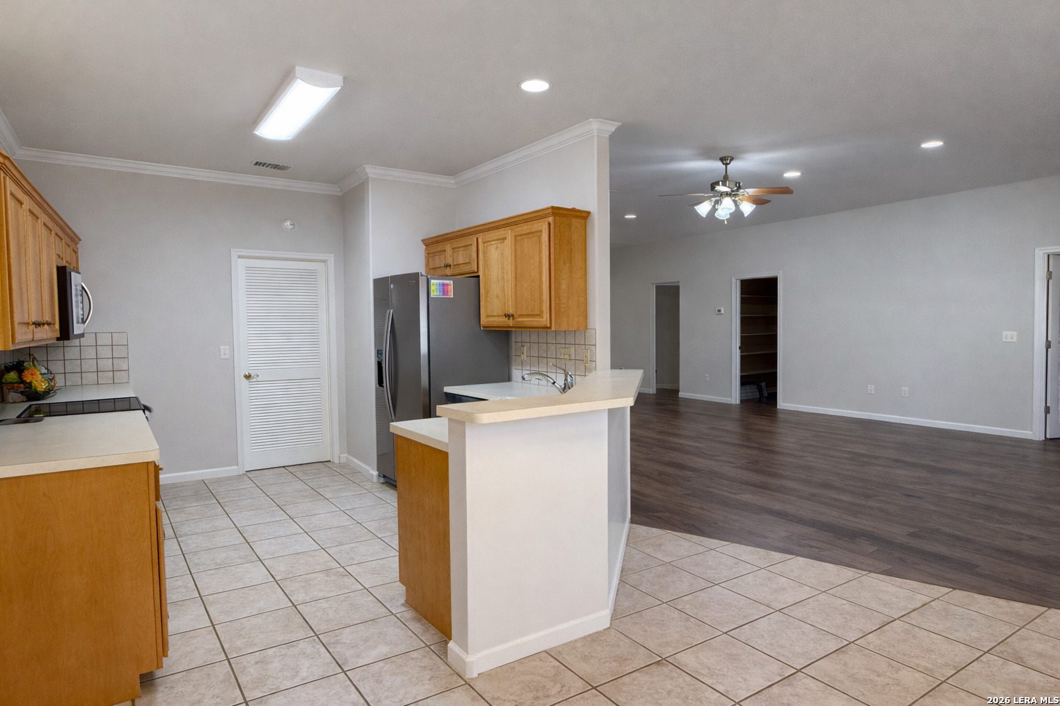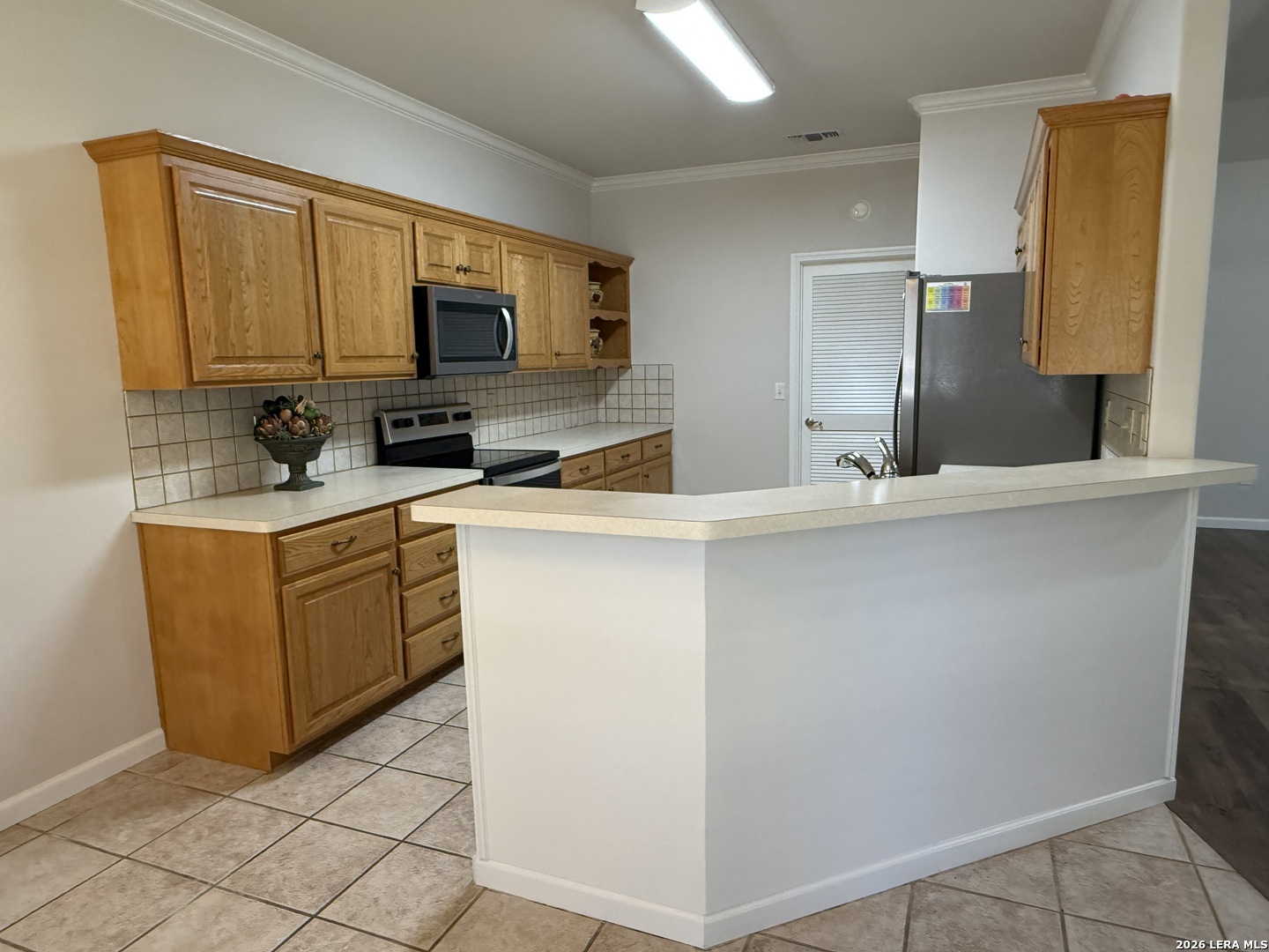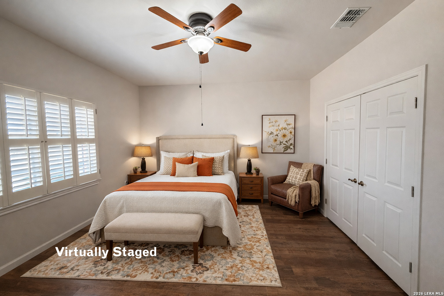 Welcome home to this charming 2-bedroom, 2 full bath residence in desirable Oak Hollow Estates, where comfort and easy living come together. This single-story home features high ceilings and an open, welcoming living area that feels warm and spacious- perfect for everyday living or hosting friends. Plantation shutters throughout add timeless style and soft natural light, while ceramic tile and vinyl flooring offer durability and low-maintenance living. The eat-in kitchen is thoughtfully designed with ample cabinetry and a convenient pantry, located in the utility room, keeping everything right where you need it. Both bedrooms are generously sized with walk-in closets, and abundant storage closets throughout the home ensure a place for everything. Step outside to a fenced backyard with a large, covered patio, ideal for grilling, relaxing, and entertaining family and friends. The xeriscape front yard adds curb appeal with minimal upkeep. Fresh interior paint, central heating and cooling, and a move-in-ready condition make this home truly effortless. Tucked into a well-loved Kerrville neighborhood, this Oak Hollow Estates gem is ready to welcome you home.