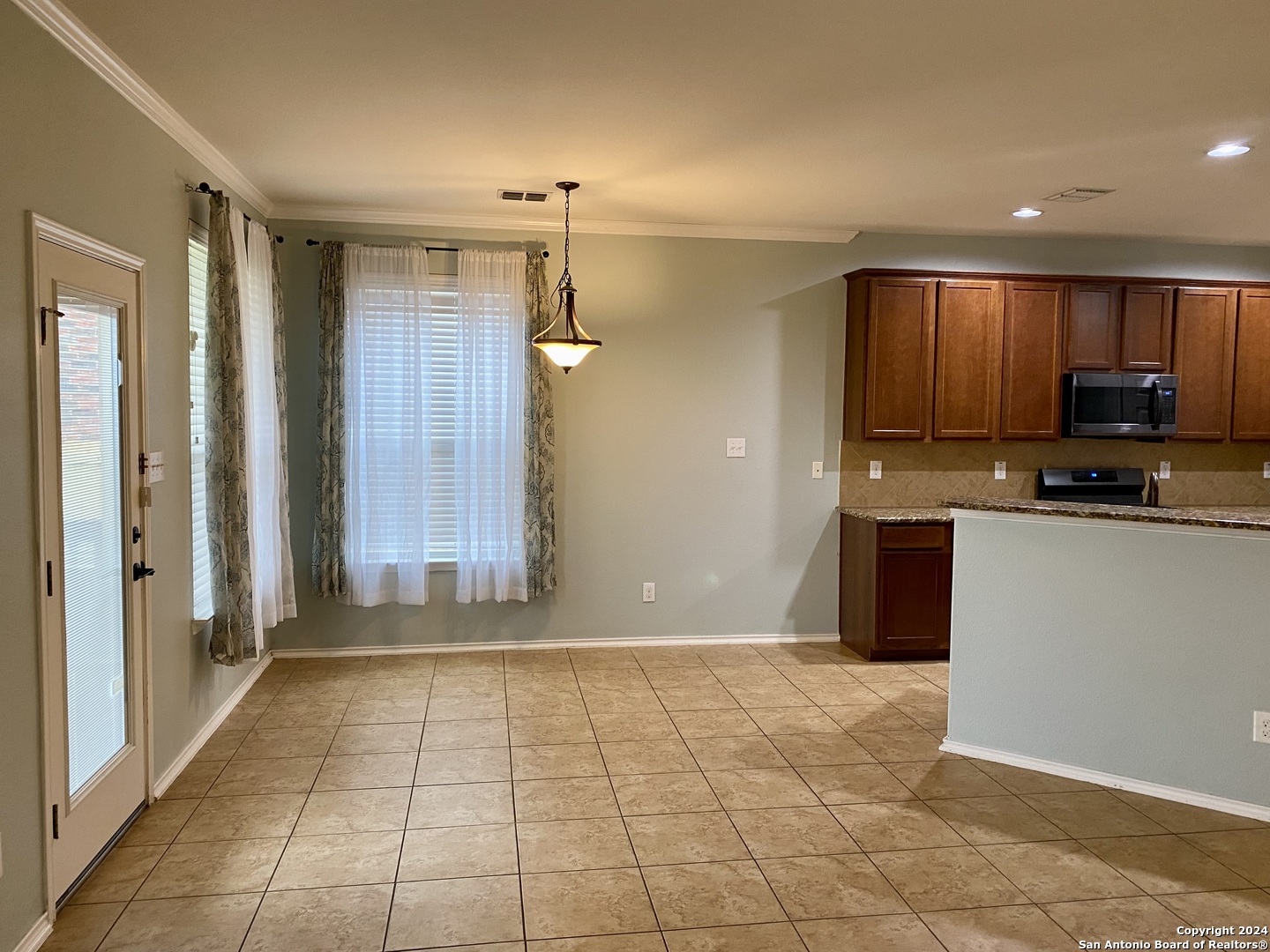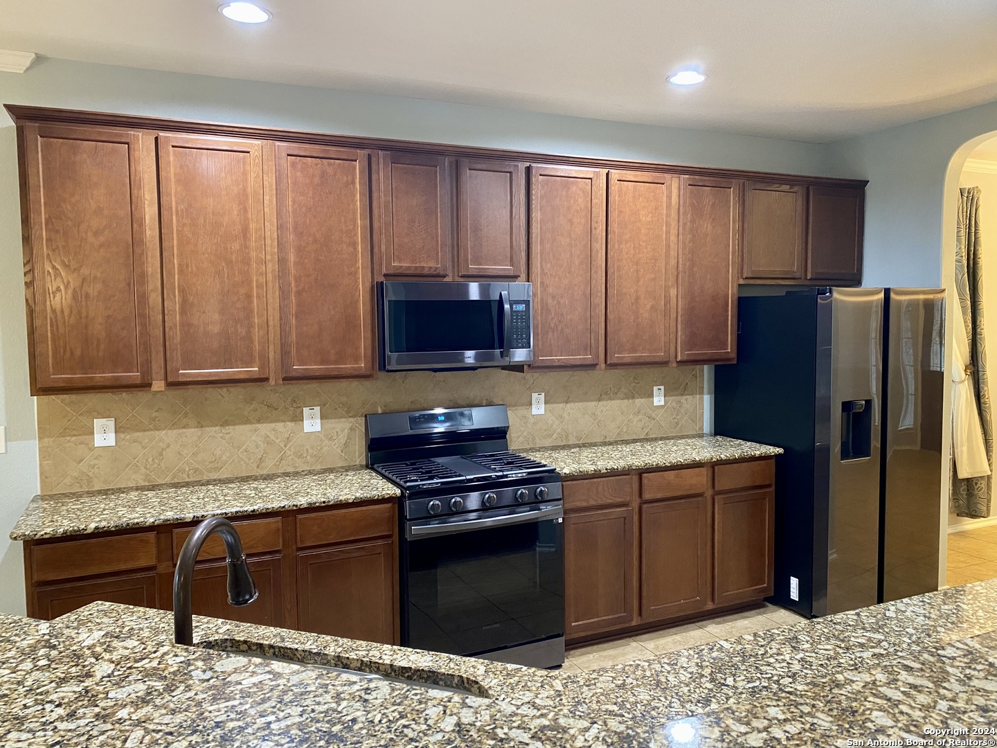 Nestled in desirable Alamo Ranch, this gorgeous home merges comfort with modern living. The open floor plan, featuring a spacious kitchen with granite countertops, gas cooking and breakfast bar creates a seamless space for gatherings. Upstairs, privacy features four bedrooms with a versatile game room/additional living area ~ fantastic "smart home" upgrades, water softener, and sprinkler system for easier lawn lawn maintenance ~ all controllable via phone app. The primary suite features tranquility with two large closets and a garden tub to relax after a long day. Outside, enjoy a covered patio and deck overlooking a greenbelt, offering a serene escape. Living in Alamo Ranch, it's hop, skip and jump away from great parks, schools, shopping, and variety of restaurants to choose from. Plus, proximity to major highways ensures easy access to everything San Antonio has to offer. Come check out this beauty today!