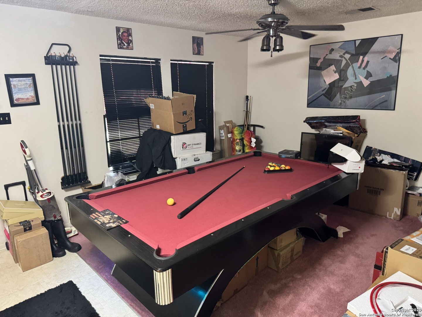 Lovely well maintained 3 bedroom, 2.5 bathroom home, located at the top of the cul-de-sac with a large backyard, swimming pool, jacuzzi tub, patio furniture, pool equipment and outdoor grill all convey; upgraded custom fixtures, upgrades black sinks and commodes, custom blinds, upgraded custom lighting throughout, custom window tint on all windows, custom garage, custom sun room that opens up to the pool area, ceiling fans in each room, marble flooring in bathrooms, sprinkler system covers front and back yard, roof replaced in 2016, large upstairs game room. Most furniture conveys to include pool table, bedrooms, living room and game room furniture, etc. This is must see!!!