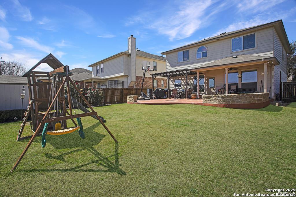 Beautiful 3-Bedroom, 2.5-Bathroom Home with FANTASTIC Outdoor Patio Space in Alamo Ranch. First-Class Neighborhood Amenities Including Sparkling Pool, Sports Courts, Walking Trails, & Clubhouse. Great Location in Growing Area with Easy Access to Hwy-1604 & Hwy-151, Minutes to SeaWorld, Lackland AFB, Major Employers, Restaurants, Shopping, & More! Handsome Curb Appeal with Brick & Stone Accented Exterior, Low-Maintenance Landscaping, & Covered Front Entry. Enter to Spacious Formal Dining Leading to Large Family/Living Area with Great Natural Light & Tile Flooring. Open Concept Floorplan with Breakfast Area Tying to Gourmet Kitchen with Granite Countertops, Ample Cabinet Space, Stainless Steel Appliances, & Large Pantry with Washer/Dryer Included. Half-Bathroom on First Floor Great for Guests & Entertaining. Upstairs Features Great Landing Area, Perfect for Home Office Space or Media/Play. Large Primary Suite with Dual Vanities, Separate Garden Tub & Shower, & Walk-In Closet. Nicely-Sized Secondary Bedrooms & Full Bathroom with Tub/Shower. Fantastic Backyard Features Covered Porch & Pergola Overlooking Private Yard Space with Separate Storage Shed. 2-Car Attached Garage with Opener & Water Softener. Pets Case-by-Case, Subject to Landlord Approval. Highly-Rated Northside ISD Schools.