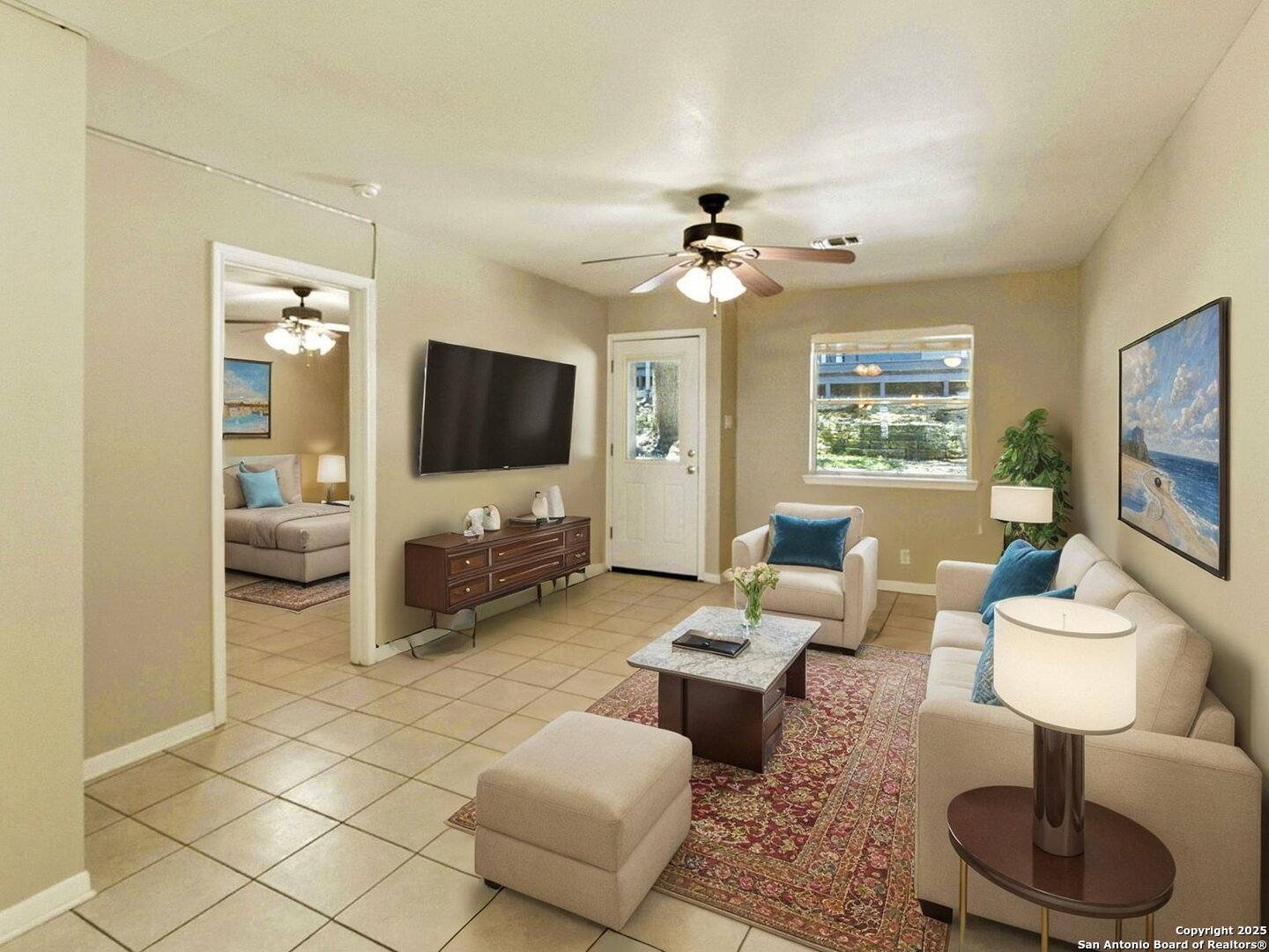 Updated 2 Bed, 2 Bath | Move-In Ready! Freshly painted and professionally cleaned. No carpet-ceramic tile throughout! Features include washer, dryer, and refrigerator, plus a covered patio with storage. Spacious living/dining combo with eat-in kitchen. Small, quiet 14-unit complex with 2 dedicated parking spaces. Easy access to all downtown New Braunfels has to offer. Schedule your tour today!