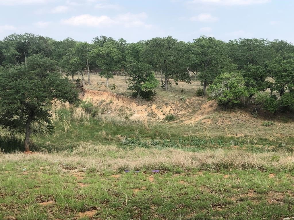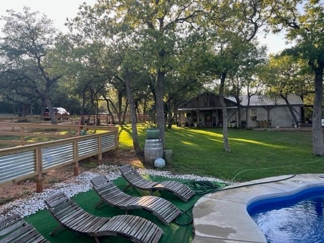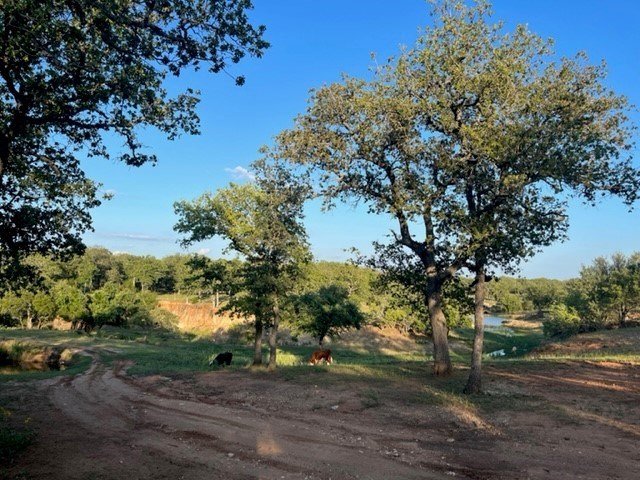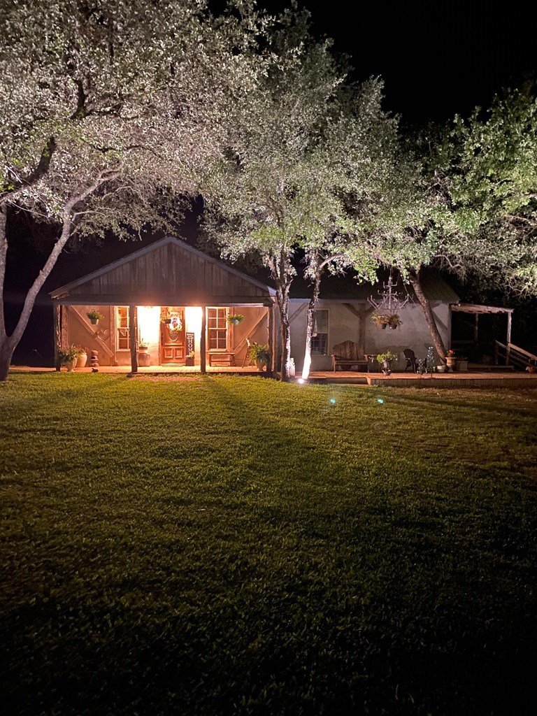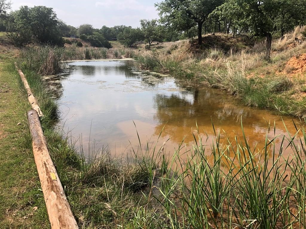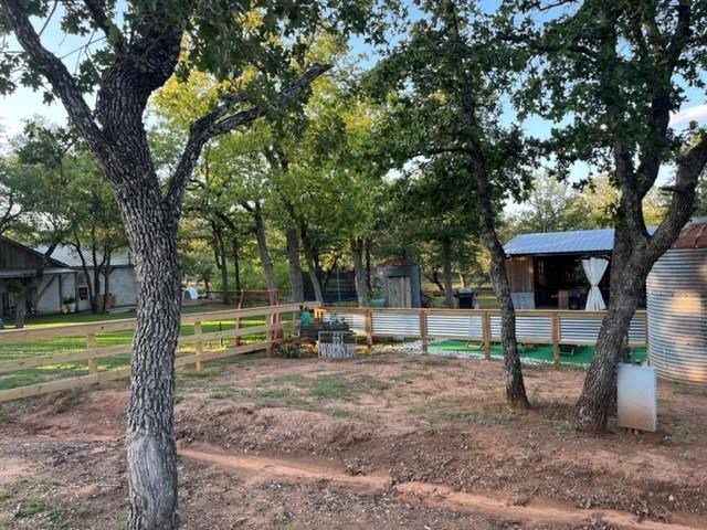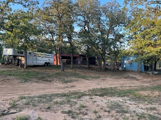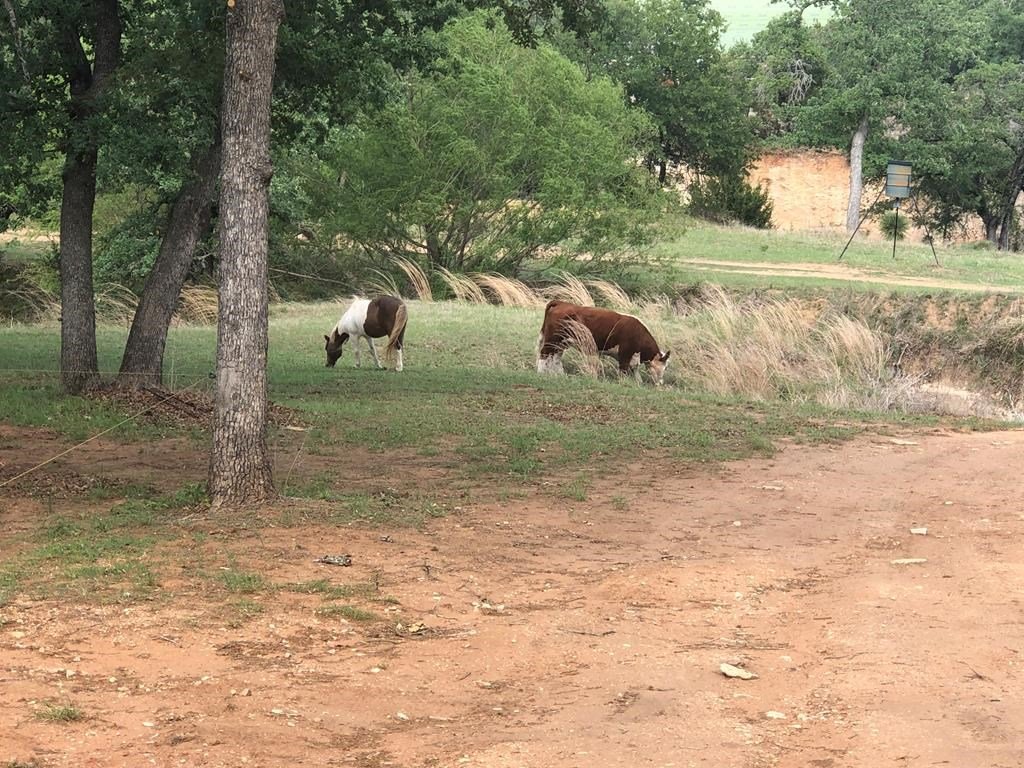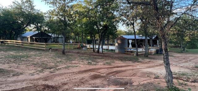 9.80 acres with post oak trees and sandy soil, creek/small pond, 2 BR, 2 Bath home with heated pool and hot tub, party barn with rock fireplace. Cabin 1 BR 1 Bath with sleeping loft, nice view of creek, cattle barns and pen, AG exempt, no restrictions, room for more cabins. This property is perfect for short-term rentals. Beautiful setting with creek and pool.