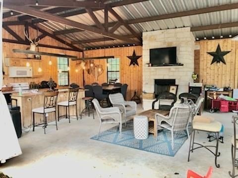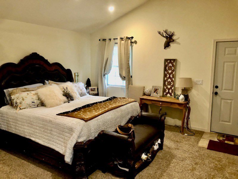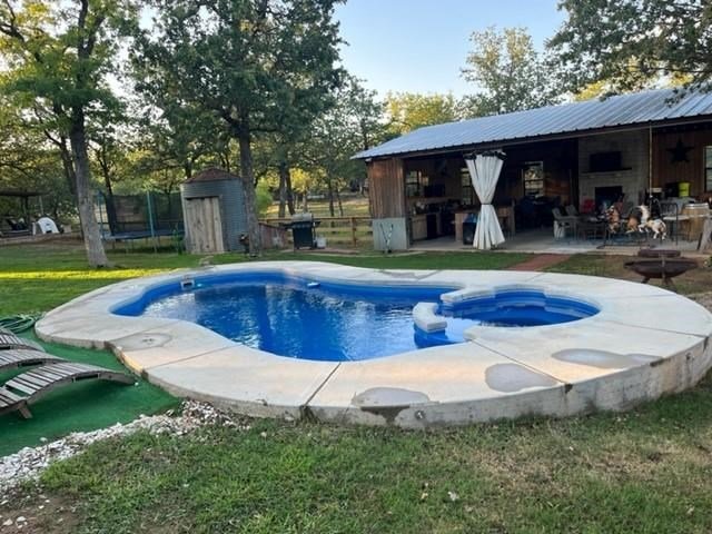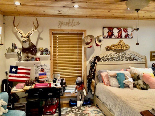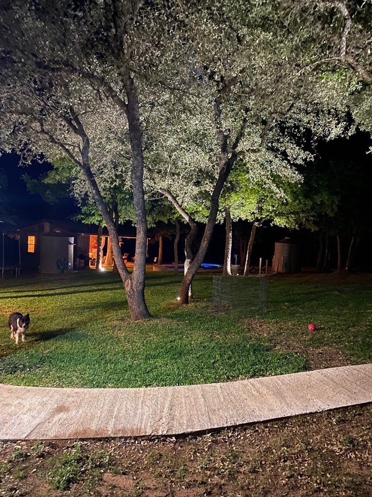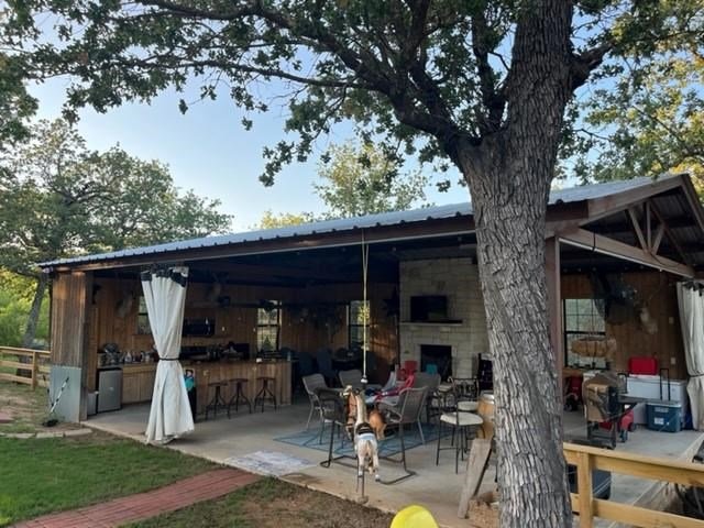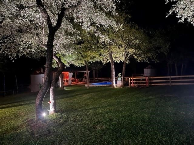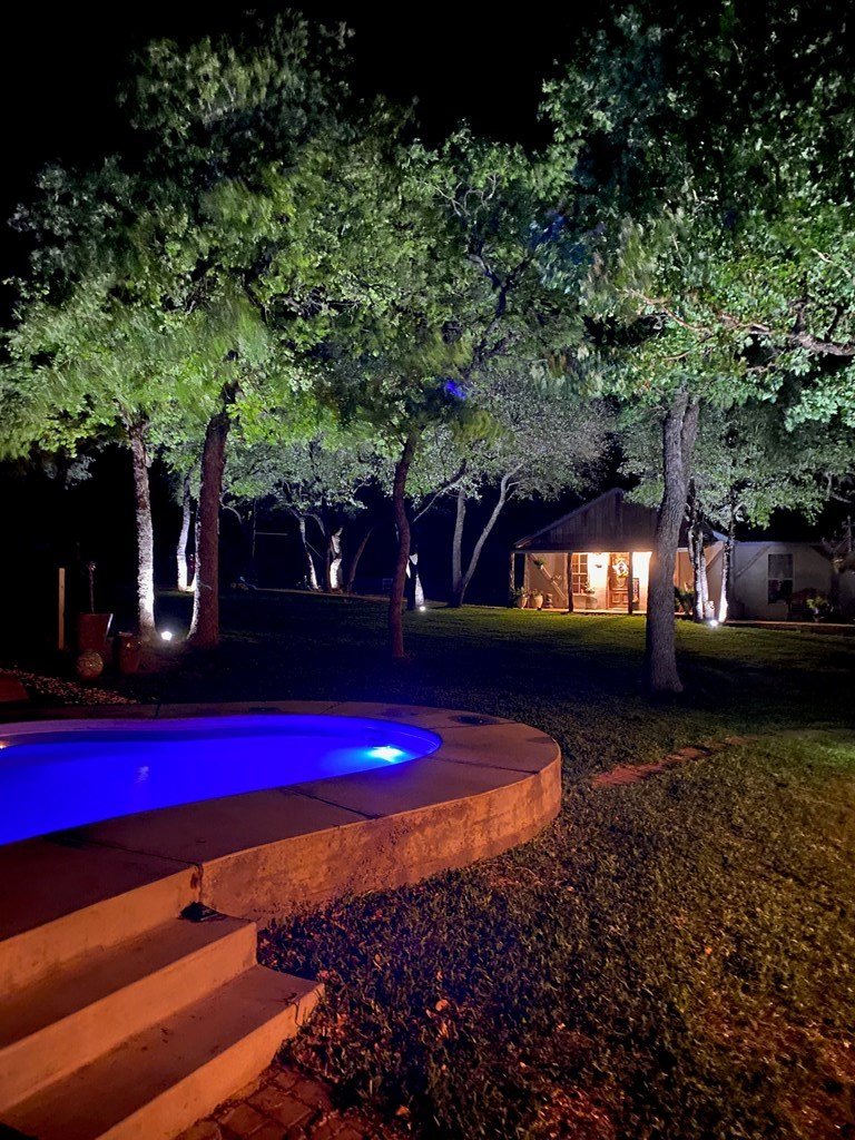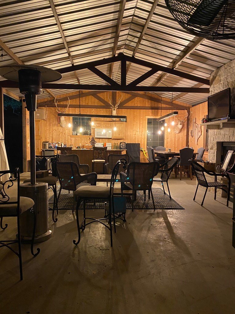 9.80 acres with post oak trees and sandy soil, creek/small pond, 2 BR, 2 Bath home with heated pool and hot tub, party barn with rock fireplace. Cabin 1 BR 1 Bath with sleeping loft, nice view of creek, cattle barns and pen, AG exempt, no restrictions, room for more cabins. This property is perfect for short-term rentals. Beautiful setting with creek and pool.