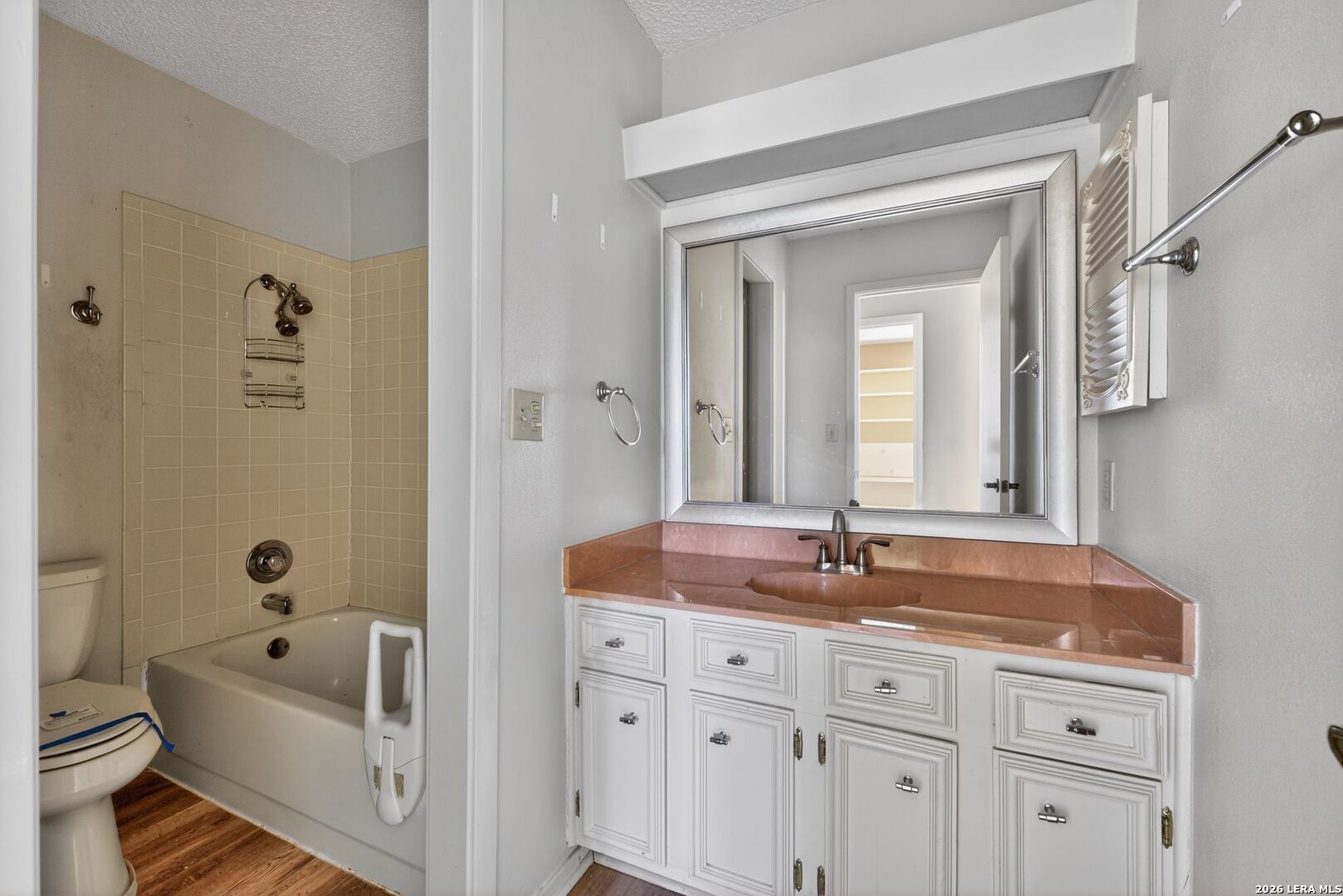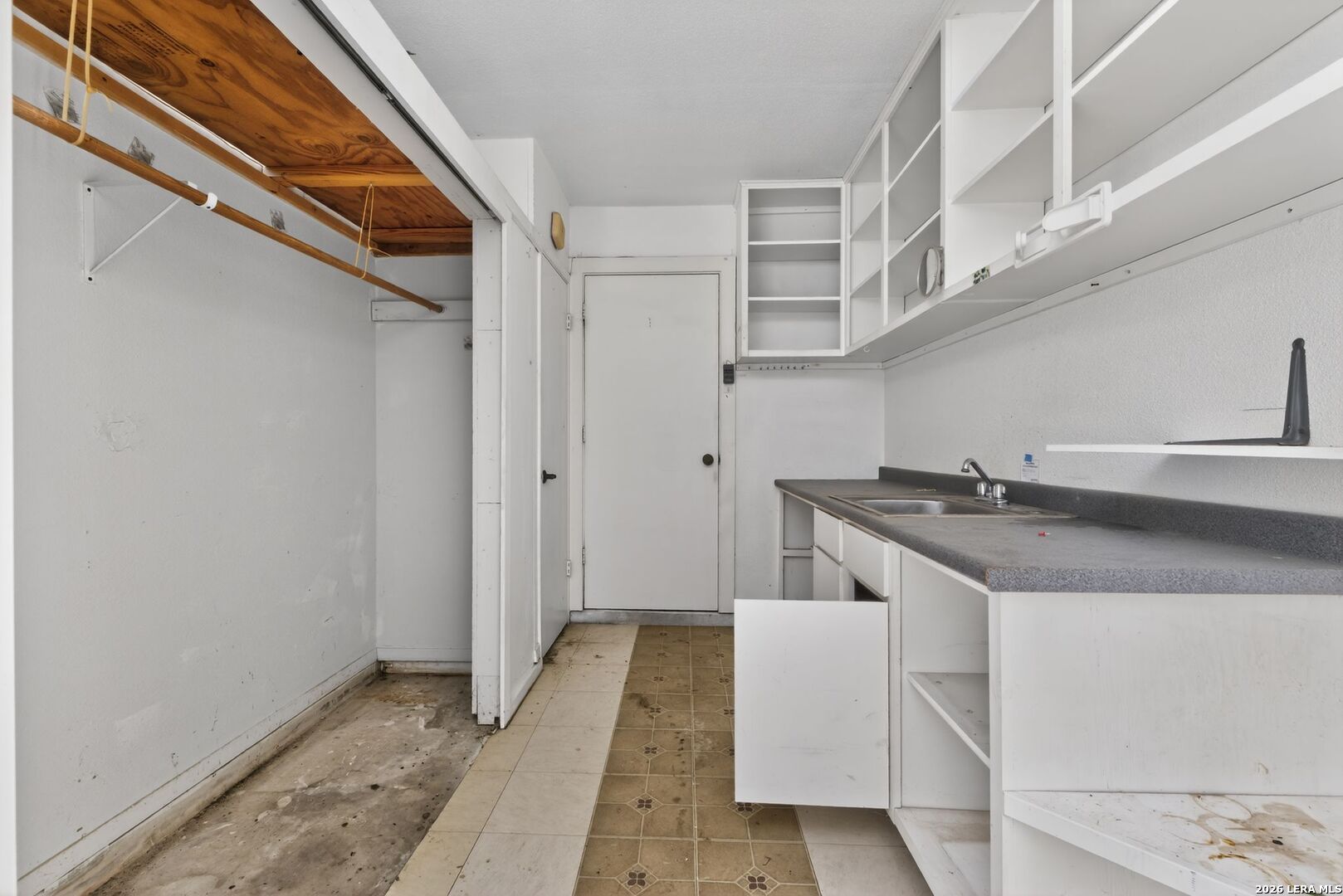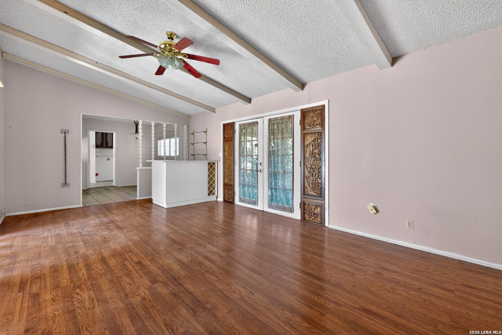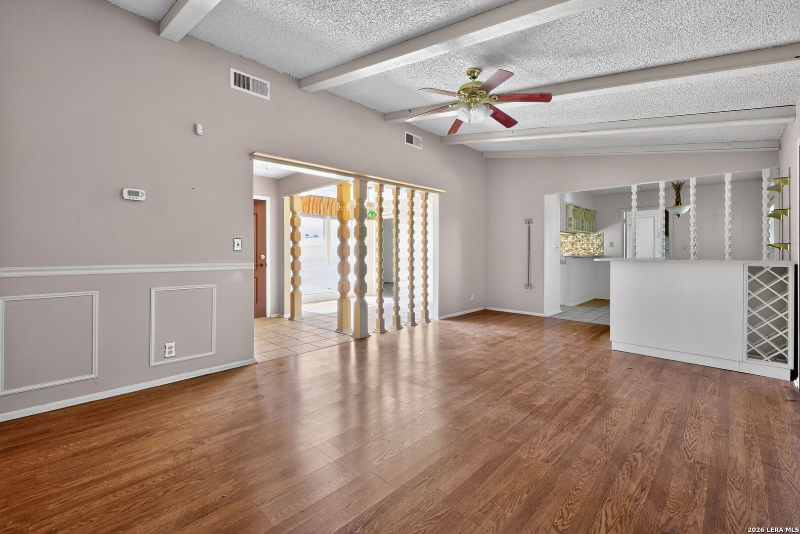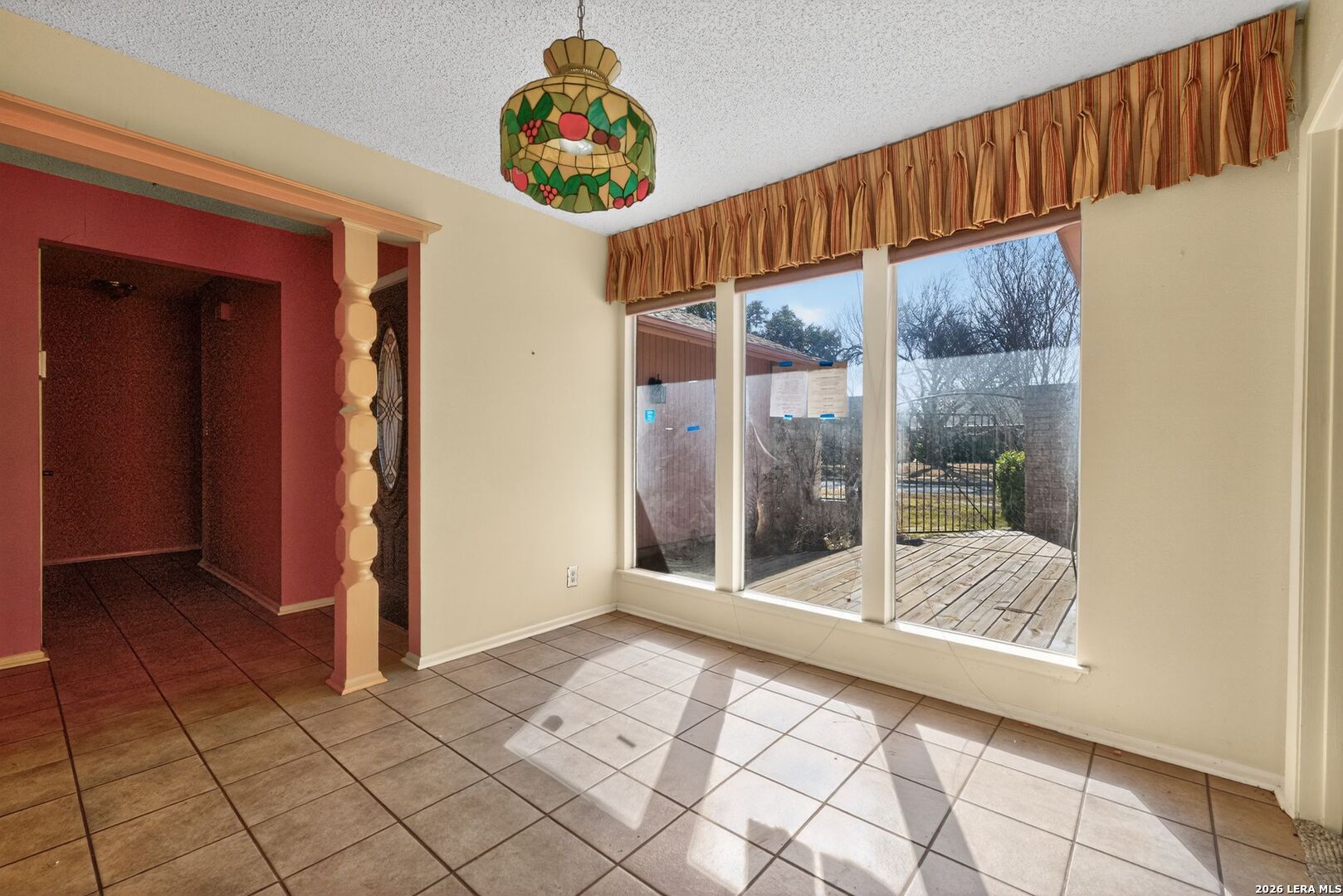 Charming ranch-style home on a spacious corner lot in the established Woodlake neighborhood! This property offers curb appeal and functionality with a two-car carport and a gated front porch with deck! Inside, you'll find vaulted ceilings in the living room, warm wood flooring, and an entertaining bar area. The home features both a formal dining room and an eat-in breakfast area, offering flexibility for everyday living and hosting. The kitchen stands out with granite countertops, designer backsplash, and stainless steel appliances. Built-in storage and shelving in the guest bedrooms add character and practical organization. A formal utility room on the main level for convenience. The partially converted garage includes a bonus office/flex space along with a wet bar workspace - ideal for a home office, hobby room, or creative studio. Step outside to enjoy the private fenced backyard complete with a covered back porch and storage shed. This HUD-owned property is being sold As-Is and may require repairs, including possible foundation stabilization. Excellent opportunity for buyers seeking value-add potential or renovation financing options. Conveniently located near Randolph AFB, major highways, shopping, and dining. Schedule your showing today and bring your vision!