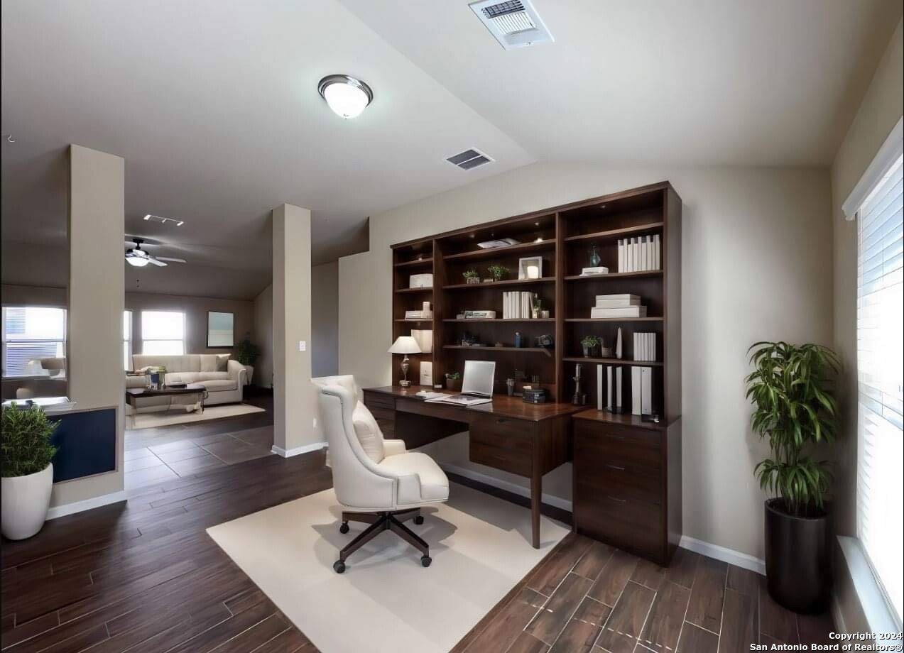 Don't miss out on this amazing one-story, 3 bedroom, 2 full bath home nestled in the gated-community Knolls of Woodlake! Upon entering the property you'll notice the open concept floor plan that leads into the large family area, kitchen, and breakfast nook. The kitchen features a large island and stainless steel appliances. The large primary bedroom features vaulted ceilings and large windows allowing for plenty of natural light. The primary bathroom features a sizable garden tub, a spacious walk-in shower, and double vanities. Two additional bedrooms and a flex area (gameroom, office, etc) allow plenty of options to make the space your own. The exterior features a covered patio, generously sized yard, and a cedar privacy fence. This home is located directly across the street from the neighborhood park making it super convenient for those that love the outdoors. A full water softener system, hardwired security cameras, and solar panels are included. Schedule a tour today!