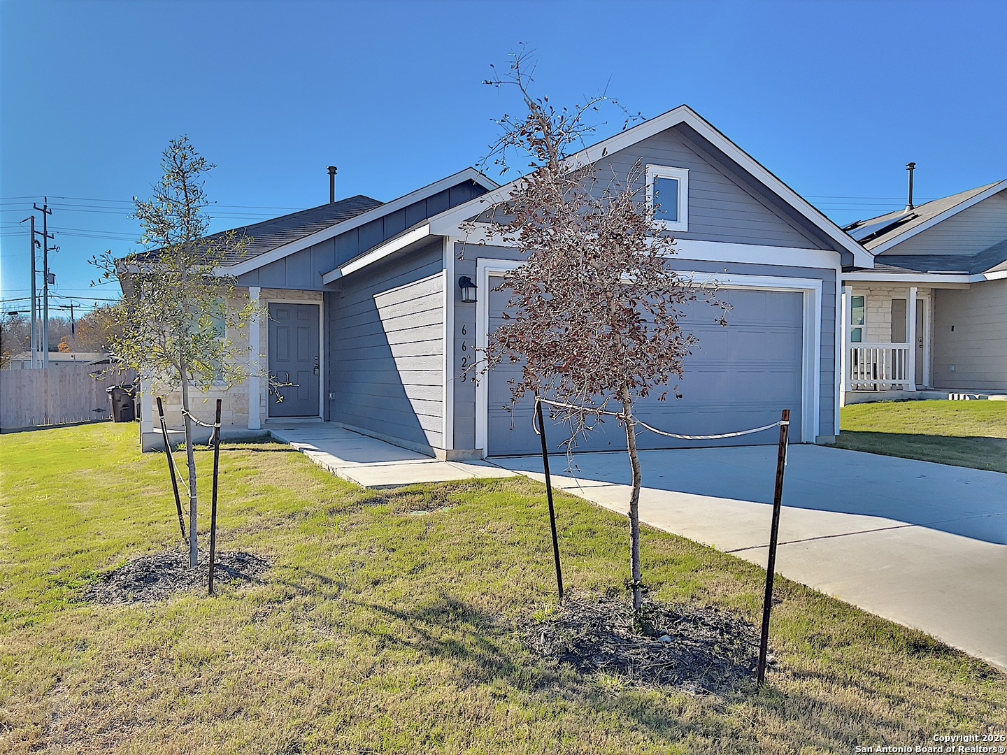 Welcome to this beautiful one-story home with stunning curb appeal located in NW of San Antonio.Quick access to State Highway 1604 allows easy commutes to work and leisure. Step into this 3 bedrooms, 2 full baths home, you'll be greeted by a spacious entryway that leads into an open floor plan that boasts natural light and plenty of room for entertaining. The modern kitchen features stainless steel appliances, a breakfast bar, and ample storage space. The adjacent dining area provides a perfect spot for family meals and gatherings. The living room is cozy and inviting, with large windows that allow for an abundance of natural light. Three generously sized bedrooms, including a luxurious master suite with a walk-in closet and an ensuite bathroom with a soaking tub and large vanity. The additional two bedrooms share a full bathroom, perfect for family or guests. Outside, you'll find a private backyard, perfect for outdoor entertaining and relaxing. This home also features a two-car garage and ample storage space throughout. This home is just minutes away from shopping, dining, and entertainment. Don't miss out on this fantastic opportunity to make this beautiful house your new home! Available to move-in in March 2026.