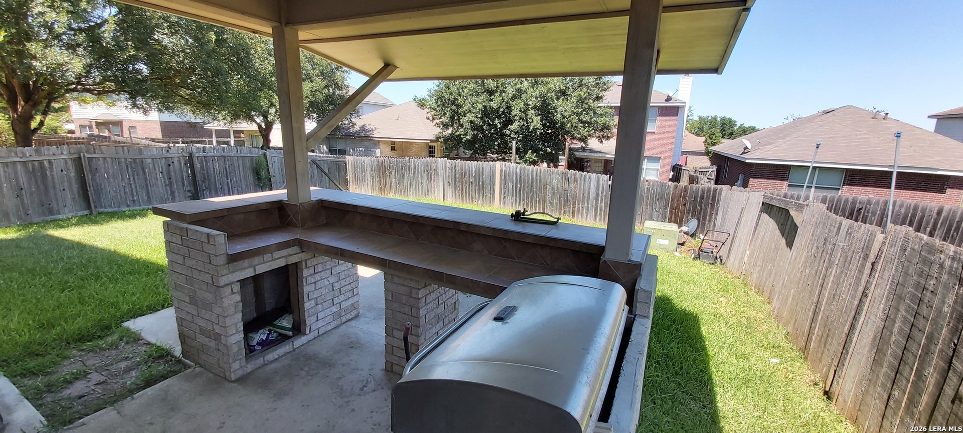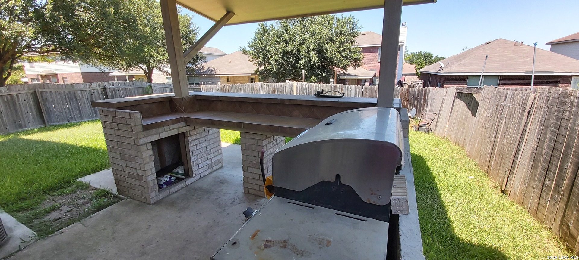 LOI's/SubTo=not accepted. Retail sale only. Welcome home to this stunning 3-bedroom, 2.5-bathroom gem nestled in a friendly community in Southwest San Antonio! From the moment you walk through the front door, soaring ceilings and an open, airy layout invite you in and make an unforgettable first impression. The thoughtfully designed floor plan is perfect for both everyday living and entertaining, with a kitchen that flows seamlessly into the formal dining room and breakfast nook - ideal for family gatherings and dinner parties alike. Step outside to your very own backyard oasis where your inner grillmaster will shine! A built-in gas grill and bar top are shaded by a covered patio, all overlooking a generously oversized backyard - the perfect spot for weekend cookouts, kids' playtime, or simply unwinding after a long day. After all that fun, retreat to the luxurious primary suite and soak away your stress in the elegant garden tub. Beautiful tile, carpet, and laminate flooring flow throughout the home, while the attached two-car garage offers added convenience and storage. Residents enjoy exclusive access to a gated park and playground right in the neighborhood. Built in 2005 on a solid slab foundation with brick exterior, this home offers timeless curb appeal and lasting quality. Perfectly located just minutes from Lackland Air Force Base, with quick access to Loop 410, Palo Alto College, Texas A&M San Antonio, shopping, dining, and healthcare. Come see why this community is one of San Antonio's best-kept secrets - this one won't last long!