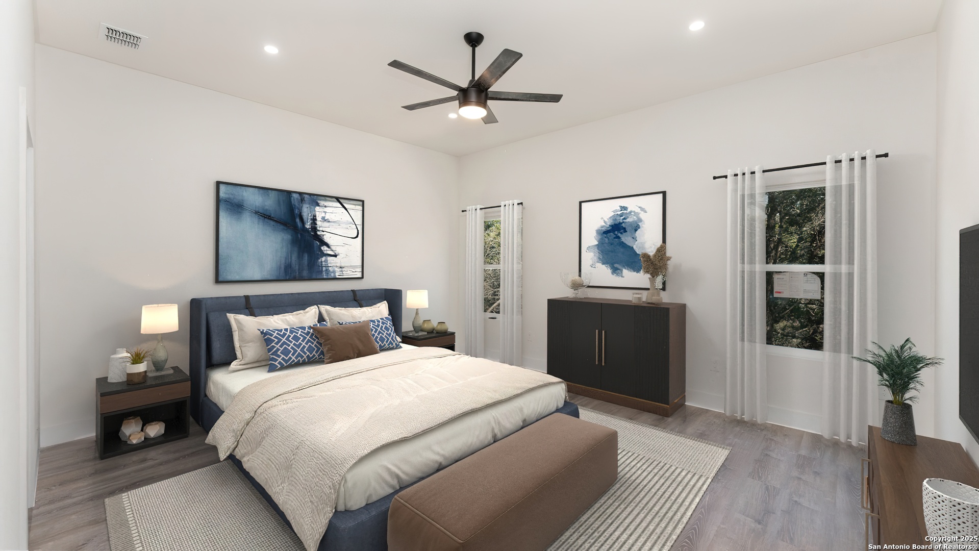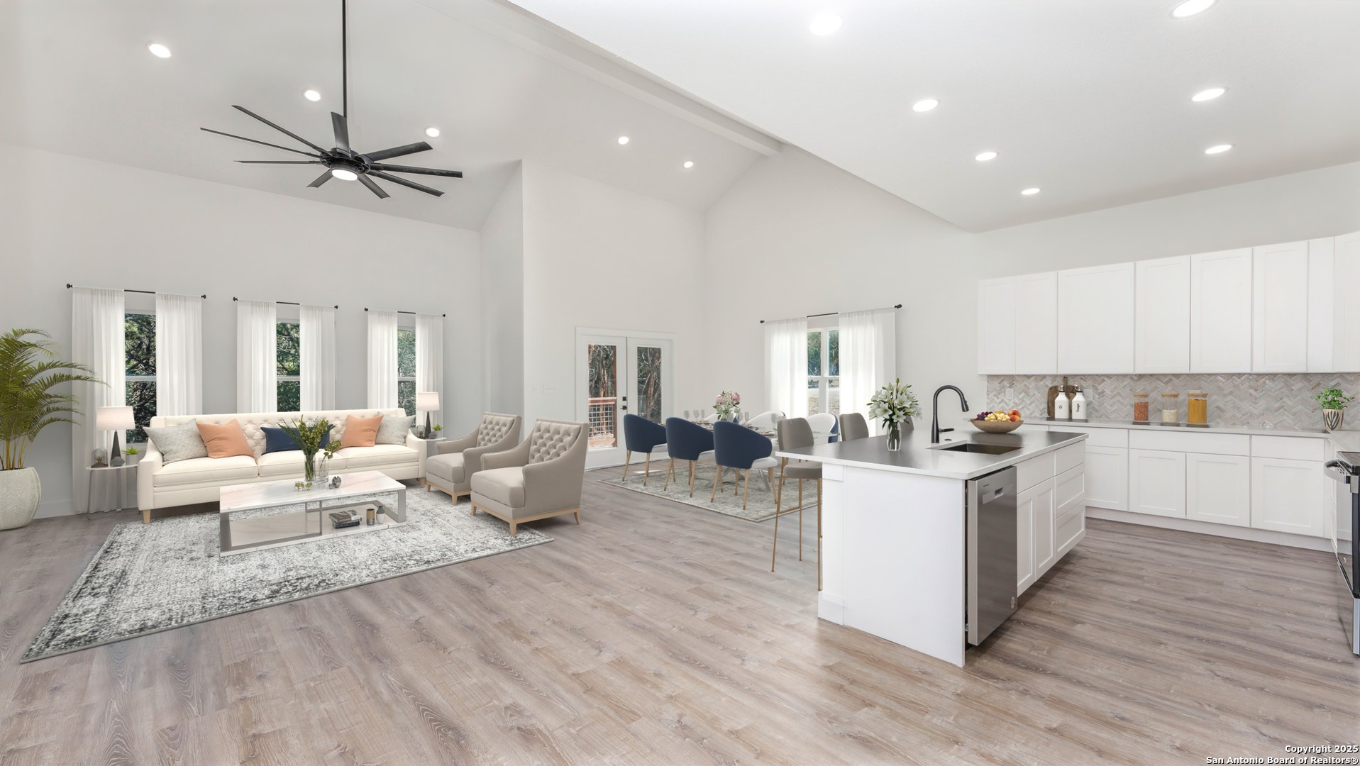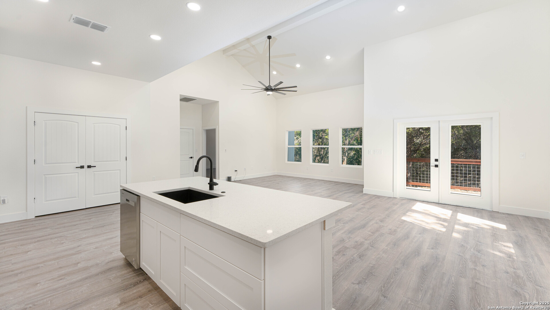 Step into this stunning custom new construction home, thoughtfully designed to offer both comfort and versatility. Featuring a flexible floor plan, this property can be tailored to your needs as a 4-bedroom home or a 3-bedroom home with a spacious flex room-perfect for a den or a large office. The home boasts luxurious plank vinyl flooring throughout (no carpet), elegant white cabinets, and soaring vaulted ceilings with fans in every room for year-round comfort. The longer driveway adds extra parking convenience, while the wood panel ceilings on the front and back patios provide rustic charm. A spacious side yard enhances the outdoor appeal, making this home an exceptional blend of modern living and timeless design. Don't miss your opportunity to own this Canyon Lake gem!