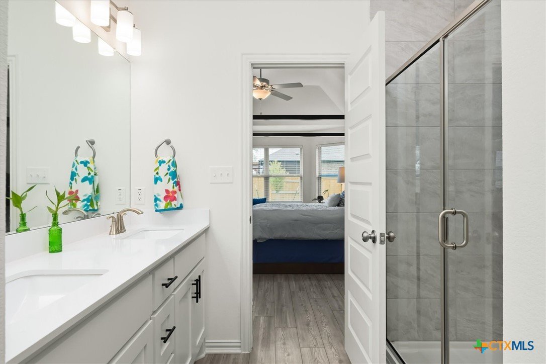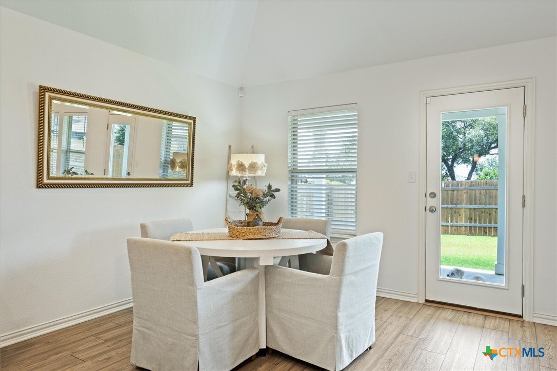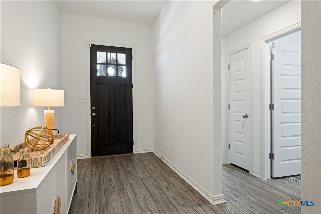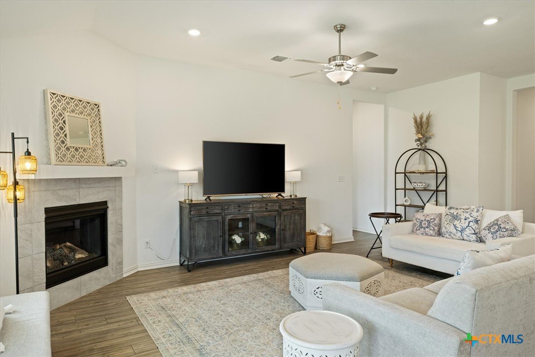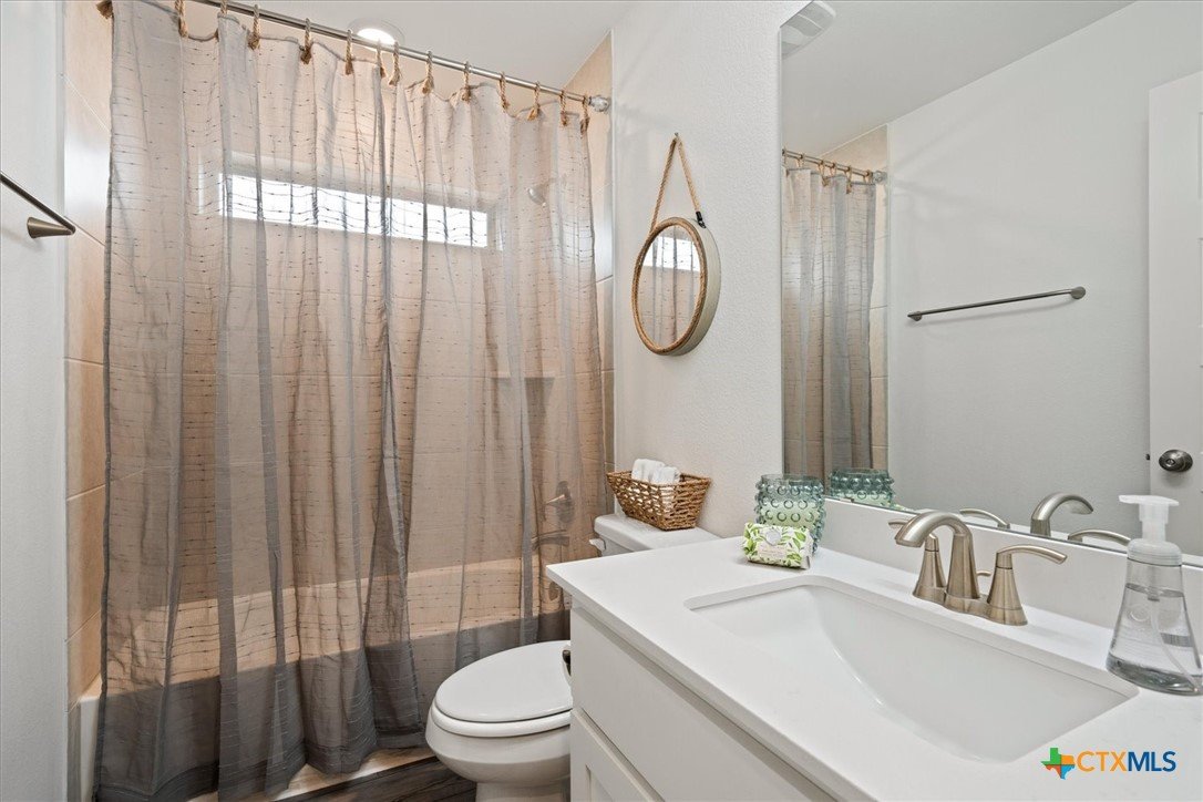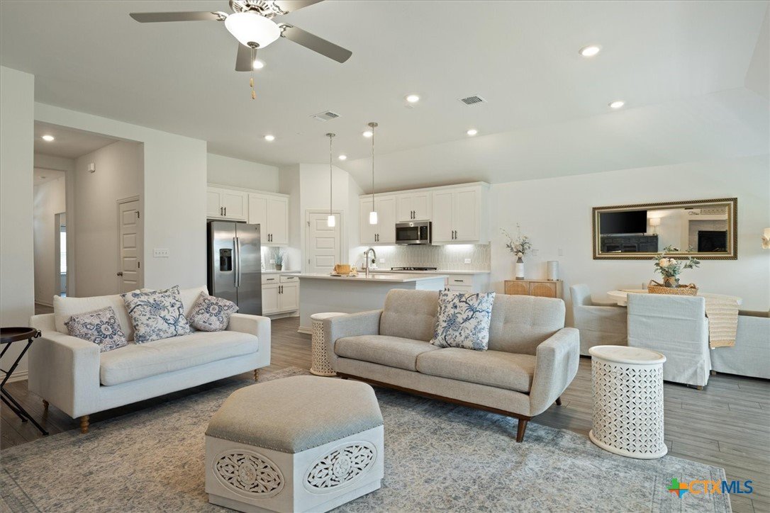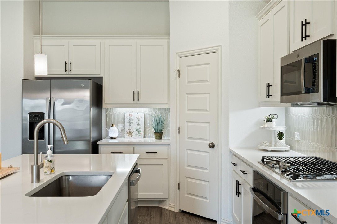 Low TAX RATE! Listing refreshed and staged! Welcome to your new home placed in the highly sought-after community of 6 Creeks, where convenience meets natural beauty! Step inside to discover the perfect modern comforts. LVP wood-style flooring creates an inviting atmosphere at every turn, easy on little feet and paws too! The heart of the home lies in the spacious kitchen, featuring bright white cabinets, countertops, and a huge island that serves as the focal point, overlooking the rest of the living space with a beautiful modern fireplace. Whether preparing meals or entertaining guests, this kitchen will inspire culinary creativity and lively gatherings. Step outside to your backyard oasis, where an extended covered patio provides the perfect spot for outdoor dining, BBQ (gas drop stub), or relaxing in the evening shade while overlooking the lush greenery around you. Don't miss your chance to own this exceptional home in 6 Creeks, where the best of both worlds awaits – urban convenience and natural serenity! Amenity Center/pool, pickleball courts, playscape, and pond are within .25 miles of this fabulous home. This stunning home offers easy access to major highways while being enveloped in the tranquility of winding walking trails and picturesque scenery.