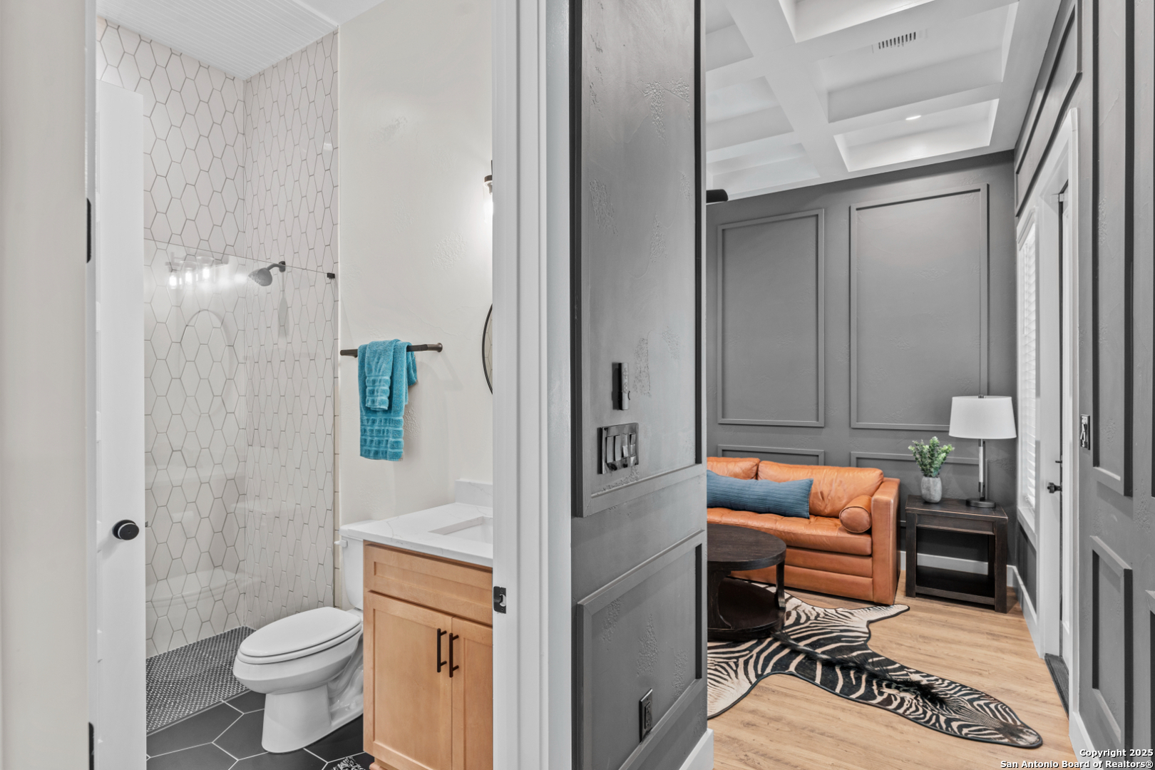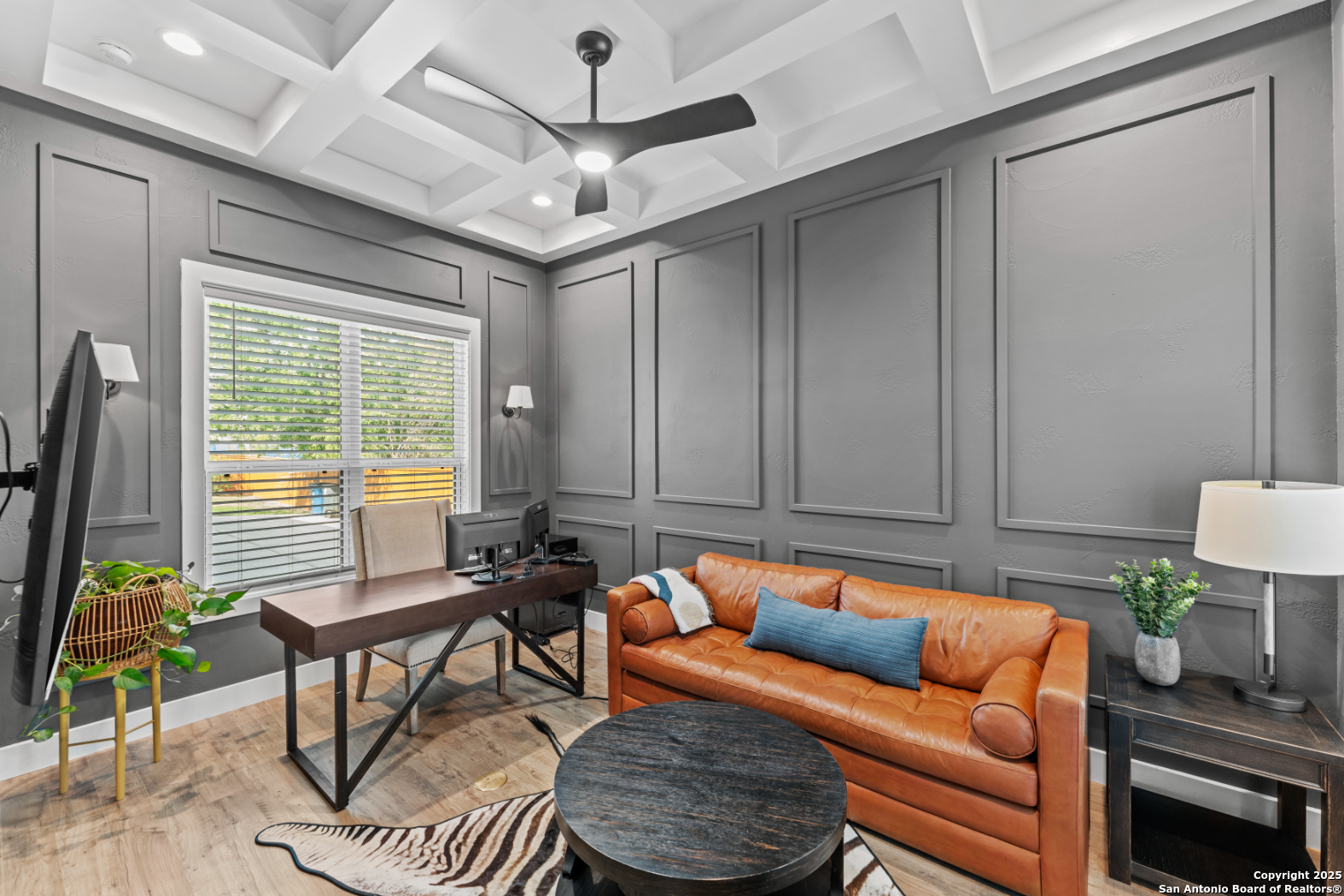 Welcome to this beautifully designed two-story home in the heart of New Braunfels, located in the sought-after Schneider subdivision. Offering 3 bedrooms, a dedicated office, a private movie theater room, and 4 bathrooms, this home delivers exceptional space, style, and thoughtful upgrades throughout. From the inviting curb appeal to the abundant parking and gated side drive, every detail has been carefully considered for both comfort and convenience. Inside, the open-concept floor plan is enhanced by a striking statement stair railing, designer accent walls in the dining area, and elegant finishes that create a warm yet modern aesthetic. Perfectly positioned just golf-cart distance to downtown New Braunfels, this home embraces the highly desirable golf-cart lifestyle , enjoy easy access to local dining, shopping, and community events! Additional highlights include being pre-plumbed and wired for a future pool, pre-plumbed and wired with a pad already set for a generator, and an EV charging plug to accommodate modern living needs.This is a rare opportunity to own a move-in-ready home with flexibility, function, and location all in one.