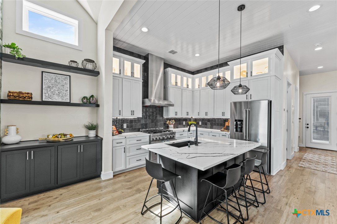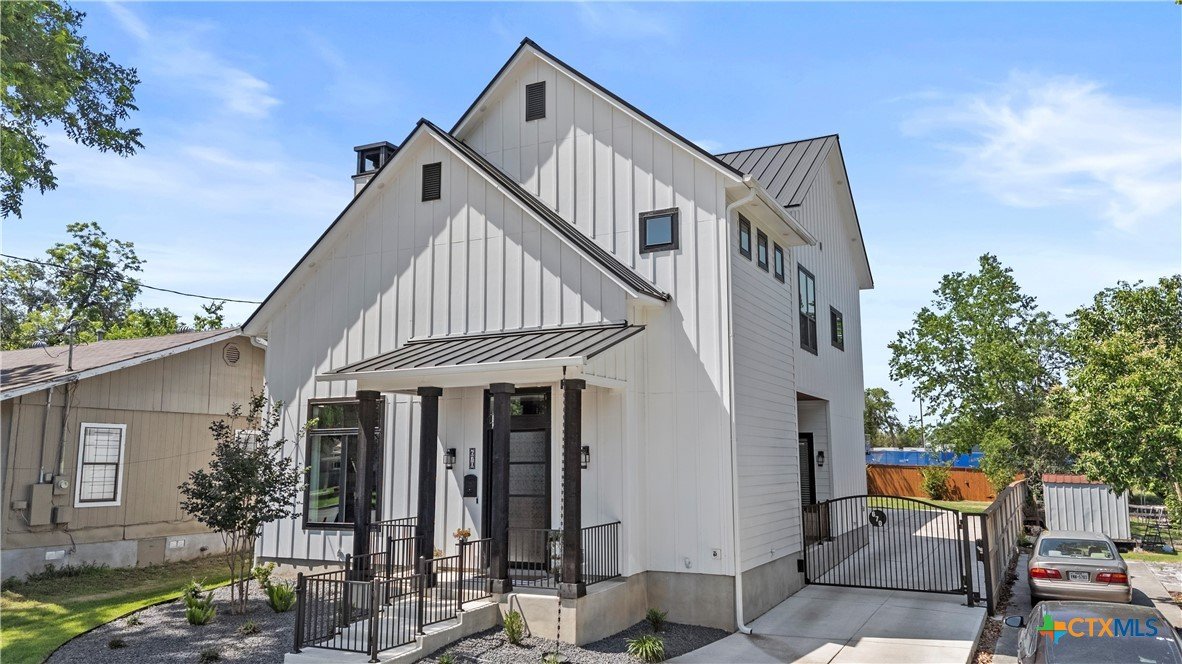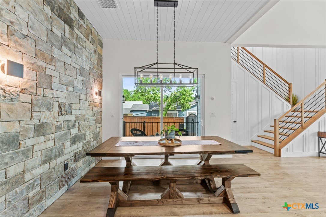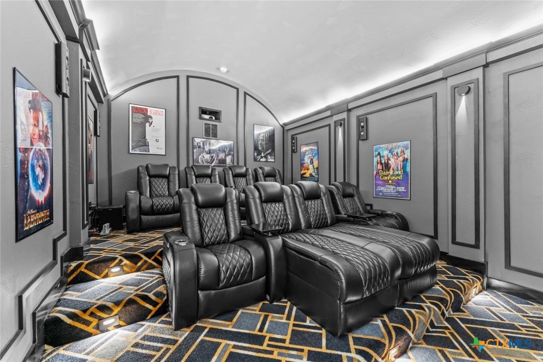 Discover this beautiful and elegant two-story home in the Schneider Subdivision, just minutes from downtown New Braunfels. Featuring 3 bedrooms, an office, a full movie theater room, 4 bathrooms, and a wealth of new finishes and upgrades, this property blends charm and sophistication. The inviting front curb appeal sets the tone, while abundant parking and a gated side driveway add convenience. Inside, the open floorplan is enhanced by a striking stair railing, accent walls in the dining room, and an elegant living room with a stone fireplace and built-in shelving. The spacious kitchen offers a large island and added shelving, perfect for both cooking and entertaining. The primary suite features its own private fireplace, balcony access, and a luxurious en-suite bathroom with a soaking tub and oversized walk-in shower. Upstairs, enjoy a fully equipped movie theater with upscale recliners, a game room, and additional living space. The backyard provides a private retreat with a full privacy fence and plenty of room to relax or entertain. This home delivers comfort, style, and a prime location all in one!