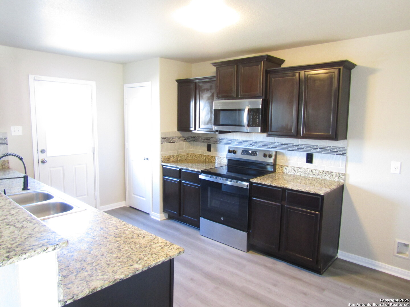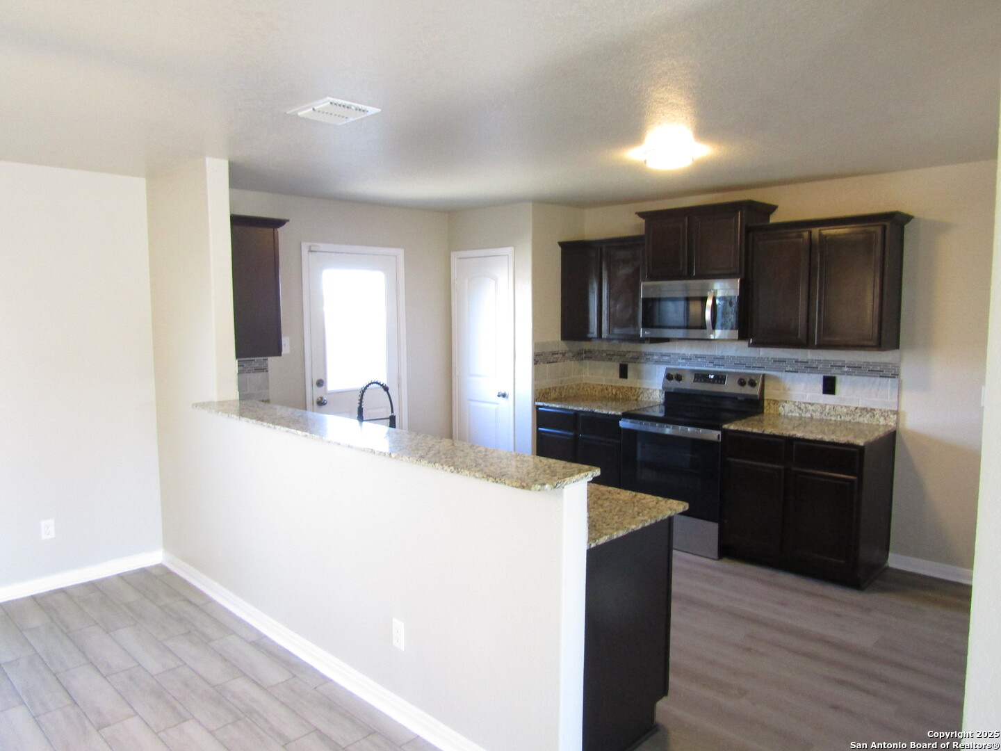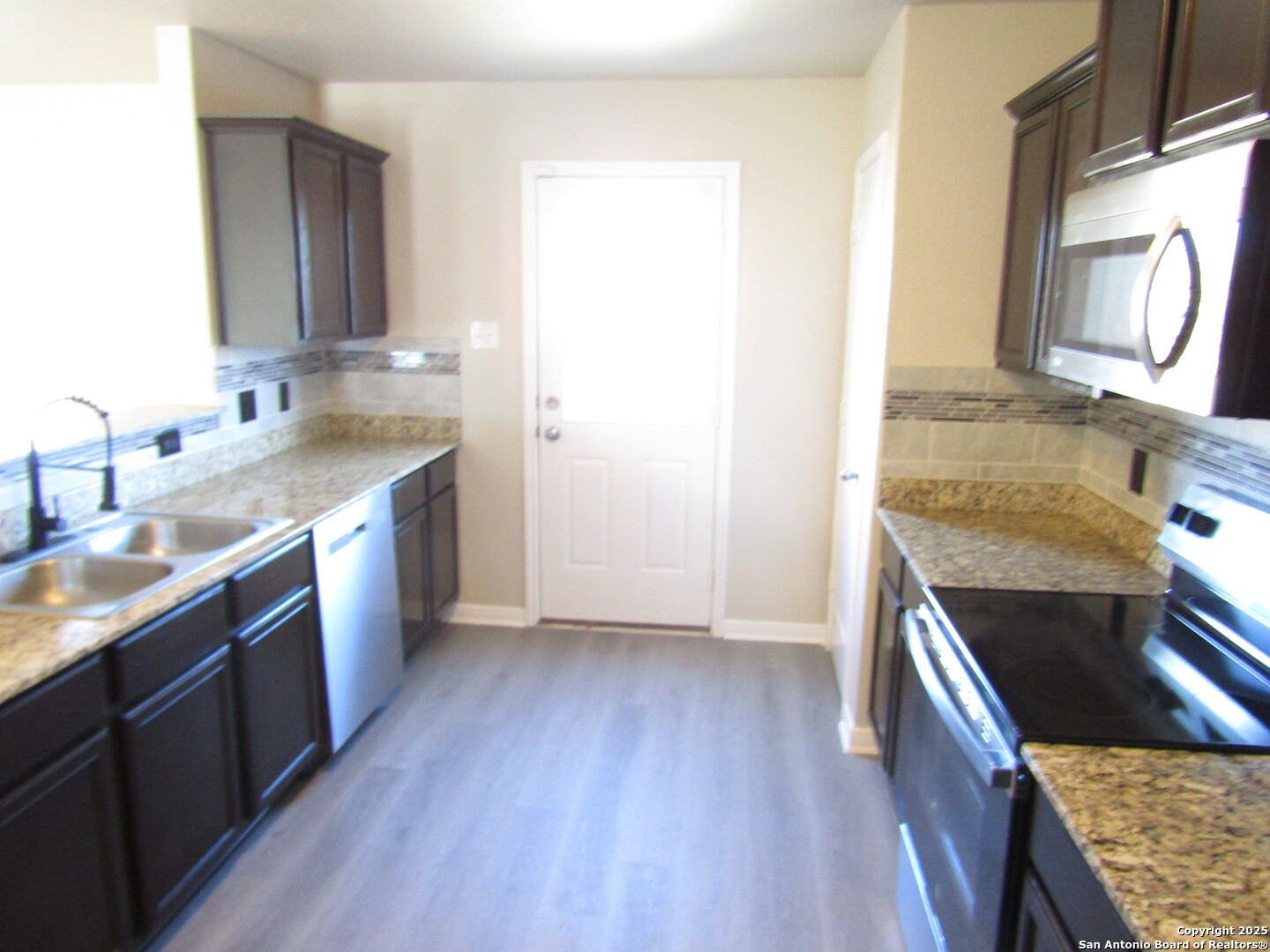 Move in ready, nicely updated open floorplan on a greenbelt lot. Enter into the updated tile flooring throughout the first floor. Kitchen has granite counters, large cabinets, and new appliances. Recent updated new ceiling fans, light and plumbing fixtures. The spacious master suite features a large walk-in closet, and private bath. New carpet inside! Granite countertops for both full baths. Garage has finished decorated flooring. Large backyard with a lot of potential possibilities! Stellar schools of Medina Valley ISD! USDA eligible for no down payment. Luckey Ranch has a 22 acre park that includes, $2 million sports park, multiple children's playgrounds, splash pad, and a 7 acre fishing lake.