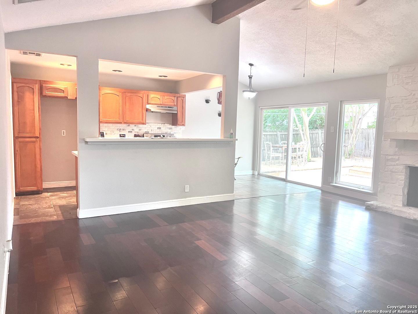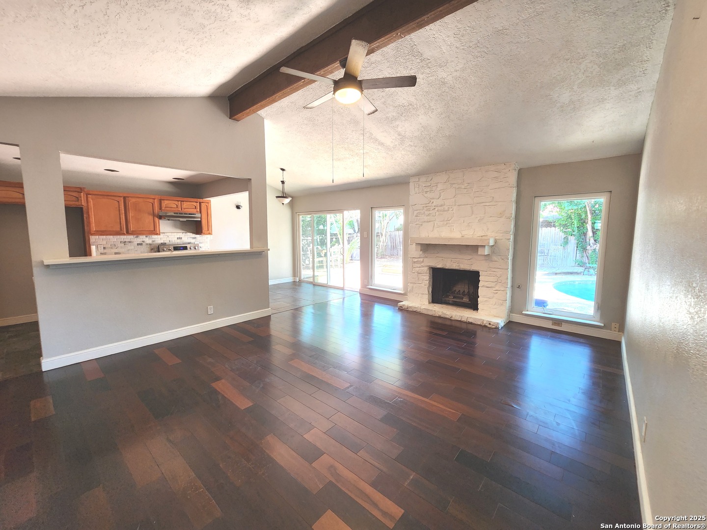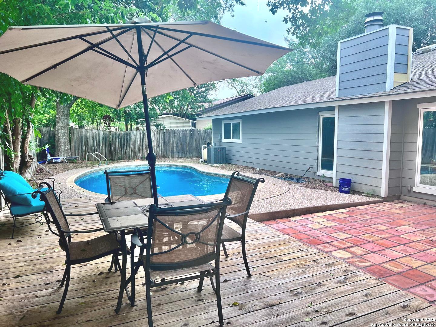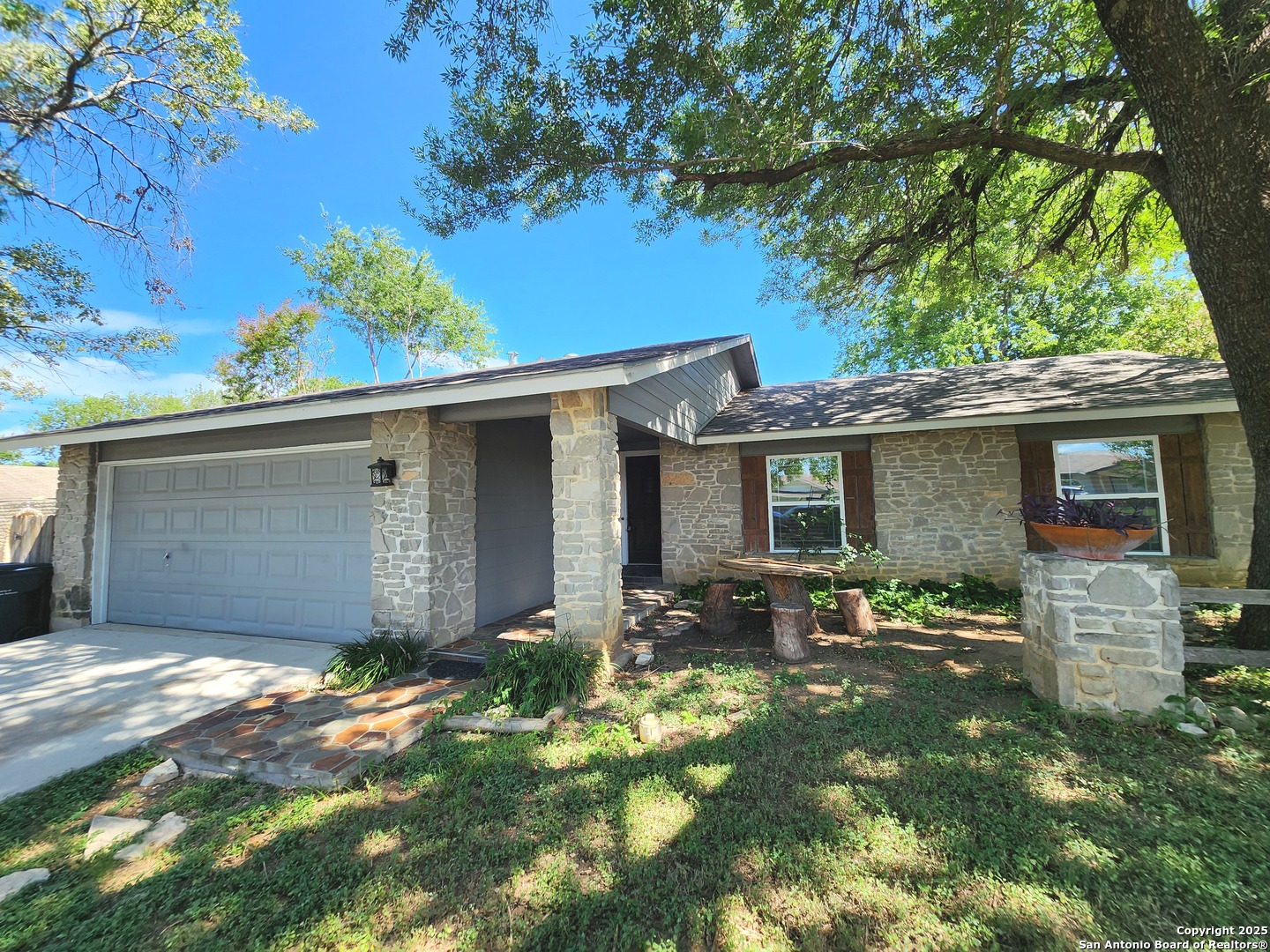 This spacious charming home with 1448 square feet has plenty of comfortable living space, 4 bedrooms, 2 baths. As you come up to the front entry you will notice the beautiful flagstone walkway to the front door. Step into the living room which as a vaulted ceiling and a beautiful fireplace. You can enjoy the view of the pool from the living room. Wonderful backyard which is perfect for those family gatherings with plenty of shade, Saltillo flooring on the porch and deck with an oversized sitting area. Cool off in the beautiful inground pool. Recent updates were done within the last 5 to 6 years. living room has high vaulted ceilings with a stone fireplace and a side window so that you can view the backyard with inground pool. beautifully updated features include, recessed lights, quartz counter tops in the kitchen. pantry and washroom combo located next to the kitchen with a sensor light when you walk in. Engineered hardwood flooring, ceramic floor in kitchen/breakroom area. Ceiling fans in the bedrooms. Master bath has recessed lights, granite double vanity and Walk-in closet with plenty of storage room.