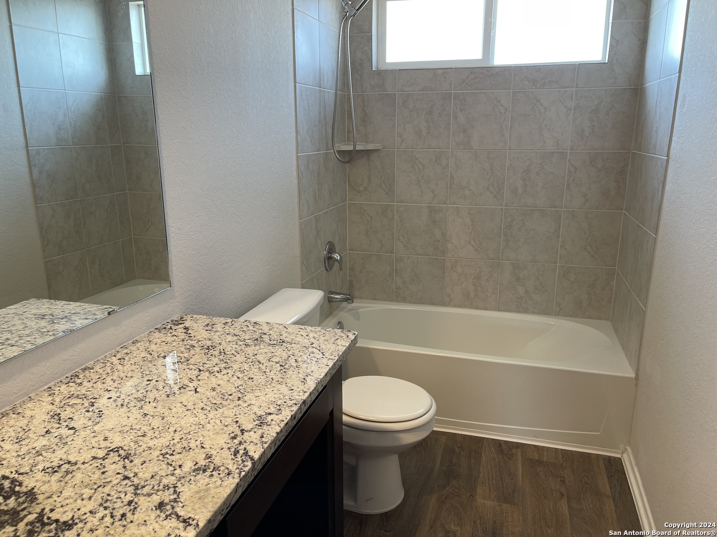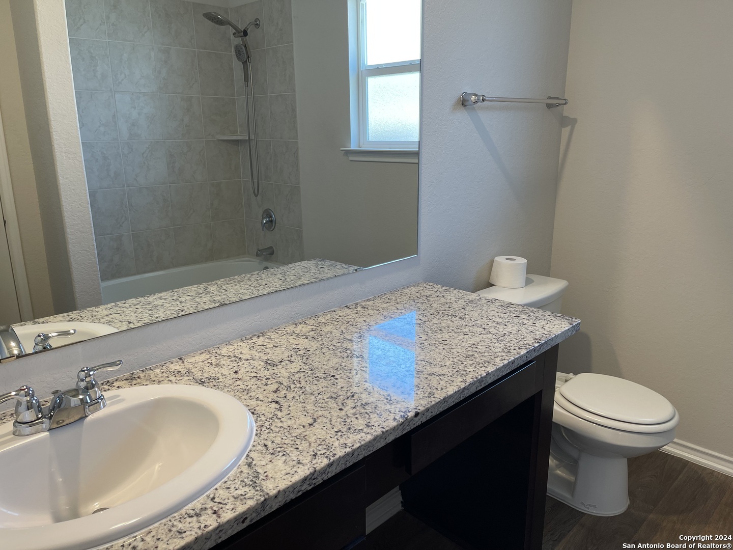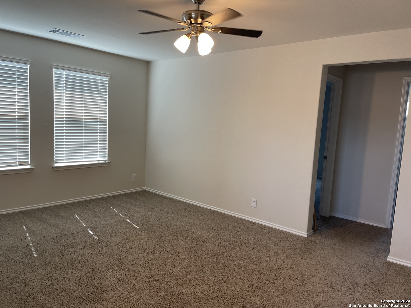 New home in popular Whisper Falls community. 2084 sq ft 4 bedroom (master bedroom down) 2.5 baths, one car garage. Open floorplan living, dinning, kitchen. Master bedroom with full bath downstairs. Master bath granite countertop, combo shower and tub, large master closet. Storage space underneath stairs. One car garage. 1/2 bath downstairs. Small loft upstairs with 3 secondary bedrooms, one full bath featuring one vanity, combo shower and tub. Energy Star home. All appliances included. Extra large utility upstairs. Small covered patio to back yard. Great amenities includes lake, playground, community pool and more. Pet friendly.