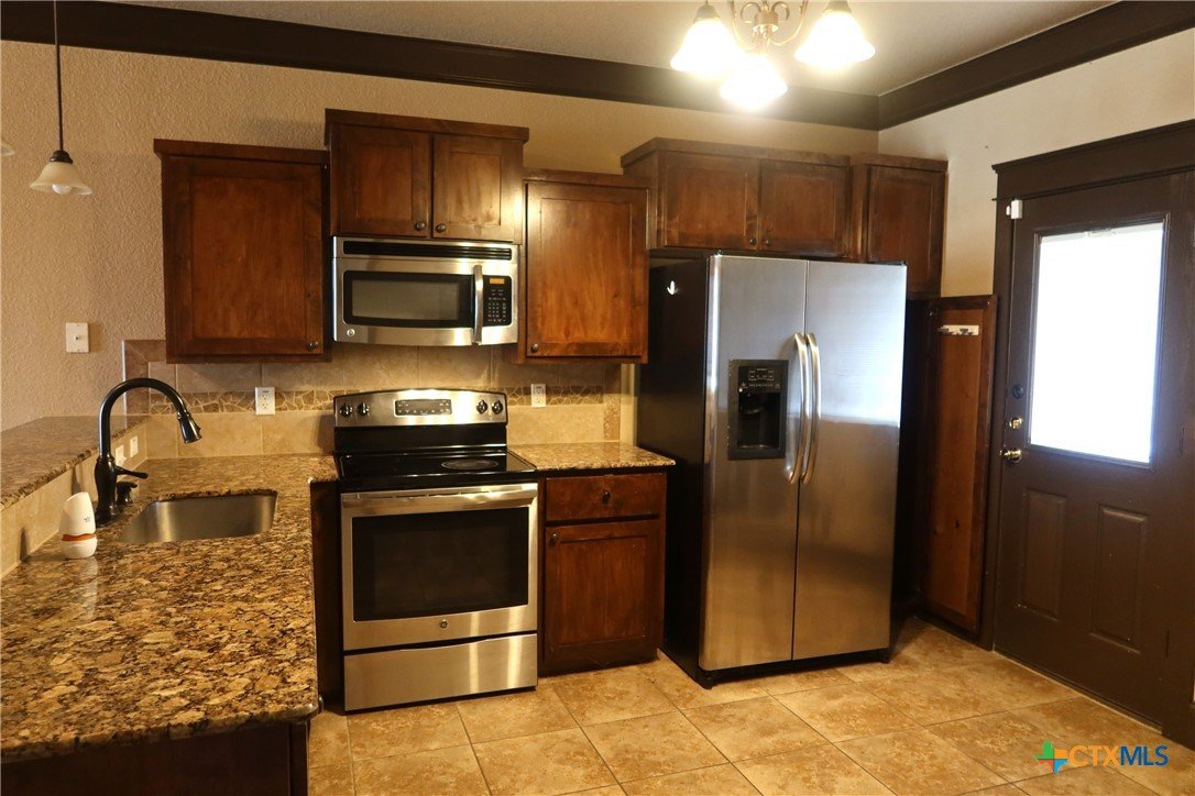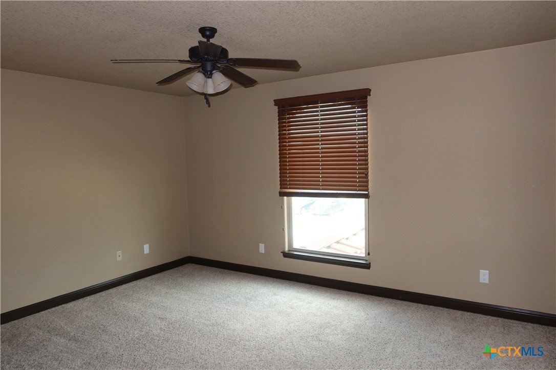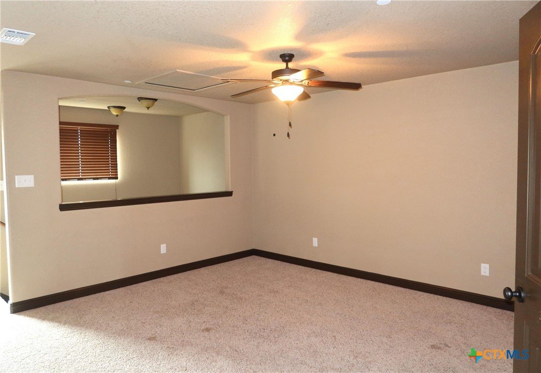 Welcome to this stunning two-story townhome that is move-in ready! The floor plan ensures privacy that features the master bedroom/bathroom on the main level and a large loft, 3 bedrooms and 1 full bathroom on the upper level, as well as a half bathroom in the living area, perfect for comfortable living. The living room is combined with the dining area and features tile flooring, large windows, ceiling fans and carpet flooring in all bedrooms. The open kitchen features granite countertops, stainless steel appliances, walk-in pantry, breakfast bar and laundry room with built-in cabinets with access to the rear-entry 2-car garage. The master bath has a separate shower and double vanity with a Texas size walk in closet. Also features a security system, smart thermostat, window treatments and so much more! Located close to the university, major highways, schools, area amenities, airports and military installation. Make this beautiful gem your home today!