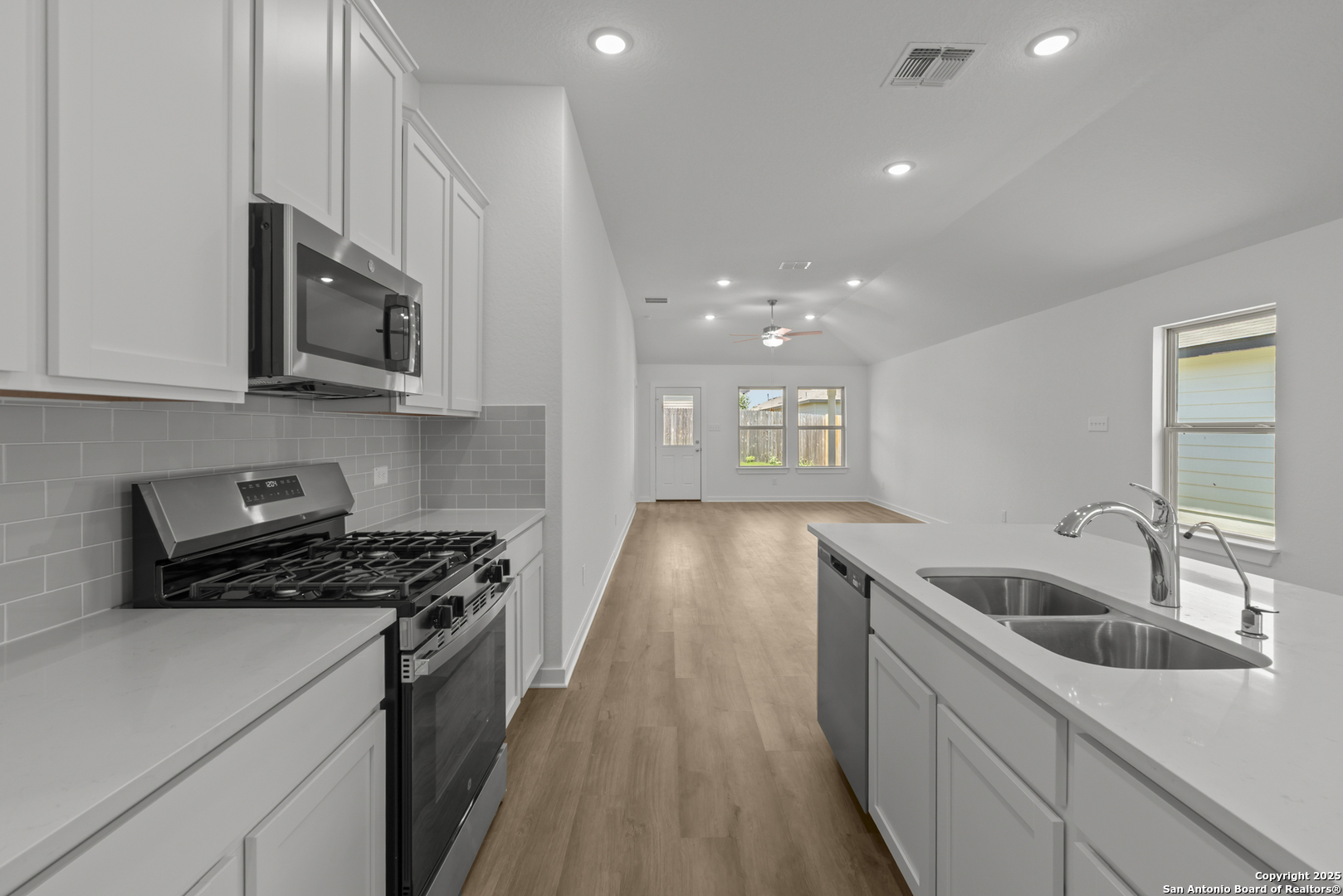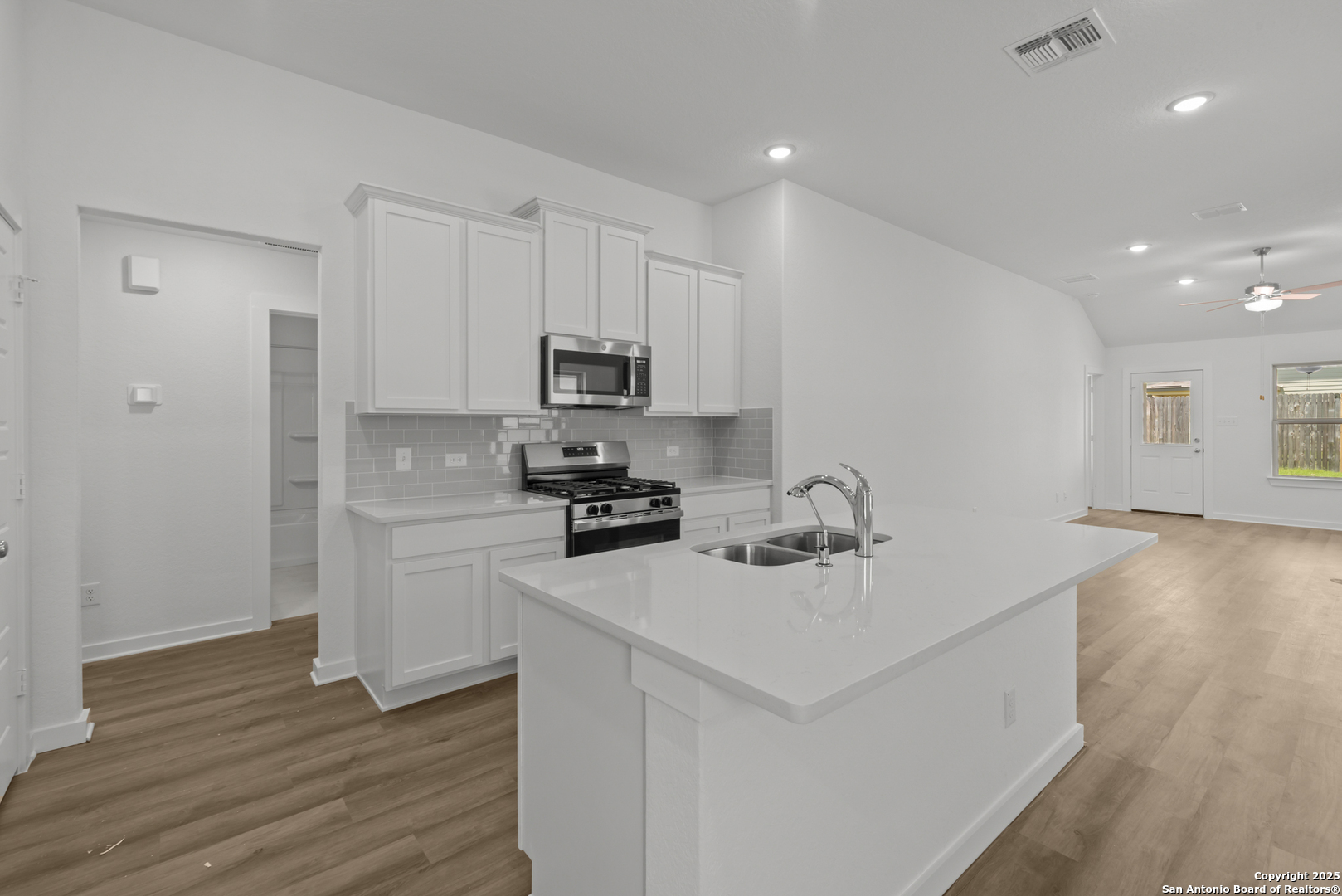 **READY NOW***Welcome to this beautiful new construction home located at 6719 Red Buffalo Trail in San Antonio, TX 78253. This modern 3-bedroom, 2-bathroom home built by M/I Homes, one of the nation's leading new construction home builders, offers a perfect blend of comfort and style. Your New Home Features Upon entering, you are greeted with an open floorplan that seamlessly connects the living room, dining area, and kitchen, creating a spacious and inviting atmosphere for daily living and entertaining. The kitchen is a chef's delight, featuring sleek countertops, stainless steel appliances, ample cabinet space, and a large island that doubles as a breakfast bar. The master bedroom is a serene retreat, boasting a walk-in closet and an en-suite bathroom with a double vanity, a soaking tub, and a separate shower. The two additional bedrooms are generously sized and share a well-appointed full bathroom. Enjoy the convenience of a 2-car garage for parking and storage needs. Step outside to the covered patio where you can unwind and enjoy the fresh air in your private outdoor space. With 1,485 sqft of living space all on one level, this home is perfect for families, professionals, or anyone looking for a comfortable and low-maintenance living environment.