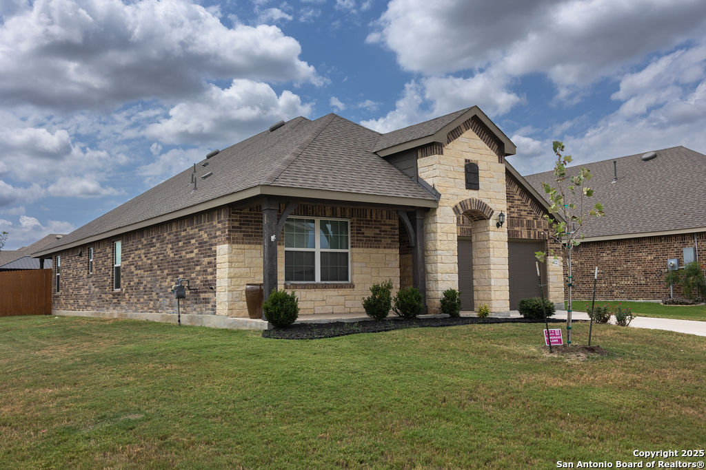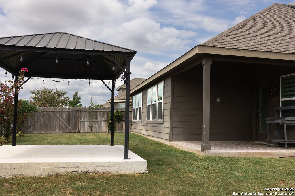 Check out this well maintained one story home with three bedrooms plus a study space! Easy access to the neighborhood pool/BBQ area as well as to 725 to jump onto I35. Ceramic tile in all common areas and fresh carpet in the bedrooms. The backyard offers a covered patio as well as a detached gazebo, perfect for summer BBQ's and outdoor entertainment. The primary bedroom has a huge closet which connects to the laundry room. This home is available for immediate move in!