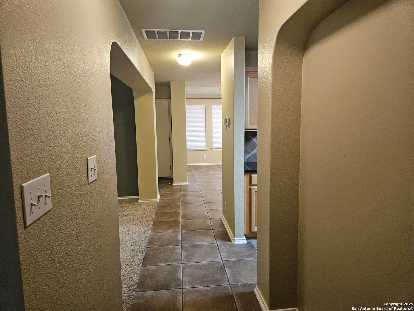 Gated Community. Well Maintained 3 bedroom two bath in desirable Provincia Subdivision. As you enter front door you are greeted by a long hall way. To your right is a office area. To the left is a down stairs half bath and a stairway. Further walking in to the left is a formal dining room with oval arches. to the right is the kitchen area. at the rear of the property is the living room. Bottom floor has beautiful Ceramic tile throughout lower level. Going up stairs you have the master at the end of the hall and two secondary bedrooms. Master has a full bath with a separate shower and tub. There is also a secondary bath upstairs. All bedrooms upstairs. Home has a small back yard and a one car garage. Property is close to school, shopping and more. no pets and smoking outside only.