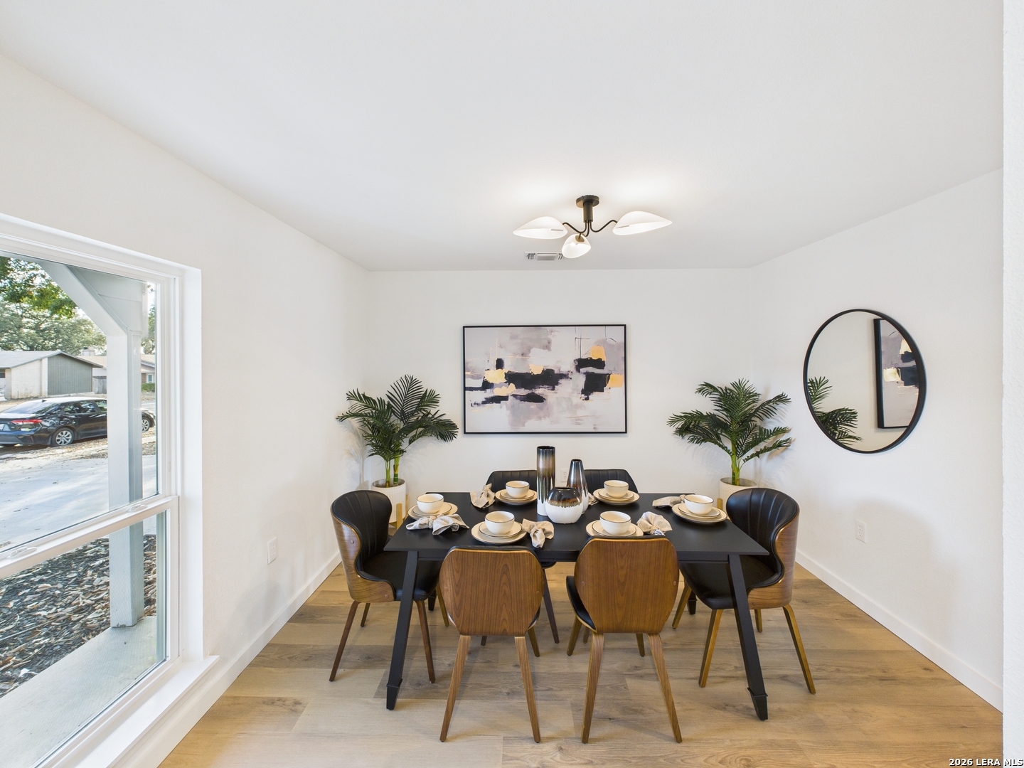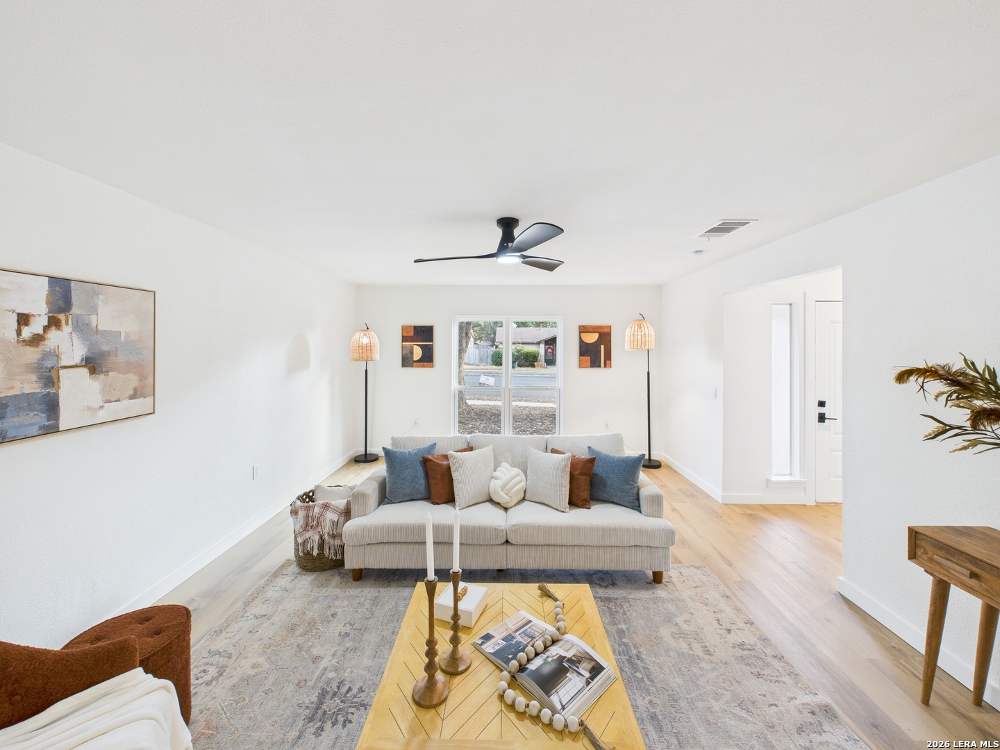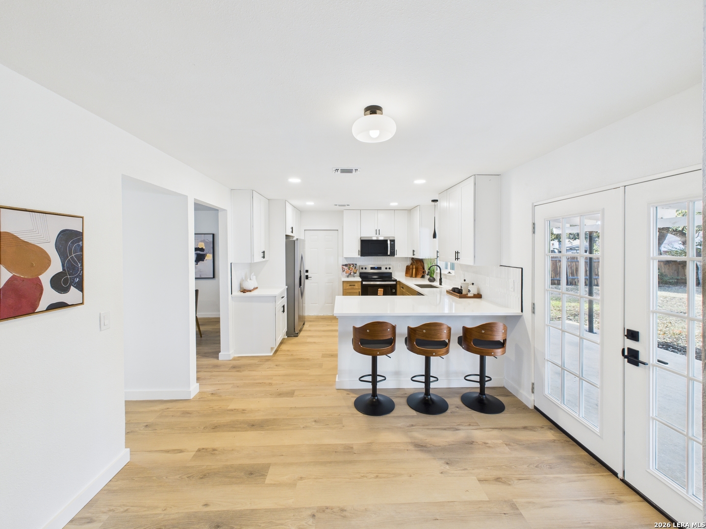 Welcome to 6723 Timberhill, a beautifully renovated residence offering a bright, modern aesthetic and a thoughtfully designed, functional layout. This refreshed home showcases clean lines, contemporary finishes, and inviting living spaces ideal for both everyday living and effortless entertaining. The interior is filled with natural light and features fresh paint, updated lighting, and wide-plank luxury flooring throughout the main living areas, creating a warm and open feel. Multiple living and dining spaces provide flexibility for relaxing, hosting guests, or creating a dedicated work-from-home area. The fully updated kitchen serves as the heart of the home, featuring modern white cabinetry, sleek quartz countertops, stainless steel appliances, and a spacious island with seating. The open flow into the dining and living areas makes this space perfect for gatherings and daily meals alike. Bedrooms have been carefully refreshed with neutral tones, updated ceiling fans, and ample closet space, offering comfort and versatility. The bathrooms have been tastefully updated with clean finishes, modern vanities, and contemporary fixtures, delivering a true move-in-ready experience. Outside, the expansive backyard provides a blank canvas with plenty of room for outdoor entertaining, gardening, or future enhancements. A spacious driveway and garage offer convenient parking and storage. Conveniently located in Leon Valley near schools, parks, shopping, dining, and major highways, this home combines modern style with everyday practicality. With thoughtful updates throughout and a welcoming layout, 6723 Timberhill is ready to be enjoyed from day one.