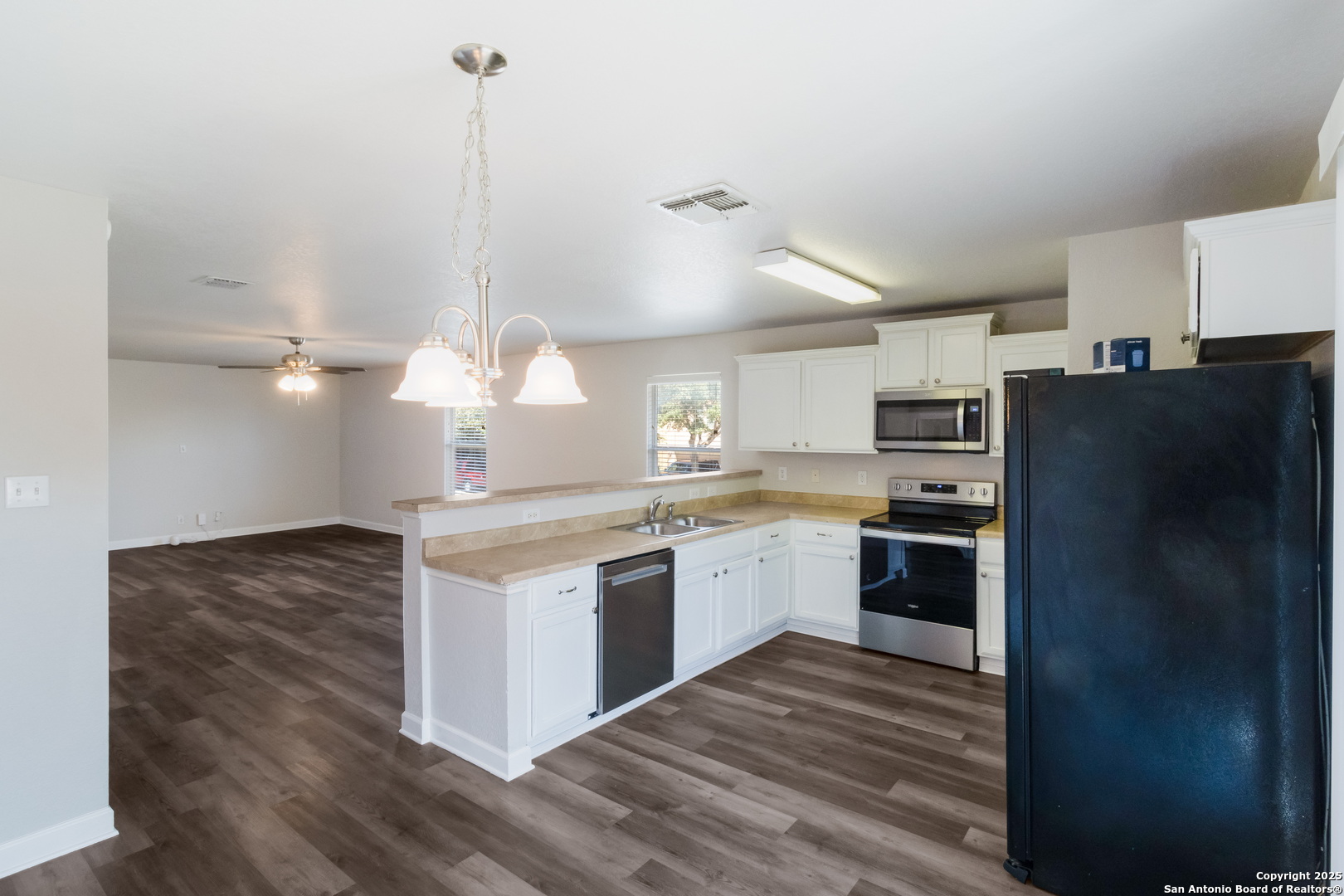 Nestled on a lovely corner lot in the ever-popular Lomas Verdes subdivision, this charming single-story home built in 2006 offers a comfortable and practical 1,524 sq ft of well-designed living space. With three bedrooms and two bathrooms, the home welcomes you with freshly painted, neutral-toned interiors and durable vinyl plank flooring throughout the main living areas, complemented by cozy carpeting in the bedrooms. The spacious, sunlit living room flows into a well-equipped kitchen boasting appliances, a dishwasher, and ample counter space-perfect for meals or entertaining. The primary suite is a standout, featuring generous proportions and a large closet that offers luxury and convenience. Outside, the corner lot showcases mature trees and a neat yard-ideal for outdoor gatherings or weekend relaxation. A two-car attached garage ensures parking and storage are taken care of, while the home's proximity to I-35, Loop 1604, IKEA, as well as Fort Sam Houston and Randolph AFB, make it an excellent choice for commuters and military members alike. All in all, this clean, move-in-ready home marries comfort, convenience, and desirable locale in one thoughtfully maintained package.