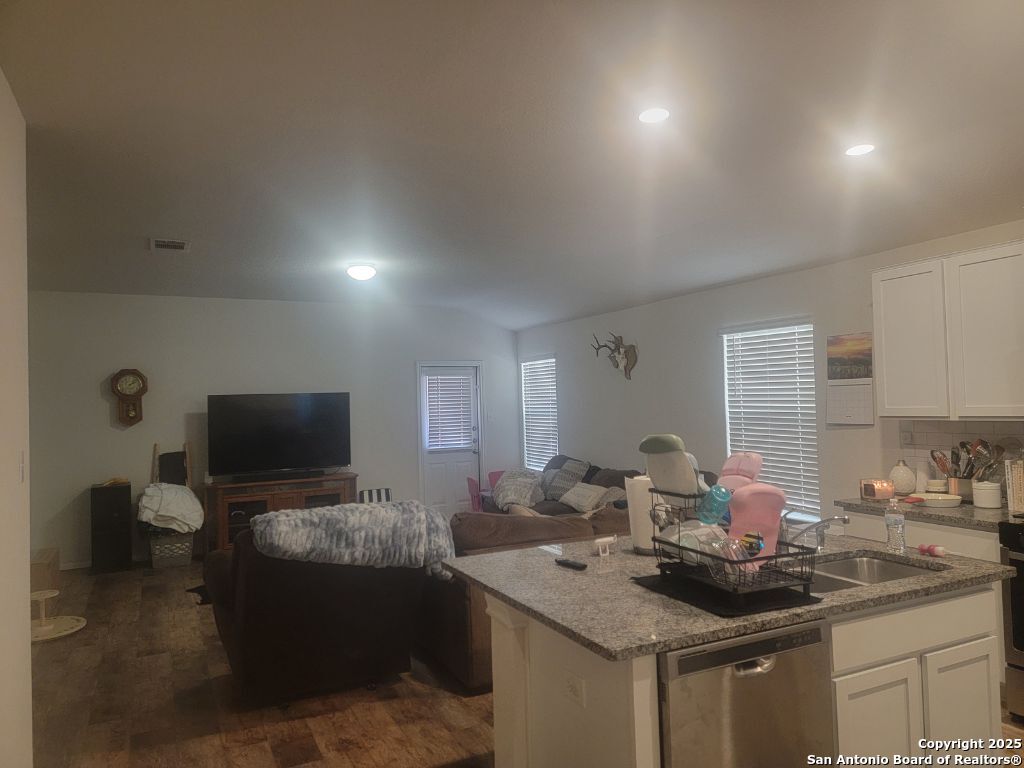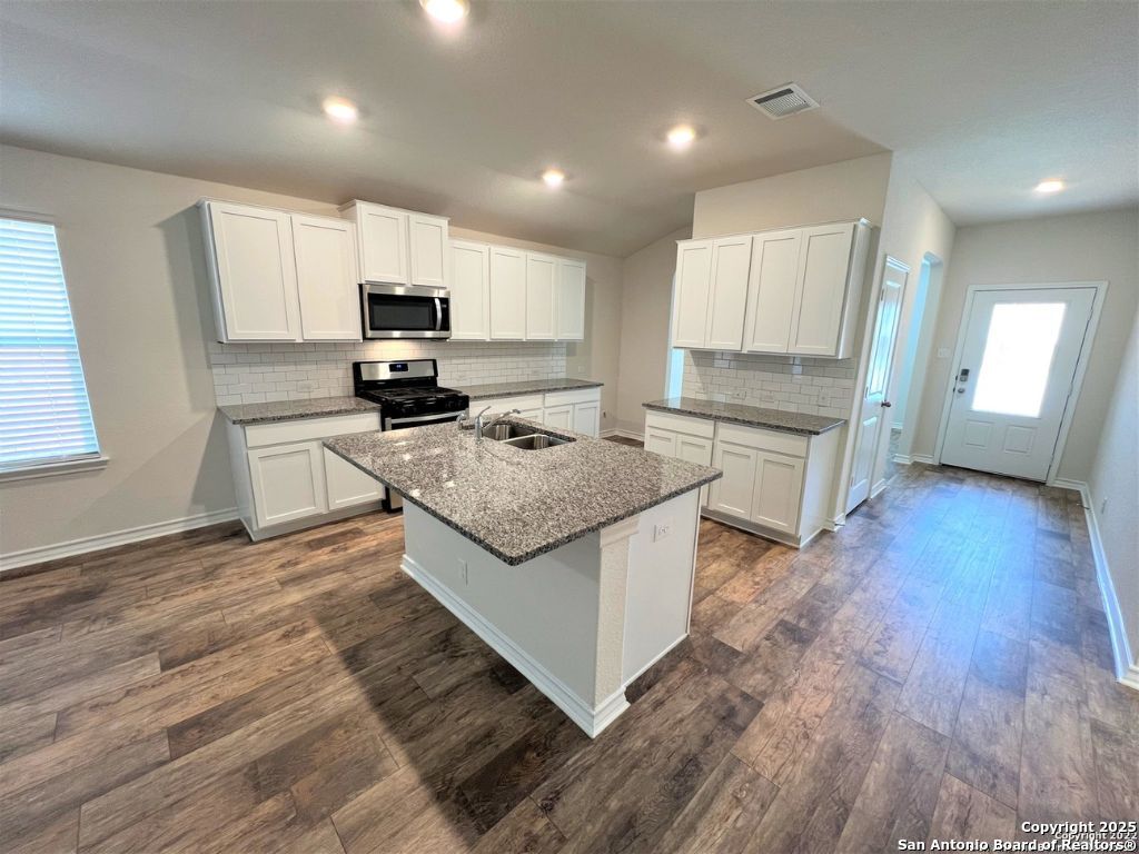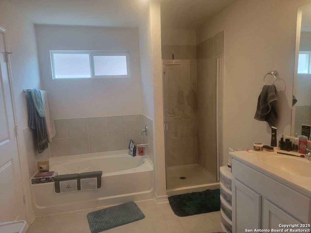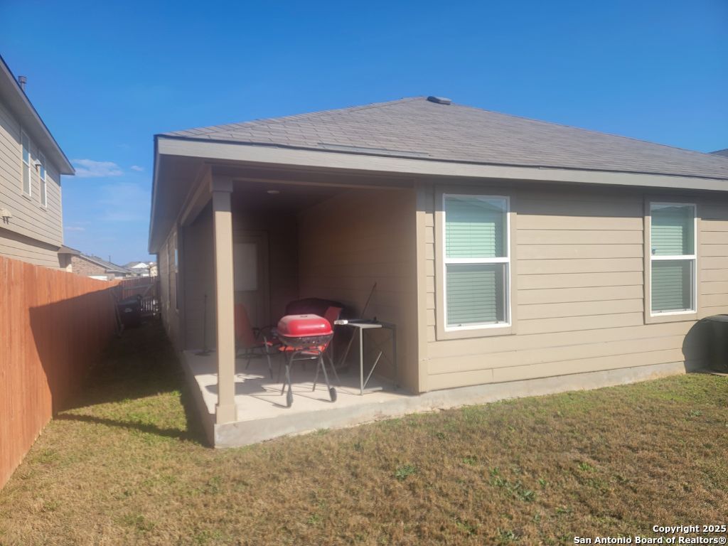 Welcome to Whispering Falls, where comfort meets convenience! This stunning 3-bedroom, 2-bathroom home spans 1,650 sq ft of generous living space, designed with an open floor plan perfect for modern living. From the moment you step into the inviting entryway, you'll be drawn to the gorgeous kitchen featuring stainless steel appliances, granite countertops, recessed lighting, and a stylish island bar -perfect for entertaining or casual family meals. The grand master suite is a true retreat, tucked away in the corner for ultimate privacy. It boasts a walk-in closet, vanity, oversized soaking tub, and a walk-in shower. The secondary bedrooms are spacious and versatile, ready to adapt to your needs. Throughout the home, you'll find neutral-colored walls, blinds, and durable vinyl plank flooring, with cozy carpeting in the bedrooms for added comfort. Step outside and fall in love with the expansive backyard! Whether you're hosting a summer barbecue on the covered patio or letting the kids and pets run free in the fenced yard, outdoor entertaining is a breeze. Plus, enjoy access to HOA amenities like a sparkling pool, playground, and park! Located near Lackland AFB with quick access to 1604, 211, and 90, this home is close to shopping, dining, and major employers like Citibank, Microsoft, Wells Fargo, and Christus Sta. Rosa. And to make moving even easier, this property offers a $0 deposit option with Obligo approval. This home is ready to welcome you-schedule your tour today and make it yours!" Some photos taken previous to current tenant.