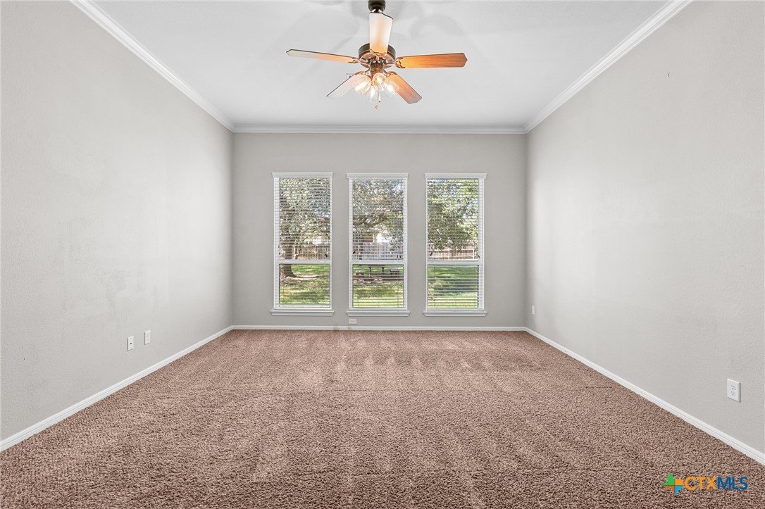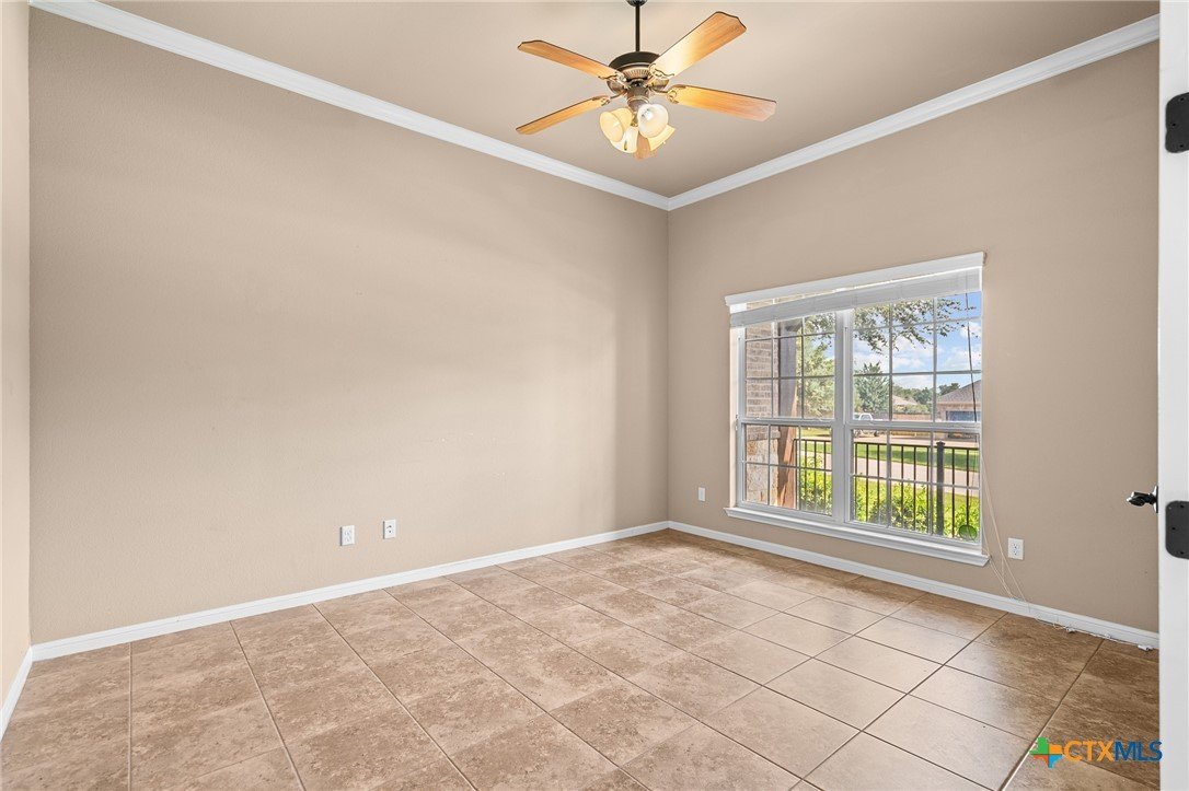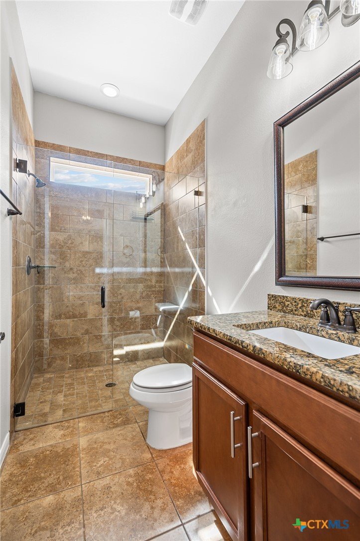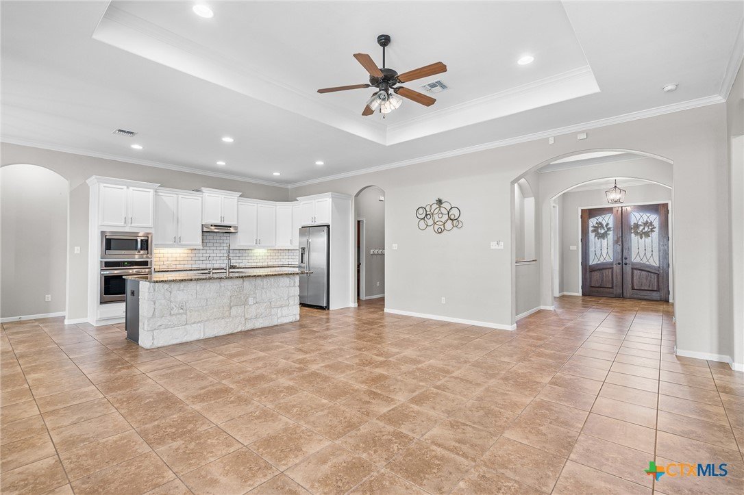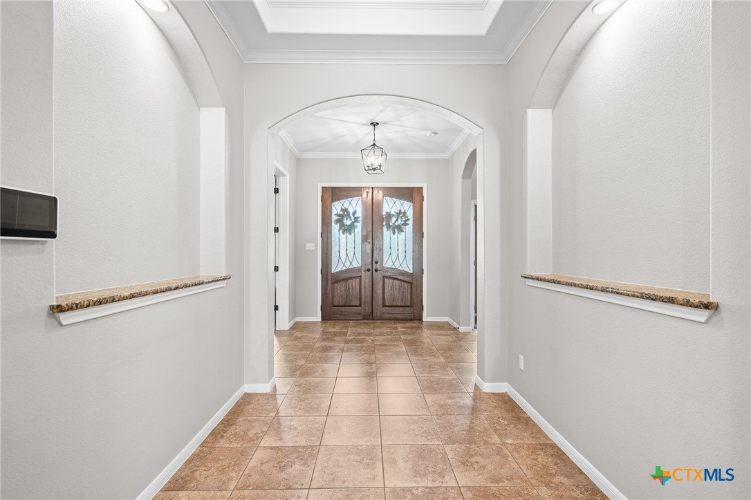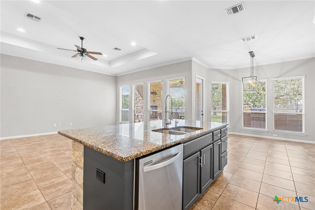 Welcome to this stunning 4-bedroom, 3-bathroom home nestled on a beautifully landscaped 0.5-acre lot in the High Crest community. From the charming front porch to the elegant double-door entry, every detail invites you in. Step inside to a spacious open-concept layout featuring a gourmet kitchen with a large island, granite countertops, stainless steel appliances, and tile flooring throughout the main areas, with carpet in the bedrooms. The oversized primary suite is a true retreat, offering a spa-like bathroom and a dream walk-in closet. A thoughtful Jack-and-Jill layout conveniently connects two of the secondary bedrooms, while a separate spacious bedroom and full bath providing an ideal space for guests or a mother-in-law suite. The additional office/flex room provides versatile space for work, relaxation, or hobbies. Enjoy the convenience of a 3-car garage and an incredible outdoor living area complete with a fireplace, built-in kitchen, and expansive covered patio that overlooks a serene, tree-filled backyard ideal for relaxing or entertaining. Recent upgrades include a fully resodded front lawn and a whole-home water purification system installed in September 2023. Located in close proximity to schools, grocery stores, and beautiful Belton Lake, this home offers the perfect balance of luxury, comfort, and convenience.