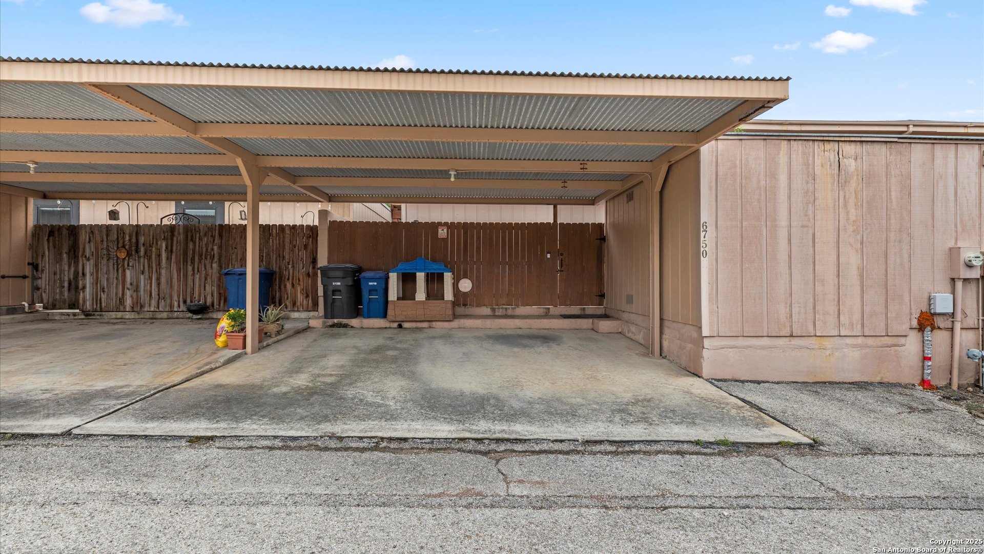 Experience the comfort of townhome living in Royal Ridge! Updated home features laminate flooring and a spacious entry that flows into the open living/dining combo-ideal for relaxing or entertaining. The kitchen offers a smooth cooktop, breakfast bar, and walk-in pantry. The split primary suite includes an en-suite bath with granite countertop and new glass doors at shower. The secondary bath showcases stylish decorative tile. Step out back to enjoy the pergola-covered patio-your own private retreat. Direct access to a large carport and storage room adds extra convenience. HOA covers exterior insurance, basic cable, and maintenance. Enjoy quick access to I-35, Loop 410 & 1604, and take advantage of community perks like the pool, playground, and clubhouse with gym and sauna.