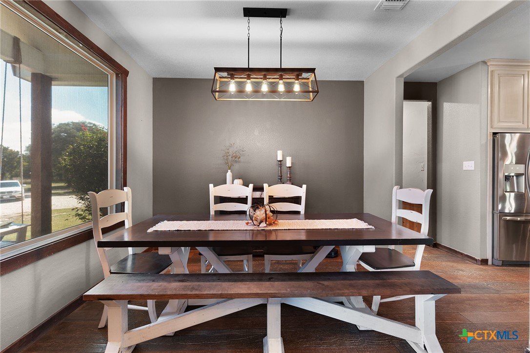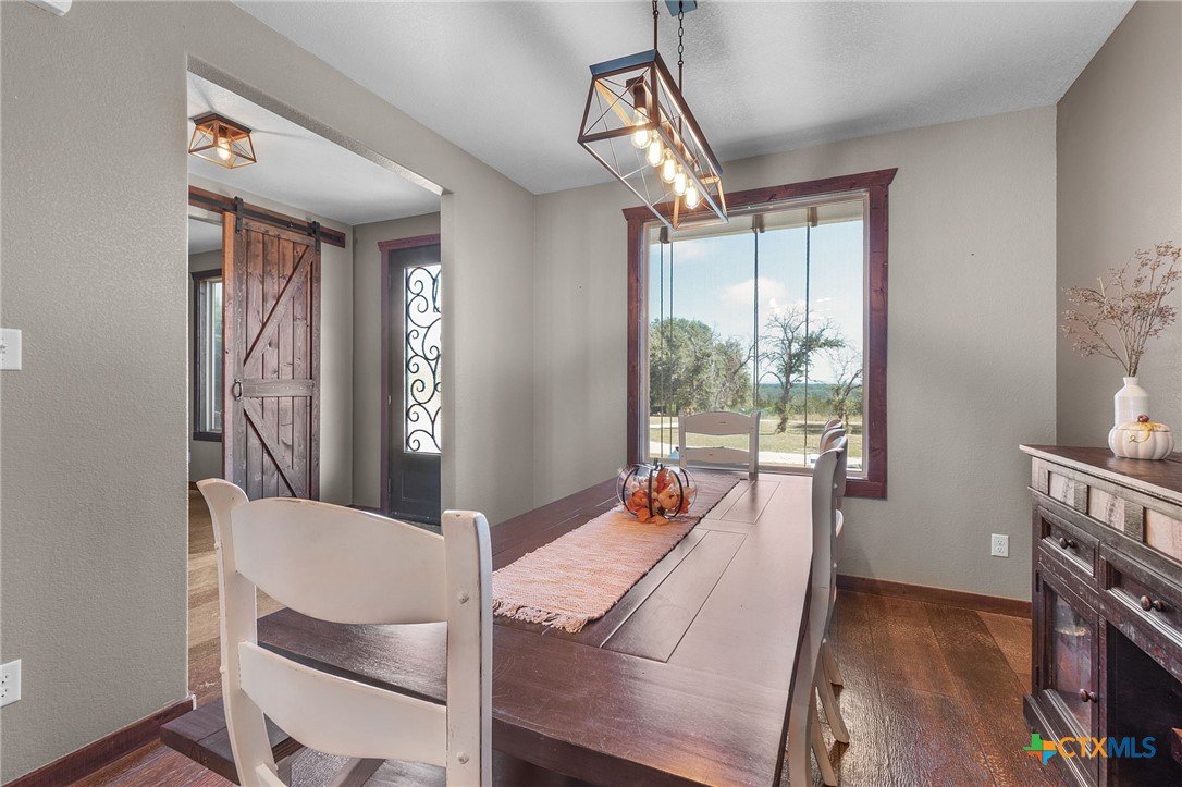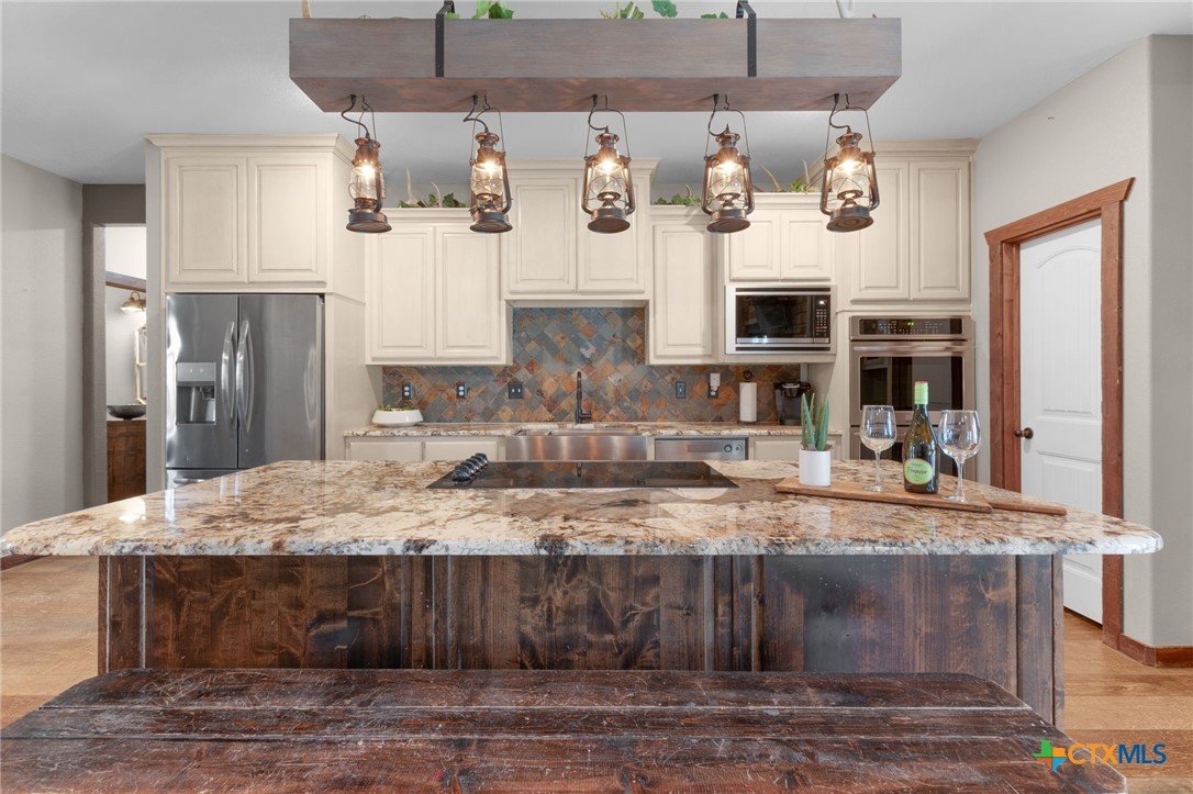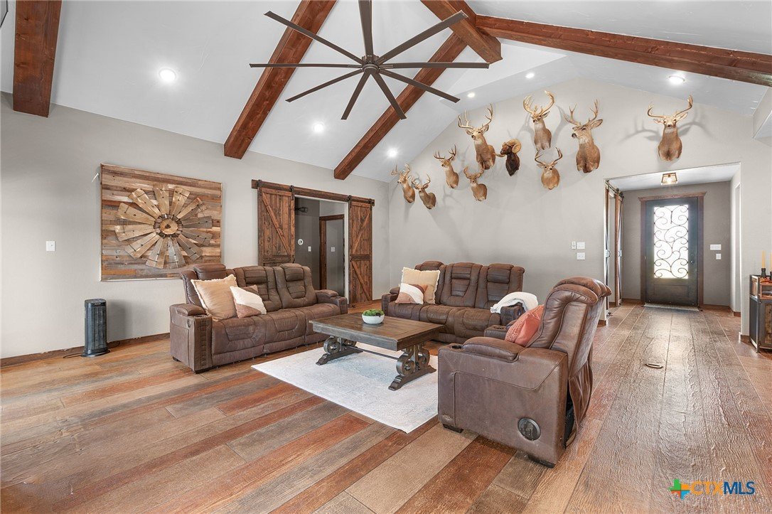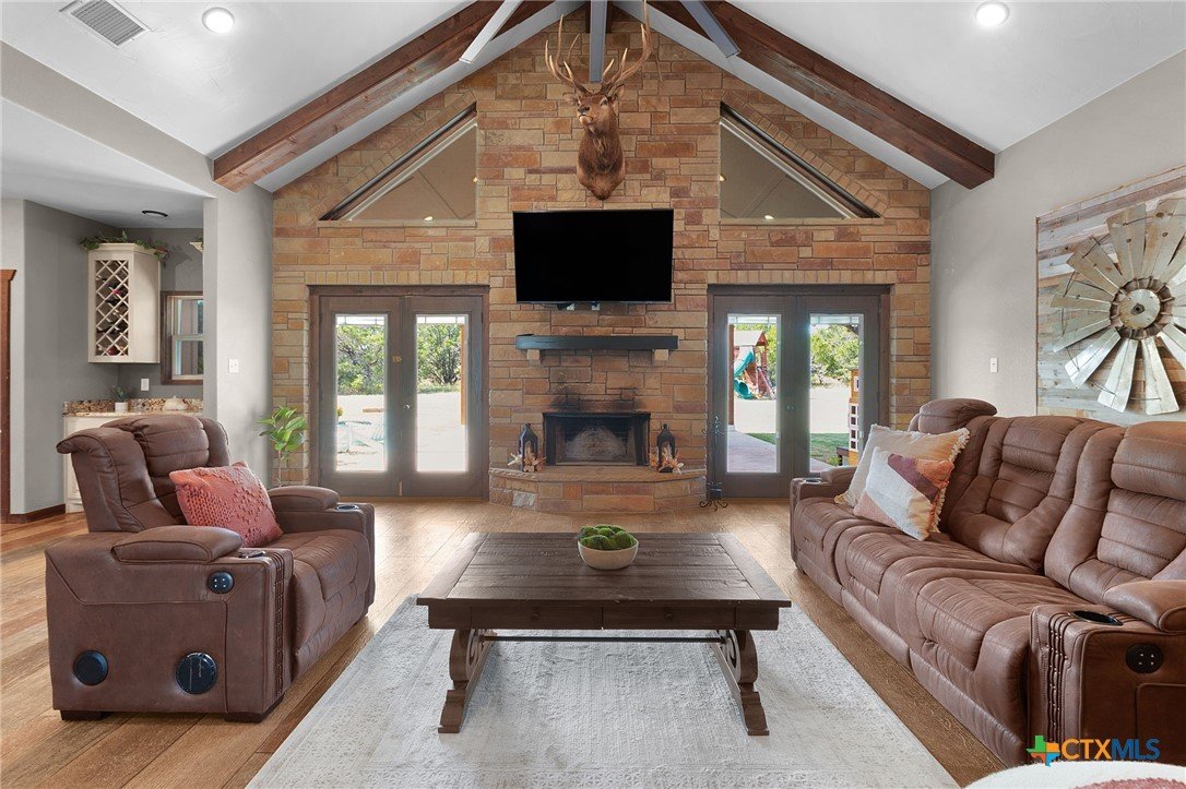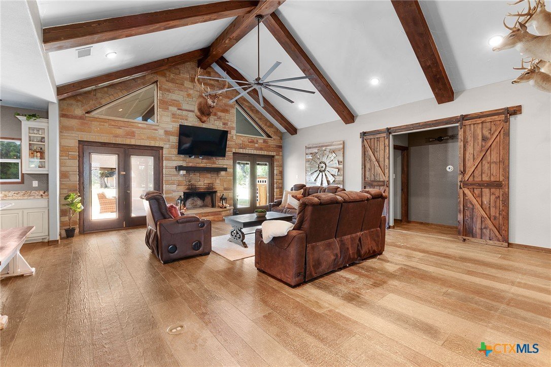Welcome to 6757 County Road 3010, a stunning 4-bedroom, 3-bath Hill Country retreat offering the perfect blend of rustic charm and modern comfort. Nestled on beautiful acreage between Lampasas and Copperas Cove, this fully fenced property is ideal for those seeking peaceful country living with the convenience of being close to town. Step inside and fall in love with the vaulted ceilings accented by exposed wooden beams, a cozy stone fireplace, and an open layout that’s perfect for family living and entertaining. The spacious kitchen features custom cabinetry, granite countertops, a large island, and a breakfast bar that flows seamlessly into the living and dining areas. A formal dining room offers an elegant space for gatherings and holidays. The primary suite is a private retreat with a luxurious en-suite bath featuring dual vanities, soaking tub, and walk-in shower. Additional bedrooms are generously sized with great natural light and ample storage. Outside, enjoy Hill Country sunsets by the sparkling in-ground pool, overlooking your stock tank, hay barn, and workshop—perfect for projects, livestock, or hobbies. With room for animals, cross fencing, and plenty of space to roam, this property delivers the country lifestyle you’ve been dreaming of. All this, just a short drive from local shops, dining, and schools in Lampasas and Copperas Cove.
