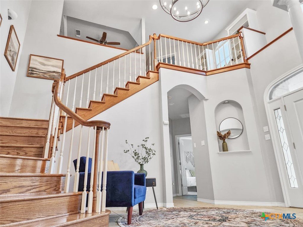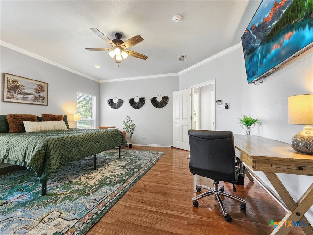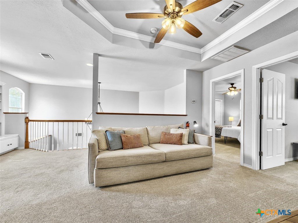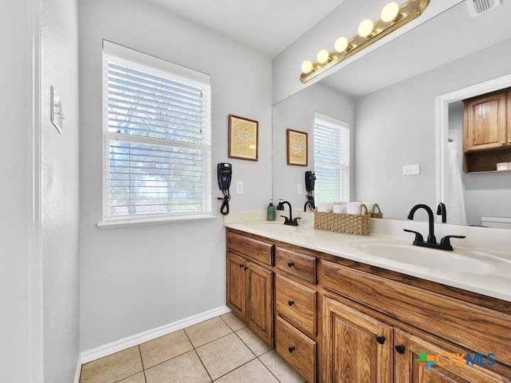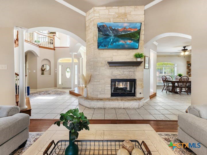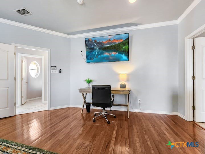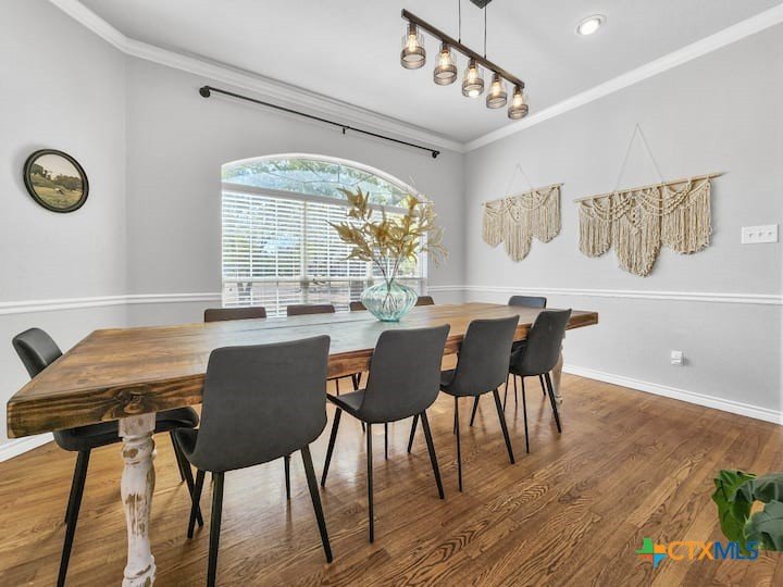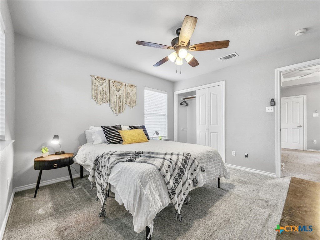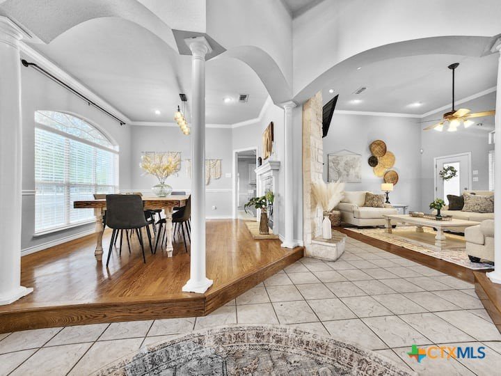 Welcome to this beautiful 5-bedroom, 3.5-bath farmhouse offering the perfect blend of charm, comfort, and functionality. Located south of Temple with quick and easy access to shopping, dining, and medical center off S 31st street, enjoy the serenity of country living with the convenience of town just 10 minutes away. Zoned for Academy schools, this estate home is ideal for entertaining, multi-generational living, or anyone seeking plenty of space for the whole family to spread out. The main floor boasts a large primary suite with an attached bathroom featuring a garden tub, walk-in shower, generous cabinet space, and an oversized walk-in closet. The primary bathroom provides extensive counter space, including dedicated knee-space for a vanity chair or makeup area. The huge walk-in closet offers abundant built-in shoe storage and shelving. A second bedroom and half bath are also conveniently located downstairs. The open foyer welcomes you with abundant natural light, leading into a kitchen designed for convenience and storage with ample cabinetry. The laundry room includes additional cabinet space and an attached full bath for added functionality. Upstairs, you’ll find three bedrooms, a full bath, and a cozy loft living area featuring a built-in reading nook—perfect for relaxing or entertaining. The home also includes a versatile flex room and a spacious two-car garage. Outside, enjoy the expansive front yard with a large driveway providing plenty of parking space, and a huge backyard ideal for outdoor gatherings, play, or peaceful country living. The north-facing backyard is sheltered from the evening sun and ready for entertaining - adorned with mature trees providing morning shade as well. This farmhouse offers plenty of room for family, guests, or rental income potential, with thoughtful details and a warm, inviting atmosphere throughout. Natural light floods every room, filtered through the gorgeous trees skirting this beautiful home.
