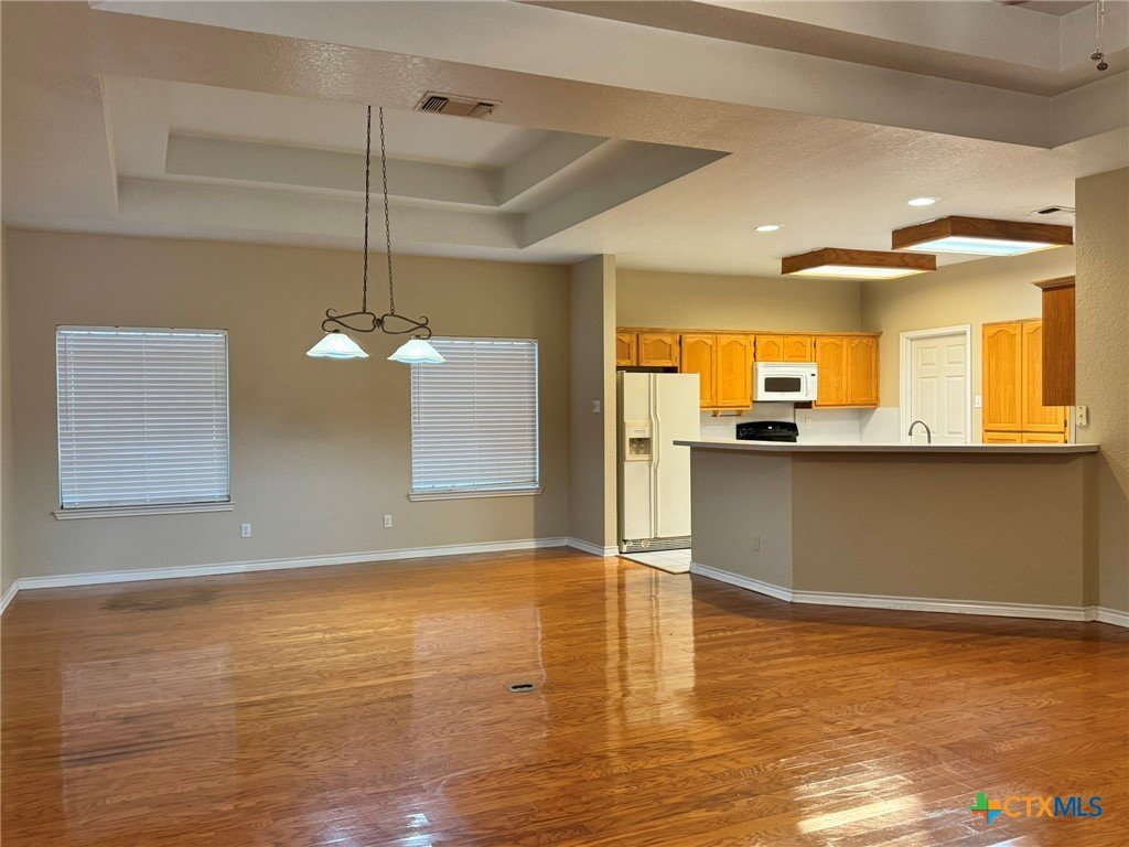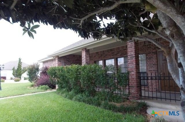 Single story 3 Bedroom, 2.5 baths in a garden home neighborhood in Seguin, Tx. This spacious home is on a corner lot; you are welcomed by a large and lovely gated, covered, front porch great for early morning or evening relaxing. It is a split bedroom design with a convenient 1/2 bath for your guests. The open living/dining/kitchen concept is great for entertaining. There is an abundance of kitchen cabinets and included appliances are the refrigerator, range, dishwasher, microwave and disposal. The inside utility room has additional cabinets, and the oversized 2 car garage has a garage door opener. Nicely landscaped and a bonus of an automatic sprinkler system. Conveniently located to grocery shopping, department stores, restaurants and hospital.