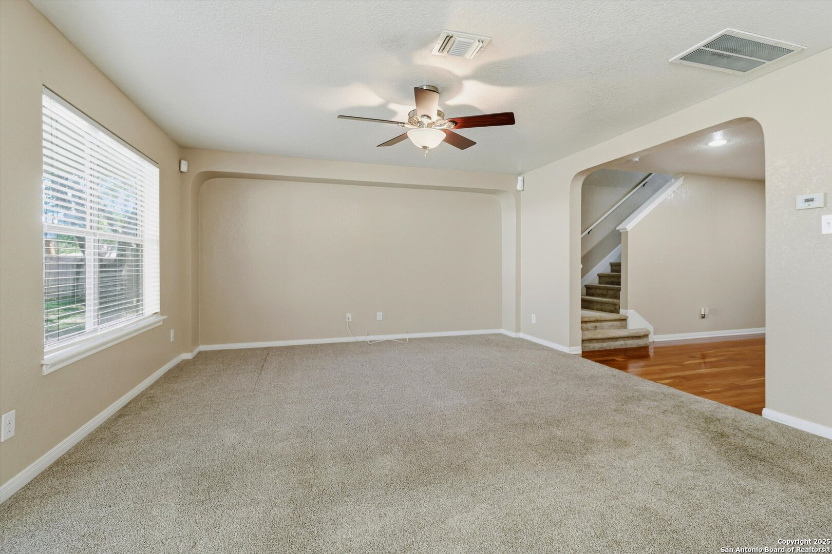 This well-priced 4-bedroom, 2.5-bath home offers incredible value in a great school-zone location. A warm wood-floor entry welcomes you into an open layout featuring ceramic tile throughout the downstairs and carpet upstairs. The kitchen flows seamlessly into the family room, with a second living area upstairs that's perfect as a game room, media space, or retreat. The spacious primary suite includes a garden tub, separate shower, and excellent storage. Outside, a large back patio provides the perfect setting for outdoor dining and enjoying the generous backyard with huge mature trees. Move-in ready and thoughtfully designed, this home delivers comfort, space, and convenience in today's market.