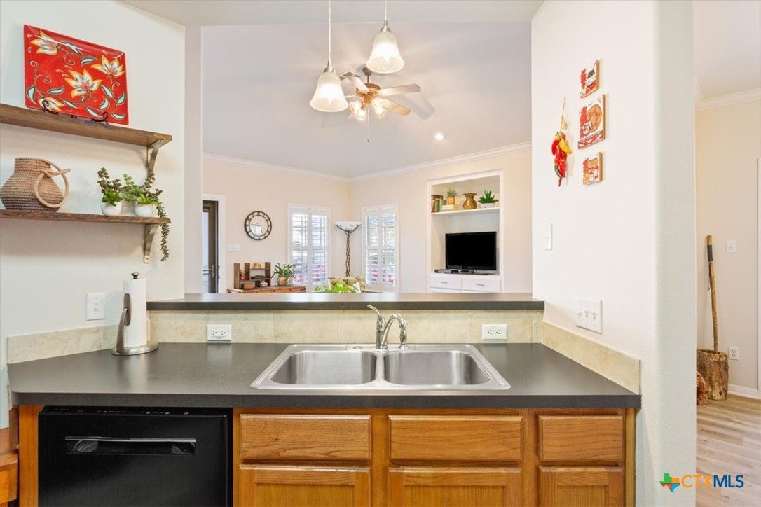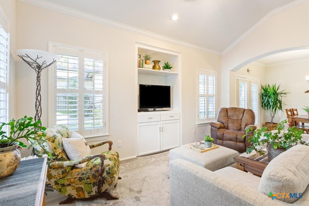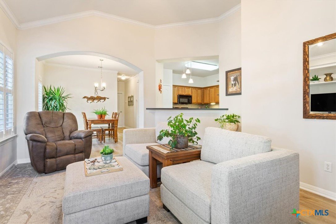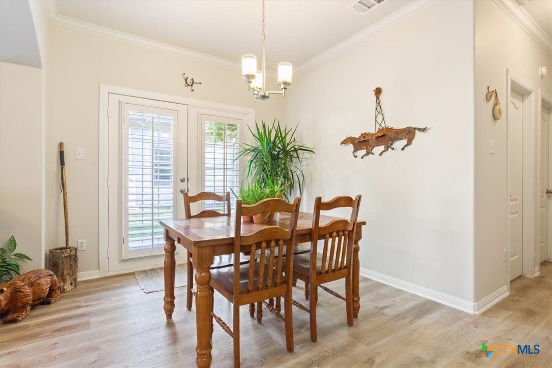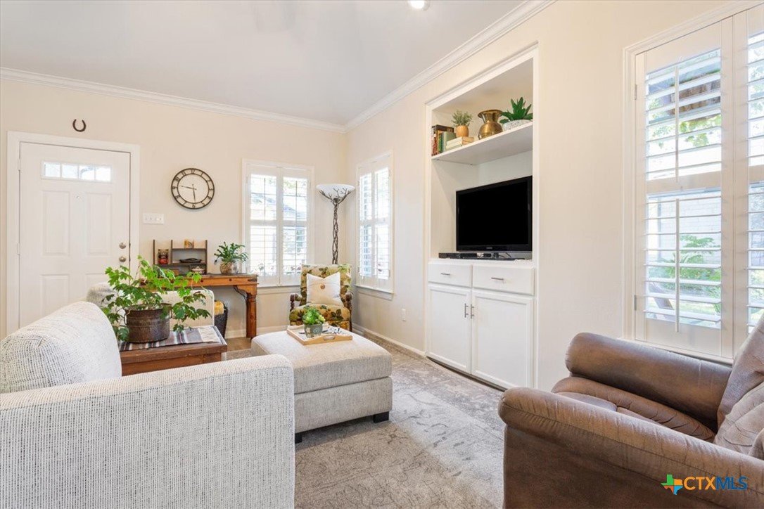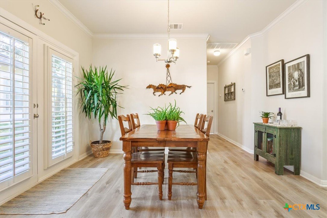 Welcome to this charming, move-in ready, 2-bedroom, 2-bathroom condo in a peaceful, gated community in Austin, TX 78749 zip code. Spanning 1,131 sq ft, this inviting single-story home offers a relaxing environment perfect for unwinding after a busy day. You'll enjoy the visually pleasing perennials as you enter your new home. Step inside to discover a beautifully maintained interior with crown molding in the living and dining areas. The LVP flooring throughout the home provides both durability and style. Plantation shutters offer added privacy and elegance while allowing for natural light to fill the space. The open living and dining areas create a seamless flow, ideal for entertaining or everyday living. Take advantage of the opportunity to make this well-maintained condo your new home. The LVP flooring was installed in Aug 2023 and the HVAC system was installed in April 2019.