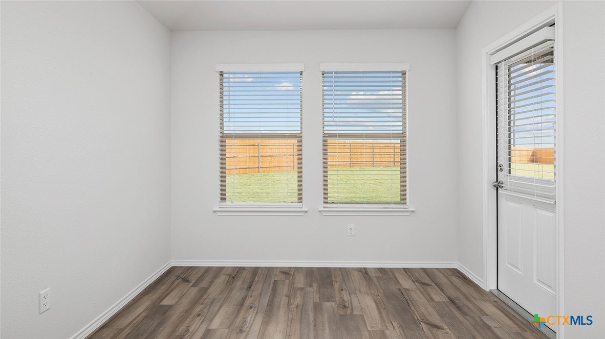 Our Bellvue is one of our one-story floorplans feature in our Mitchell Farm community in Killeen, Texas. This comfortable 3 bedroom and 2-bathroom home is the perfect fit for you. Inside this home, you’ll find approximately 1,415 square feet and has an open-concept layout designed to fit your needs. This home has beautiful features that create a welcoming ambiance, and the 2-car garage ensures plenty of space for vehicles and storage. The beautiful kitchen with shaker-style cabinetry and granite countertops. It is set off from the living area by a kitchen island with a built-in sink. End your day by relaxing under the covered patio, where you can enjoy the nature from the backyard. The primary bedroom will make you feel right at home. With an attached primary bathroom, starting your day or winding down will be a breeze. A large walk-in closet ensures plenty of storage space. The spacious secondary bedrooms are carpeted and have easy access to the laundry room and secondary bathroom. Every D.R. Horton home has smart home technology built in. Feel connected as you control and secure your home through the Qolsys smart panel, through your phone, or even with your voice. Find your home today with the Bellvue floorplan.