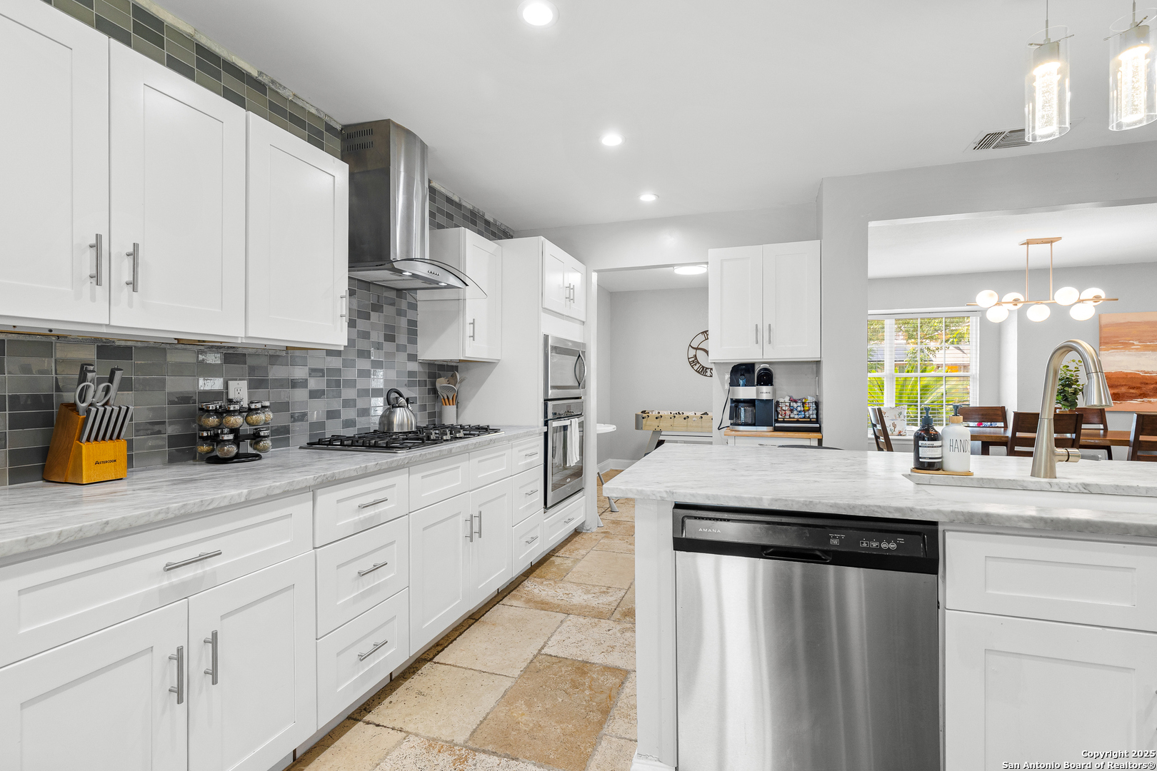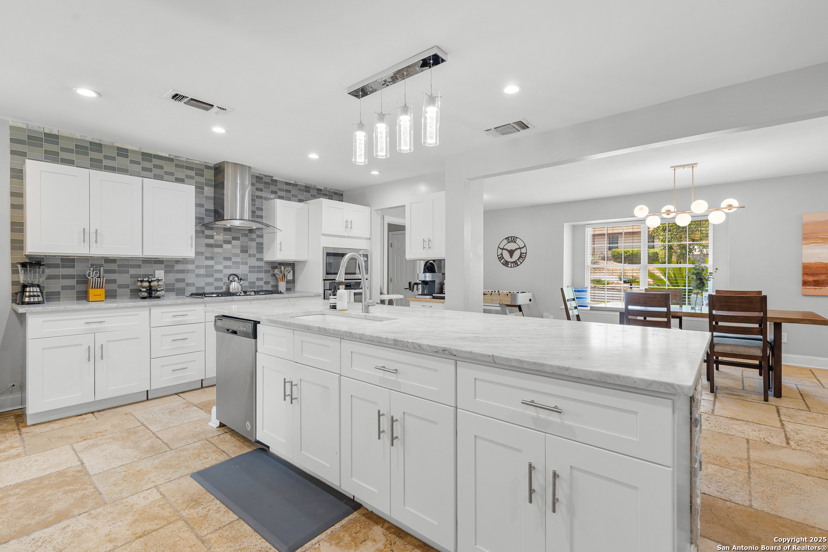 Evening Open House, Thursday OCT 30th 5pm-7pm. Perched on a spacious 0.26acre lot shaded by mature trees in a quiet, established neighborhood, this updated single story home is a modern retreat minutes from the Medical Center and Highway 410 - and a prime candidate for year round Airbnb bookings. Inside, the bright open floor plan flows effortlessly from living room to dining to kitchen, where a stunning, oversized island anchors the space with bar seating and gas cooking. Natural light washes across elegant stone floors and crisp, contemporary finishes, giving every room a clean, inviting feel. Four bedrooms and two sleek baths with walk in showers provide comfort and flexibility, while bonus areas can easily become a game room, office, or kids' space. Recent upgrades - including a 2022 HVAC replacement, spray foam insulation, updated breaker boxes, and a water softener - add longterm value and peace of mind. Step out back to an expansive yard with a patio seating area, mature trees, and a full sprinkler system front and back. With its prime location and move in ready design, this home is priced to sell and an obvious choice for buyers seeking a seamless blend of comfort, convenience, and investment potential.