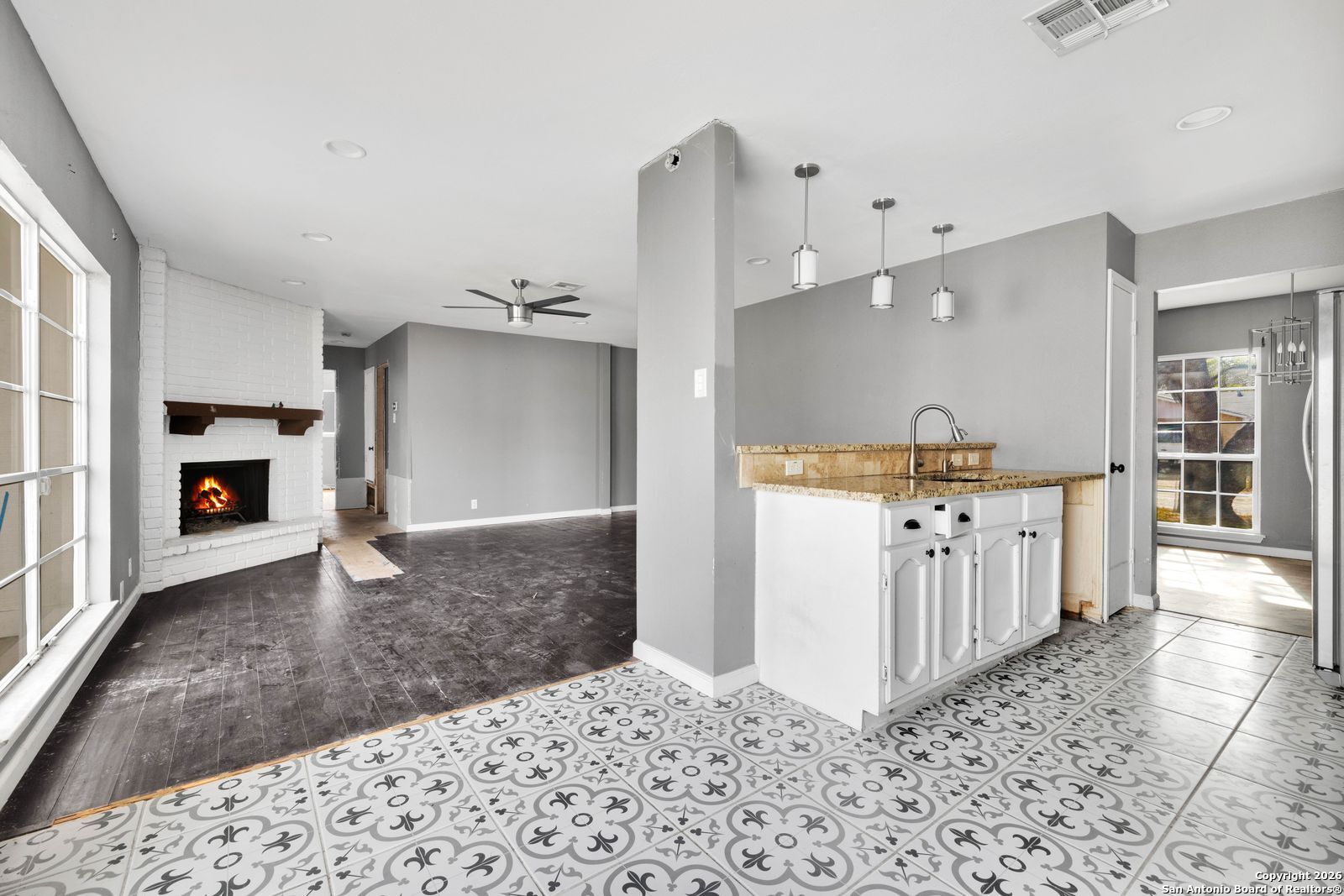 A charming older home tha truly offers a wonderful blend of classic character and inviting living spaces. The home feels incredibly light, airy, and open throughout. The kitchen, offers plenty of cabinet space and features a lovely breakfast bar that's perfect for entertaining guests. The huge family room is another highlight, ideal for gatherings, and includes a cozy fireplace that adds a touch of warmth. It also boasts a nice view of the backyard and patio, providing additional space for entertaining outdoors. The three bedrooms are nice and spacious. The home is needs work but with some Tender Loving Care, it has immense potential to become a truly special home.