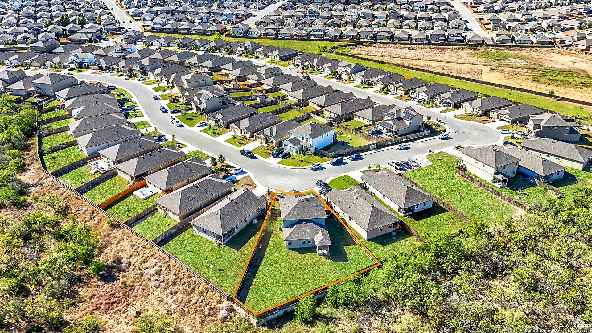 OPEN HOUSE: 02/07/2026 from 11:00 AM to 2:00 PM. Welcome to 6812 Orff Pt, a stunning 5-bedroom, 2.5-bath home nestled in the desirable Whisper Falls community. Built in 2022 by DR Horton, this 2,522 sq ft two-story beauty sits on an expansive 0.224-acre lot with no rear neighbors and lush green space behind-perfect for privacy and peaceful views. Located just minutes from Lackland AFB and NSA Texas, this home offers unbeatable convenience for military and commuters alike. Step inside to discover an open floor plan with a spacious island kitchen featuring granite countertops, gas cooking, stainless steel appliances, and a walk-in pantry. The large dining area can double as a home office, gym, or playroom-tailored to your lifestyle. The downstairs primary suite includes a generous walk-in closet and a luxurious bath with double vanities, a garden tub, and a separate shower. Upstairs, you'll find four additional bedrooms, a full bath, and an oversized loft that's ideal as a second living room, media space, or homework zone. One of the secondary bedrooms is smaller and would be perfect as a game room, craft space, or home office. Throughout the home, you'll enjoy ample storage, a dedicated laundry room, and thoughtful upgrades like vinyl flooring, ceiling fans, and a covered back patio with deck for outdoor entertaining. Community amenities include a pool, clubhouse, jogging trails, park, basketball court, and more. Zoned to highly-rated Medina Valley ISD with schools just minutes away. Whether you're upsizing or relocating, this home has it all-style, space, and location!