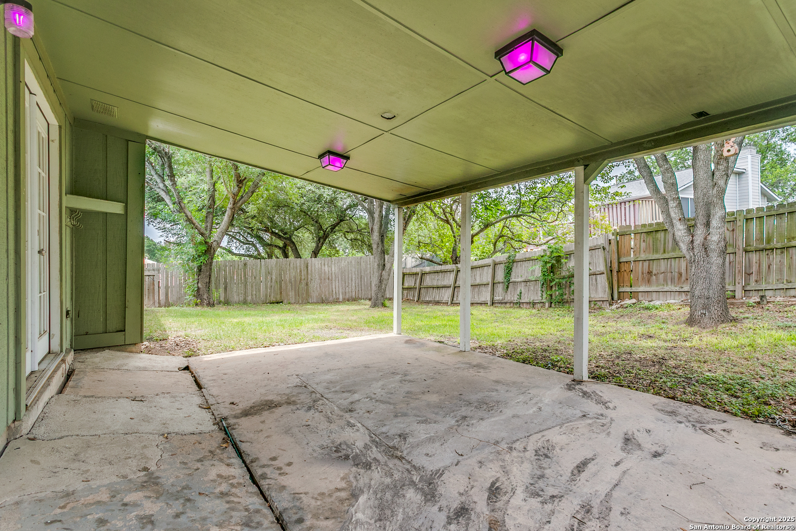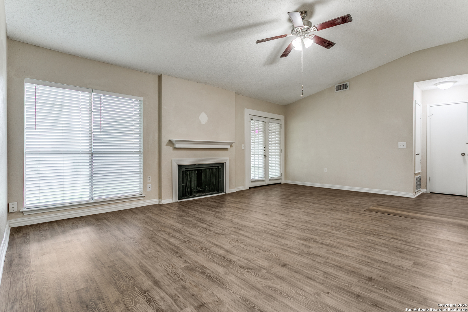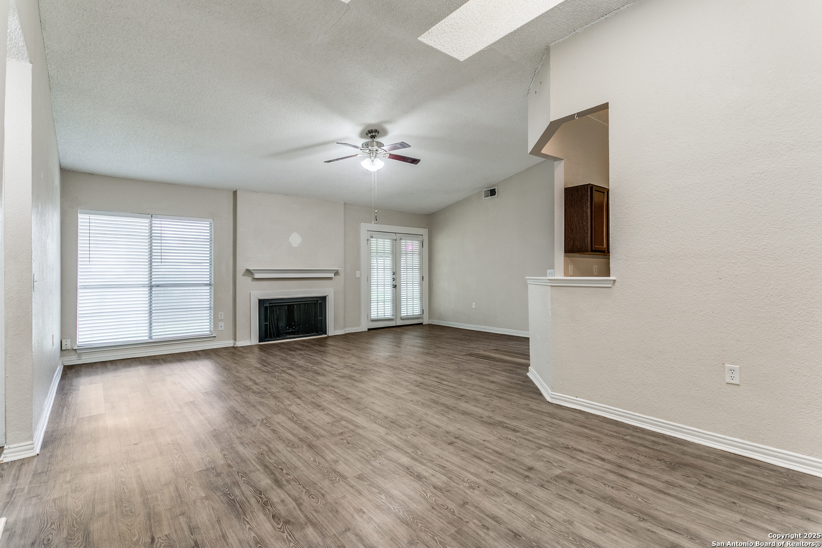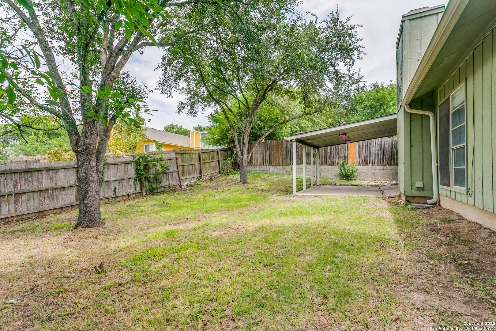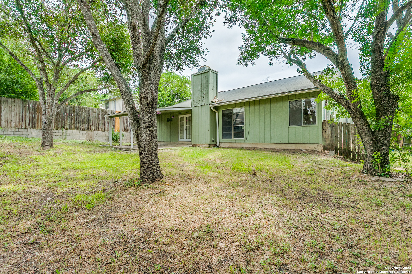 Welcome to 6815 Hillside Peak, a well-maintained one-story home featuring 3 bedrooms, 2 bathrooms, and a functional layout designed for comfortable living. Upon entry, you're welcomed by an open-concept living, dining, and kitchen area with a bright, inviting atmosphere. The living room boasts high ceilings, a cozy wood-burning fireplace, and access to the backyard. The kitchen offers granite countertops, ample cabinetry, dual sinks, and generous counter space. The primary bedroom serves as a private retreat with an ensuite bath including a dual vanity and tub/shower combo. Two secondary bedrooms are spacious and share a full bath with a similar setup. Outside, enjoy a fully fenced backyard with mature trees, a covered patio, and plenty of green space. A two-car attached garage provides secure parking and extra storage. Conveniently located and move-in ready, this home offers the perfect blend of comfort, space, and everyday functionality.