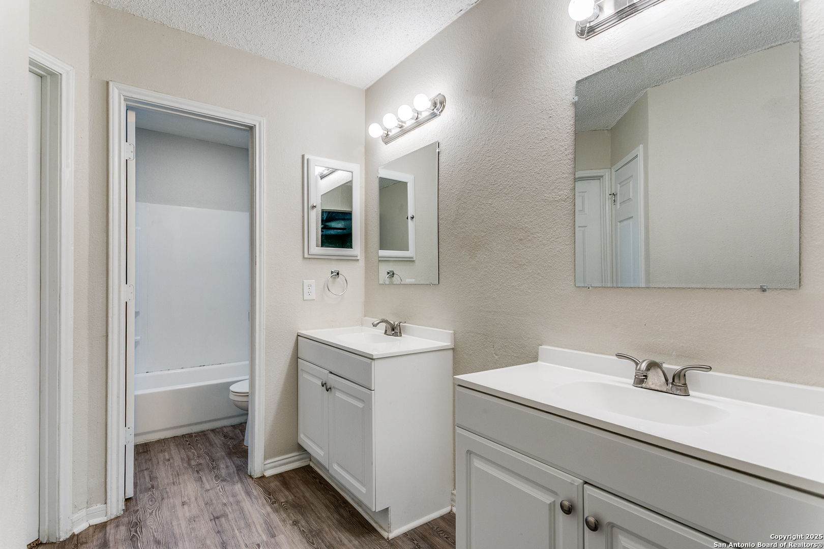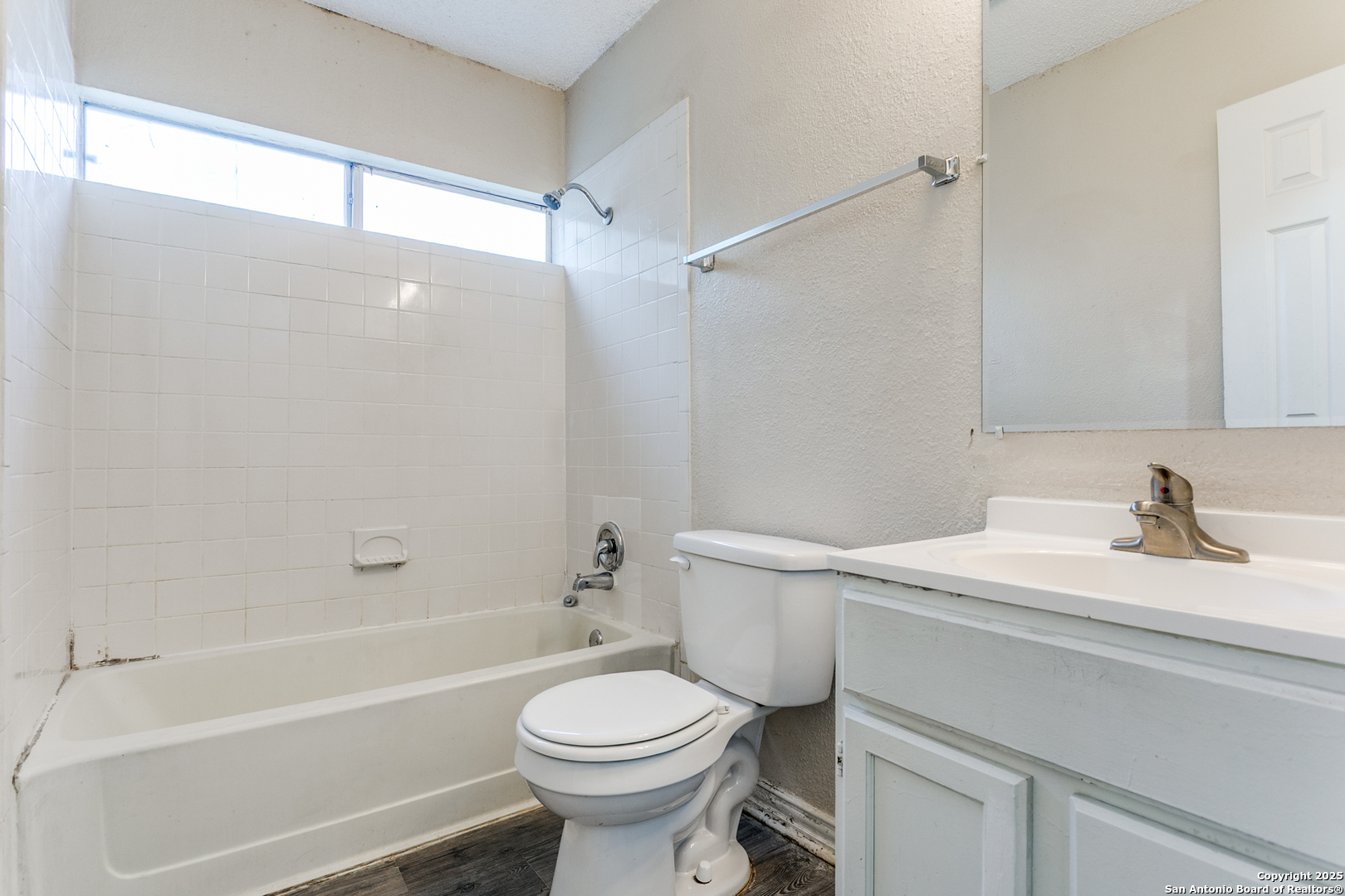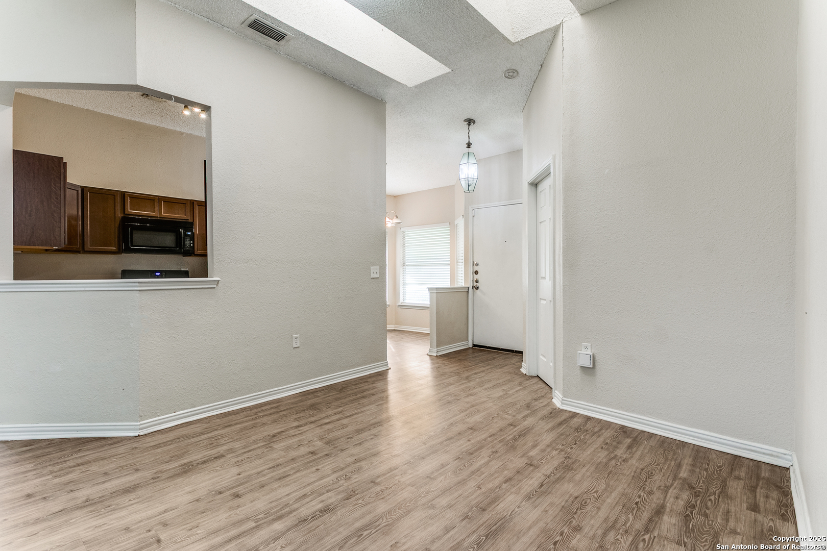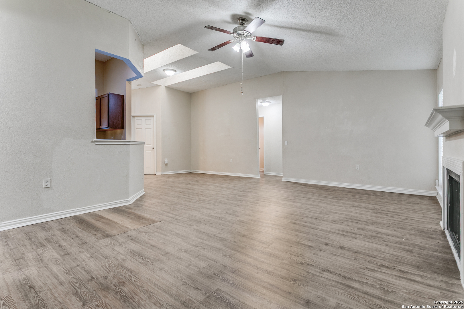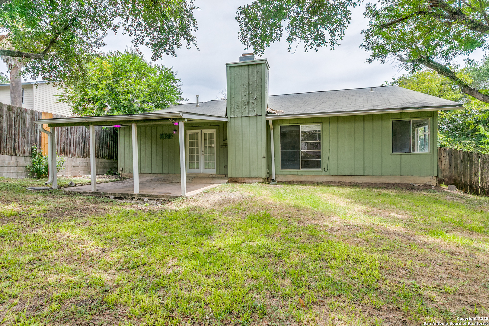 Welcome to 6815 Hillside Peak, a well-maintained one-story home featuring 3 bedrooms, 2 bathrooms, and a functional layout designed for comfortable living. Upon entry, you're welcomed by an open-concept living, dining, and kitchen area with a bright, inviting atmosphere. The living room boasts high ceilings, a cozy wood-burning fireplace, and access to the backyard. The kitchen offers granite countertops, ample cabinetry, dual sinks, and generous counter space. The primary bedroom serves as a private retreat with an ensuite bath including a dual vanity and tub/shower combo. Two secondary bedrooms are spacious and share a full bath with a similar setup. Outside, enjoy a fully fenced backyard with mature trees, a covered patio, and plenty of green space. A two-car attached garage provides secure parking and extra storage. Conveniently located and move-in ready, this home offers the perfect blend of comfort, space, and everyday functionality.
