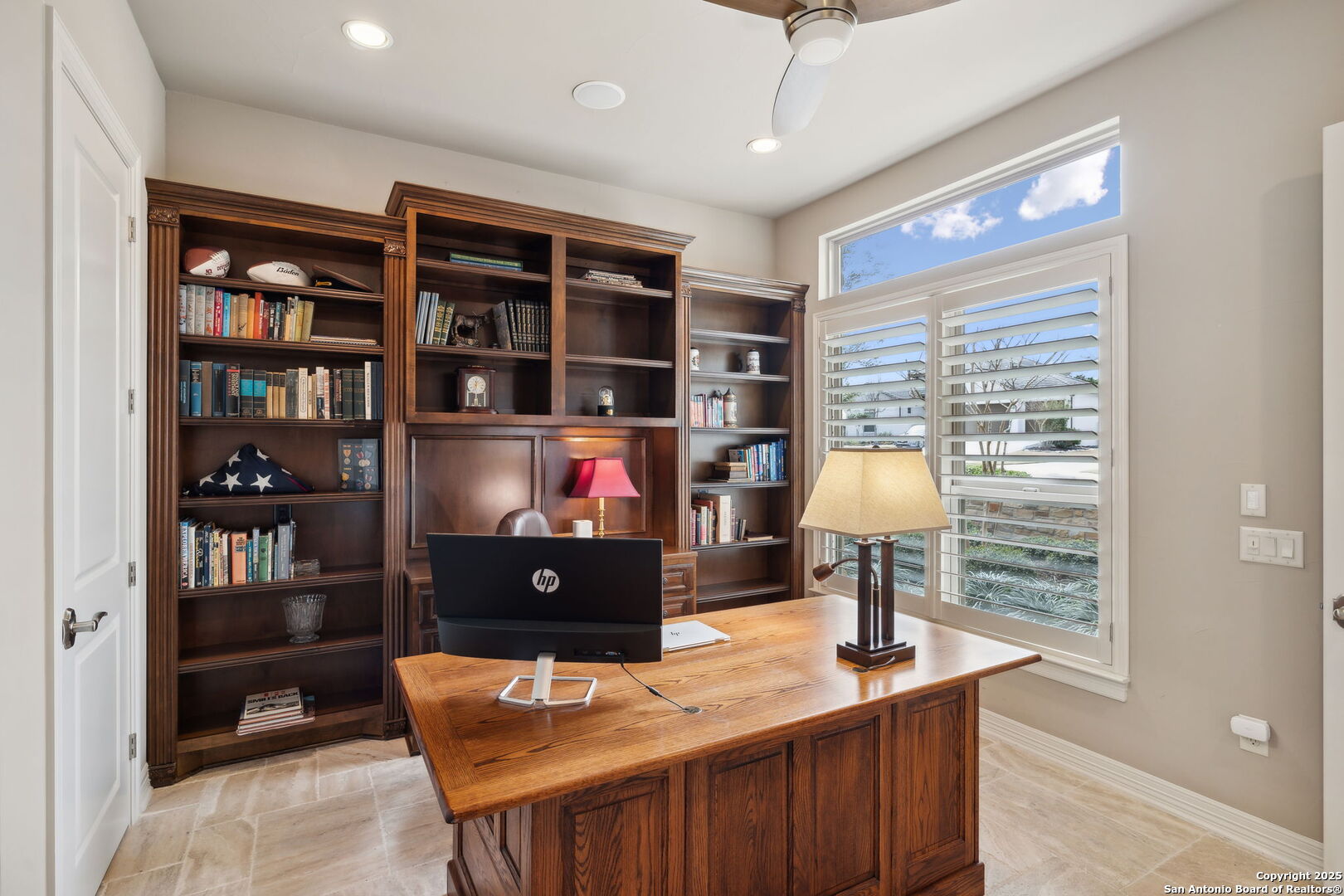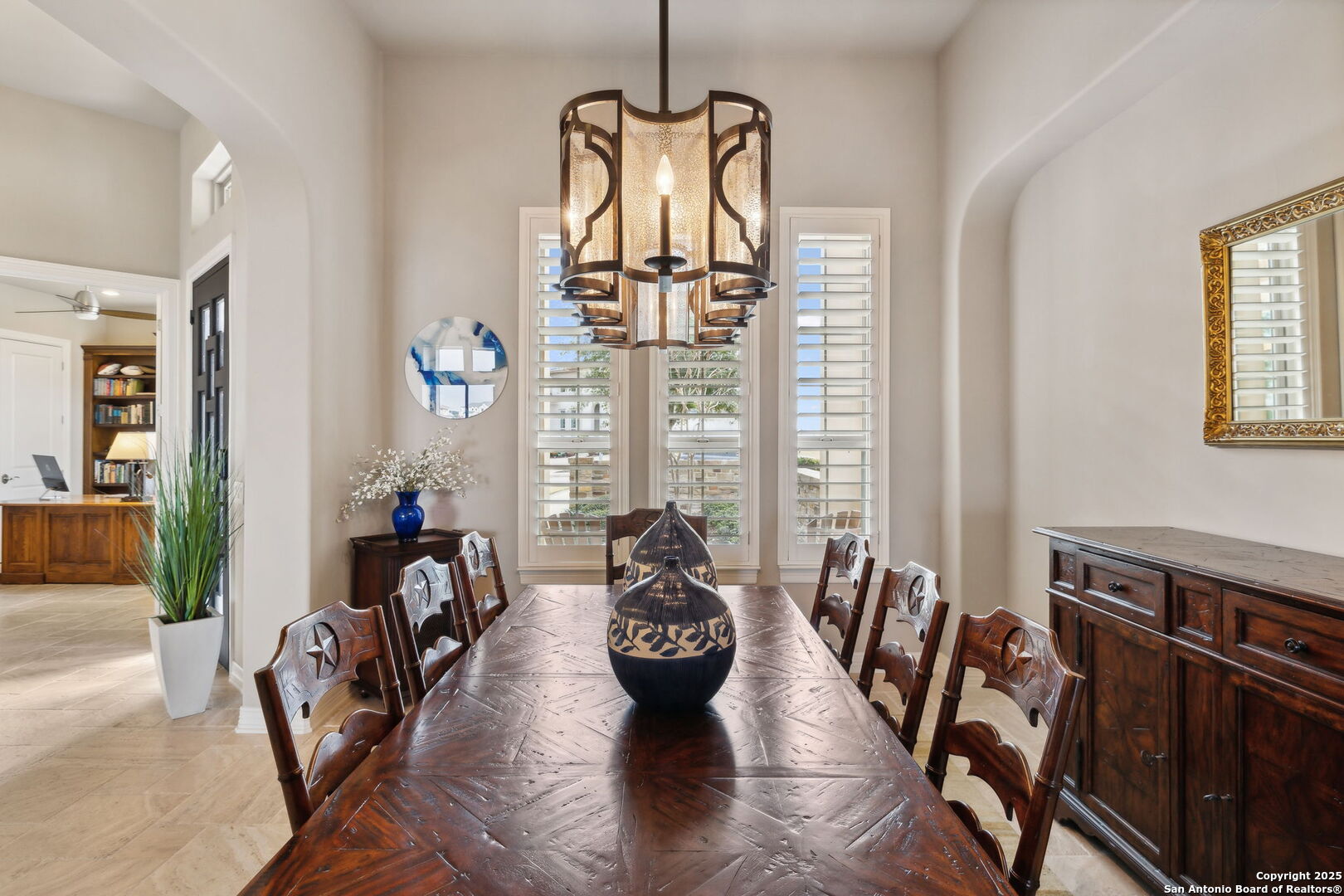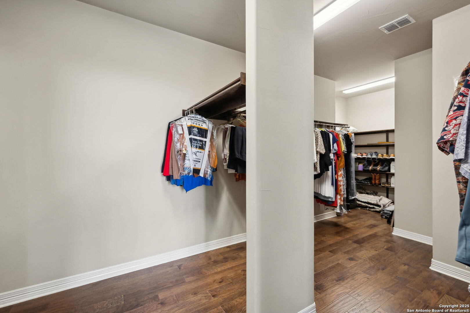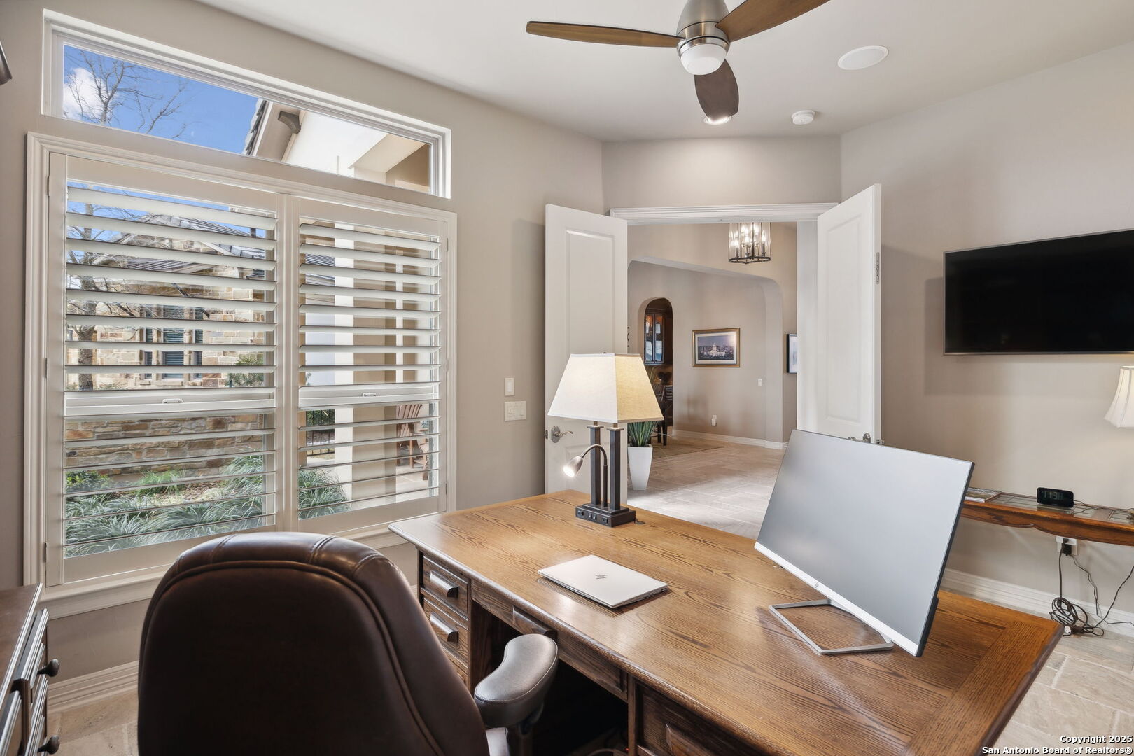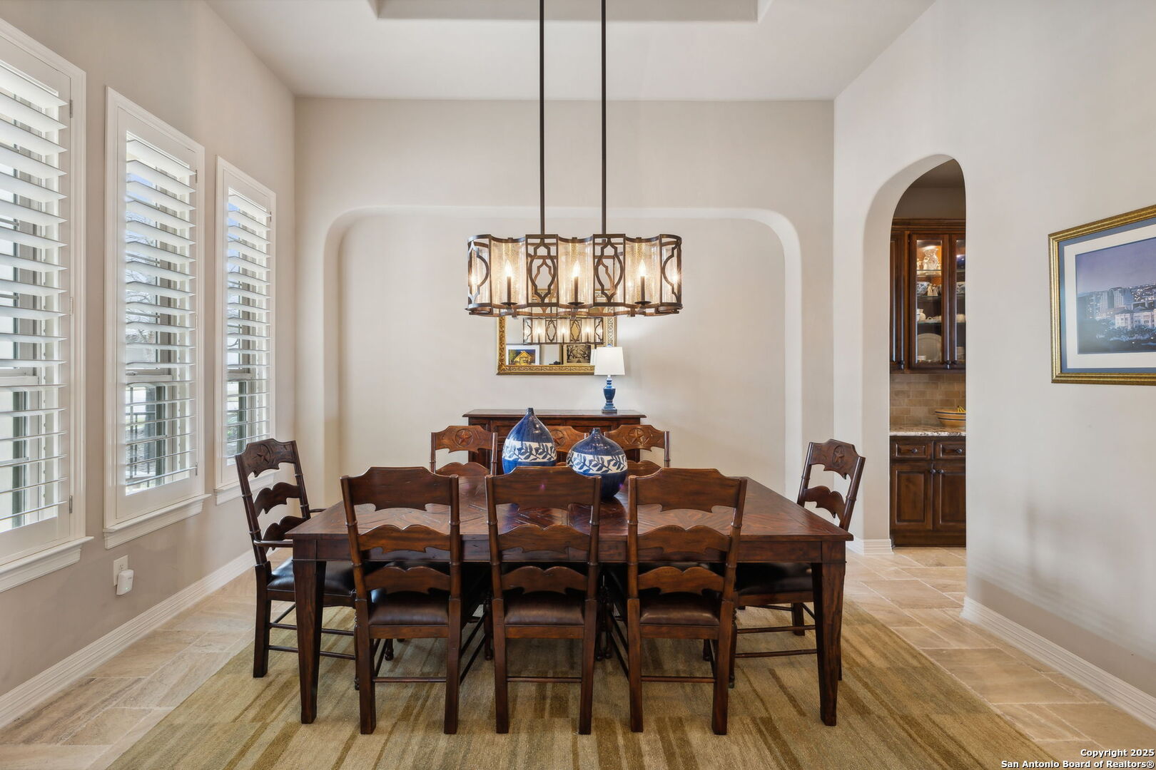 Luxury lifestyle for the buyers wanting lock-and-leave conveniences in a gated community. Beautiful, quality finishes and top-of-the-line lighting, flooring, millwork, hardware & plumbing fixtures. Shutters across the front of the home provide privacy and exquisite curb appeal. Electric shades across the back of the home provide convenience & privacy while preserving the magnificent hill country views. Gorgeous hardwood floors and Turkish Travertine tile throughout the home for a luxury feel, and ease-of-maintenance. Huge primary bedroom with amazing views & extra-large closet. Enjoy the oversized tub with fabulous sunset hill country views (& a motorized shade for privacy). Huge island kitchen with gorgeous granite counters, Thermador gas appliances, double oven and Filtered water in the farm sink. Butler's pantry leads to the formal dining for added storage and convenience. Collapsible patio doors extend the inside living to outdoors. Large, landscaped yard with recently-resurfaced pool & stamped concrete patio to watch the gorgeous sunsets--backs to greenbelt. Oversized backyard with "puppy pickets" in the iron fence is great for dogs.