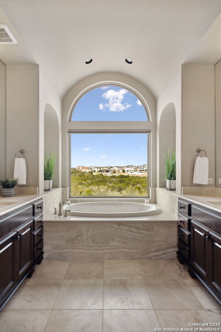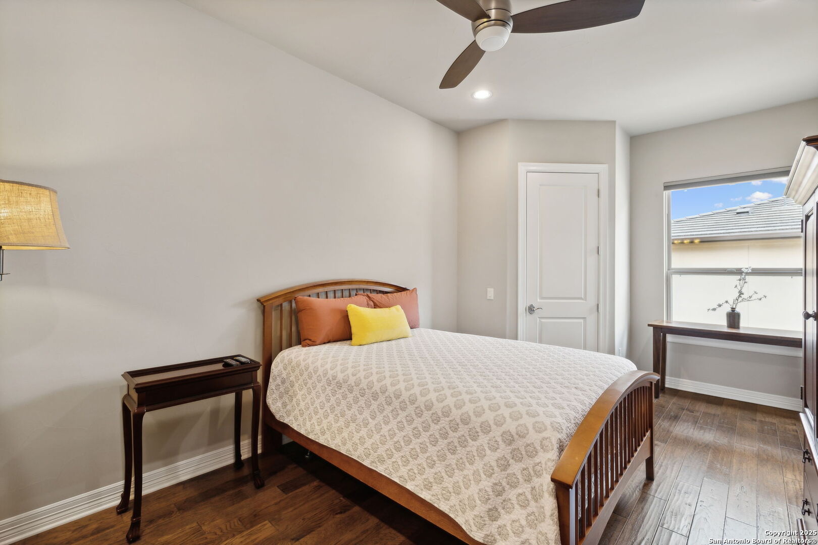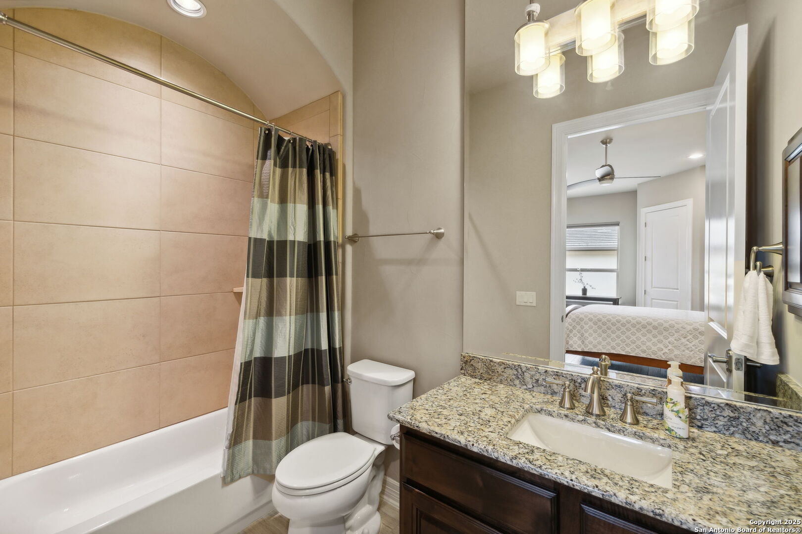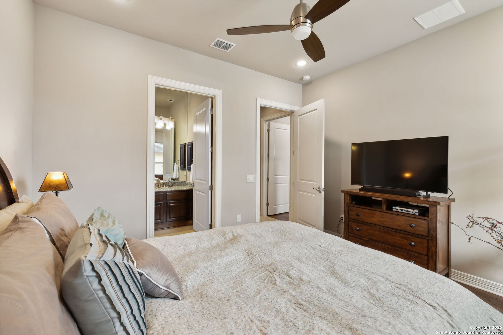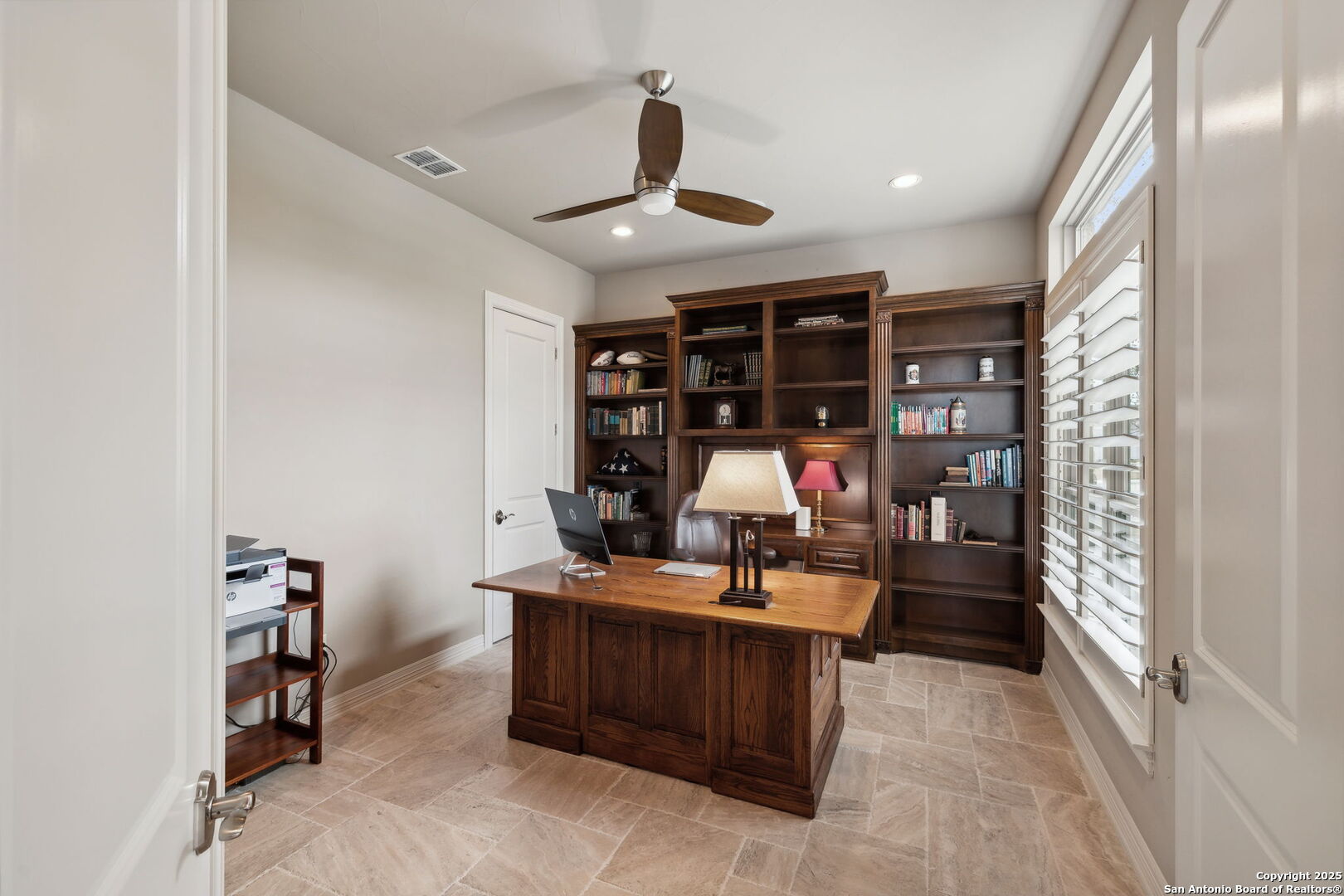 Luxury lifestyle for the buyers wanting lock-and-leave conveniences in a gated community. Beautiful, quality finishes and top-of-the-line lighting, flooring, millwork, hardware & plumbing fixtures. Shutters across the front of the home provide privacy and exquisite curb appeal. Electric shades across the back of the home provide convenience & privacy while preserving the magnificent hill country views. Gorgeous hardwood floors and Turkish Travertine tile throughout the home for a luxury feel, and ease-of-maintenance. Huge primary bedroom with amazing views & extra-large closet. Enjoy the oversized tub with fabulous sunset hill country views (& a motorized shade for privacy). Huge island kitchen with gorgeous granite counters, Thermador gas appliances, double oven and Filtered water in the farm sink. Butler's pantry leads to the formal dining for added storage and convenience. Collapsible patio doors extend the inside living to outdoors. Large, landscaped yard with recently-resurfaced pool & stamped concrete patio to watch the gorgeous sunsets--backs to greenbelt. Oversized backyard with "puppy pickets" in the iron fence is great for dogs.