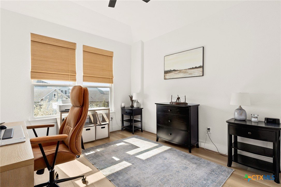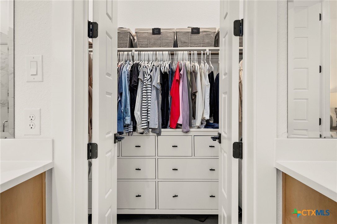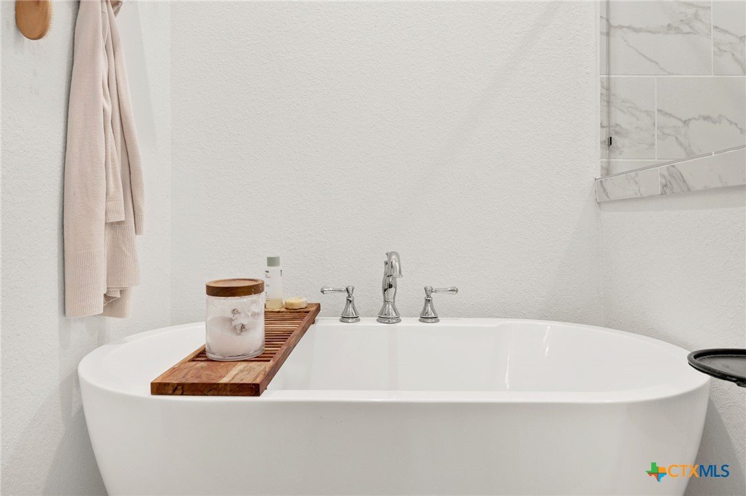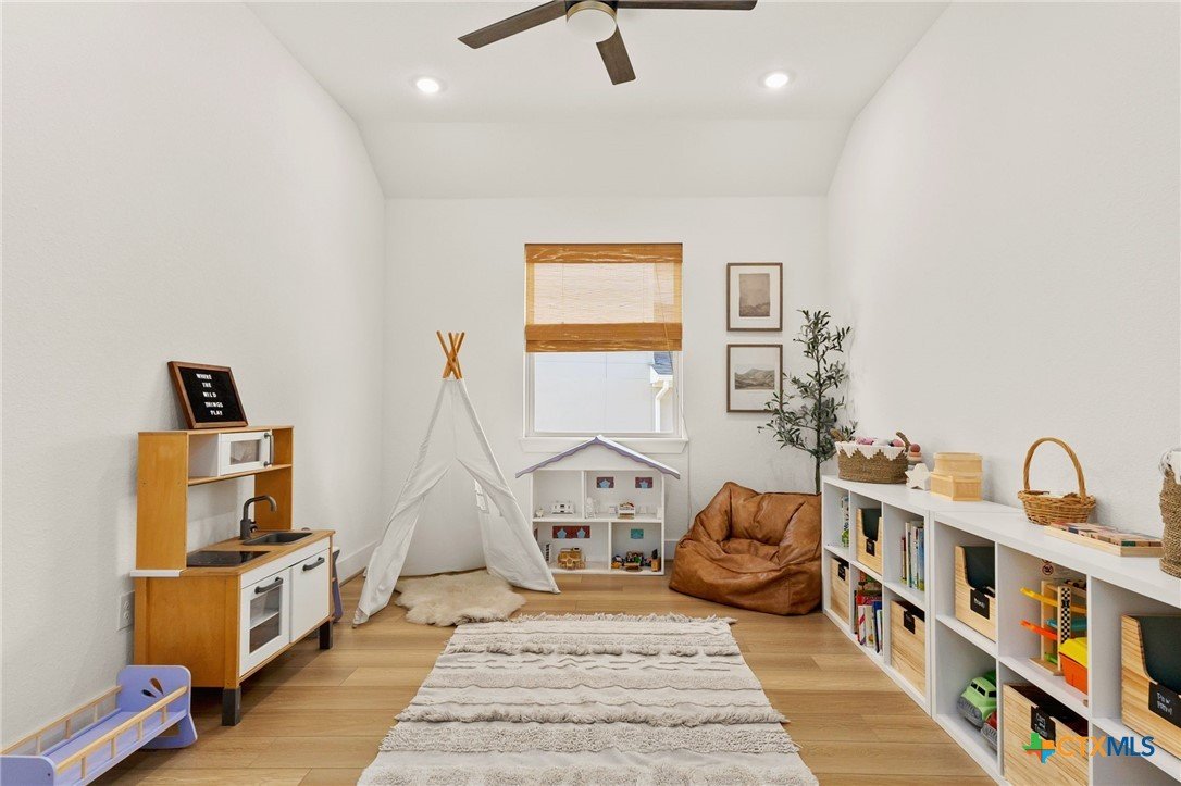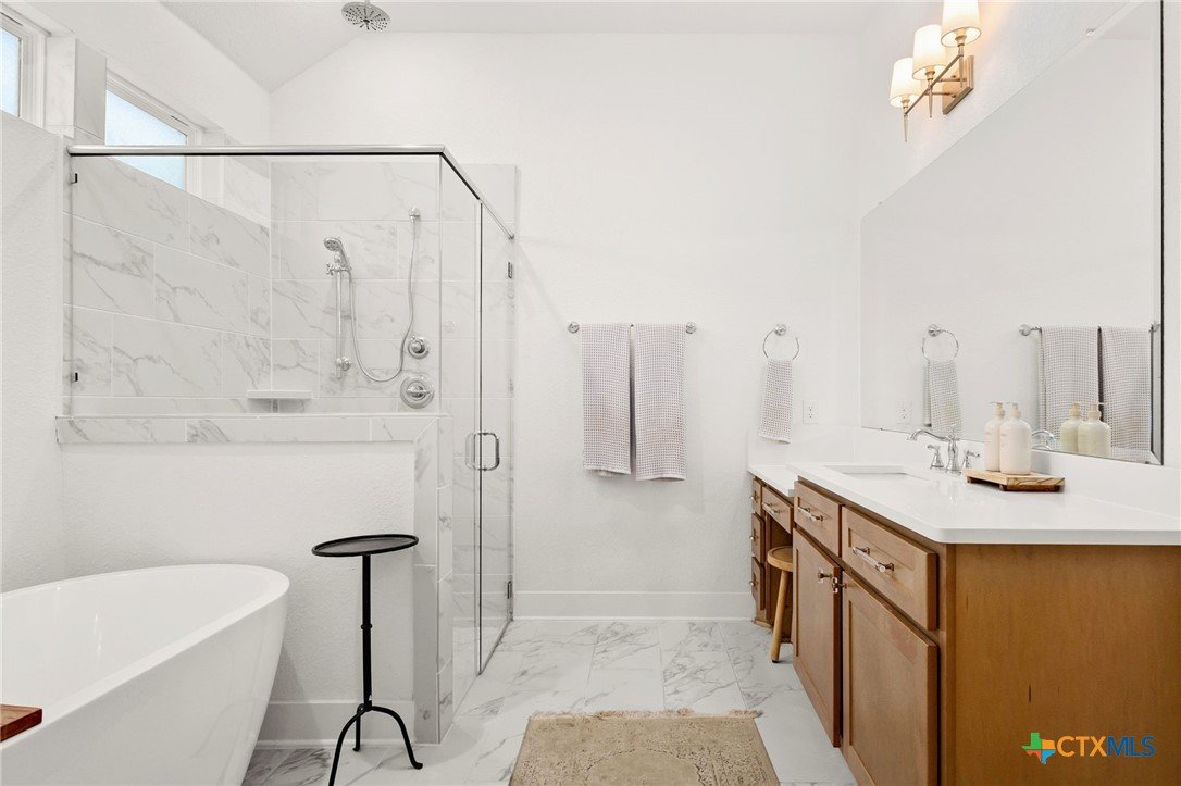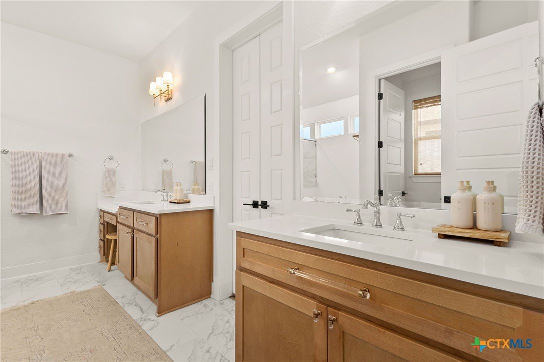 Welcome to this stunning 4-bedroom, 3-bathroom home inside the loop of New Braunfels! From the moment you step inside, you'll be captivated by the abundance of natural light that fills every room. The open-concept floor plan is perfect for both everyday living and entertaining, featuring high-end upgrades throughout, including premium flooring, designer lighting, and custom finishes that elevate the space. The gourmet kitchen boasts gas cooking, a spacious island, and beautiful cabinetry, making it a dream for any home chef. The expansive living and dining areas flow effortlessly, providing a perfect space for gatherings or quiet relaxation. The master suite is a true retreat, offering a luxurious en-suite bathroom with a soaking tub, separate shower, double vanities, and dual closets. Each of the additional bedrooms is generously sized, with plenty of closet space and ample natural light. The home also has a practical flex room that could be used as an office, play room, or media space. Step outside to the Texas-sized patio, ideal for outdoor living and entertaining. Enjoy the serene views of the greenbelt behind the property, offering both privacy and tranquility. Whether you're enjoying a cup of coffee in the morning or hosting a barbecue, this outdoor space is perfect for every occasion. Meticulously clean and meticulously maintained, this home is move-in ready and truly offers the best of New Braunfels living. Don't miss the opportunity to make this exceptional property your new home!