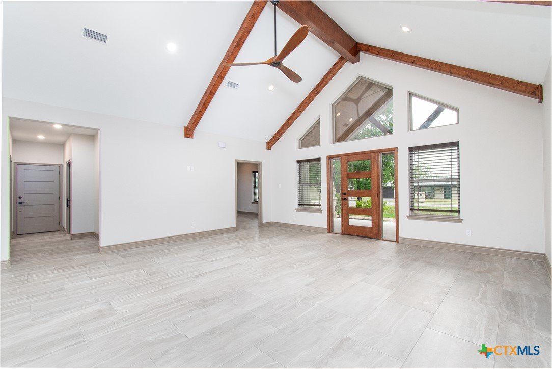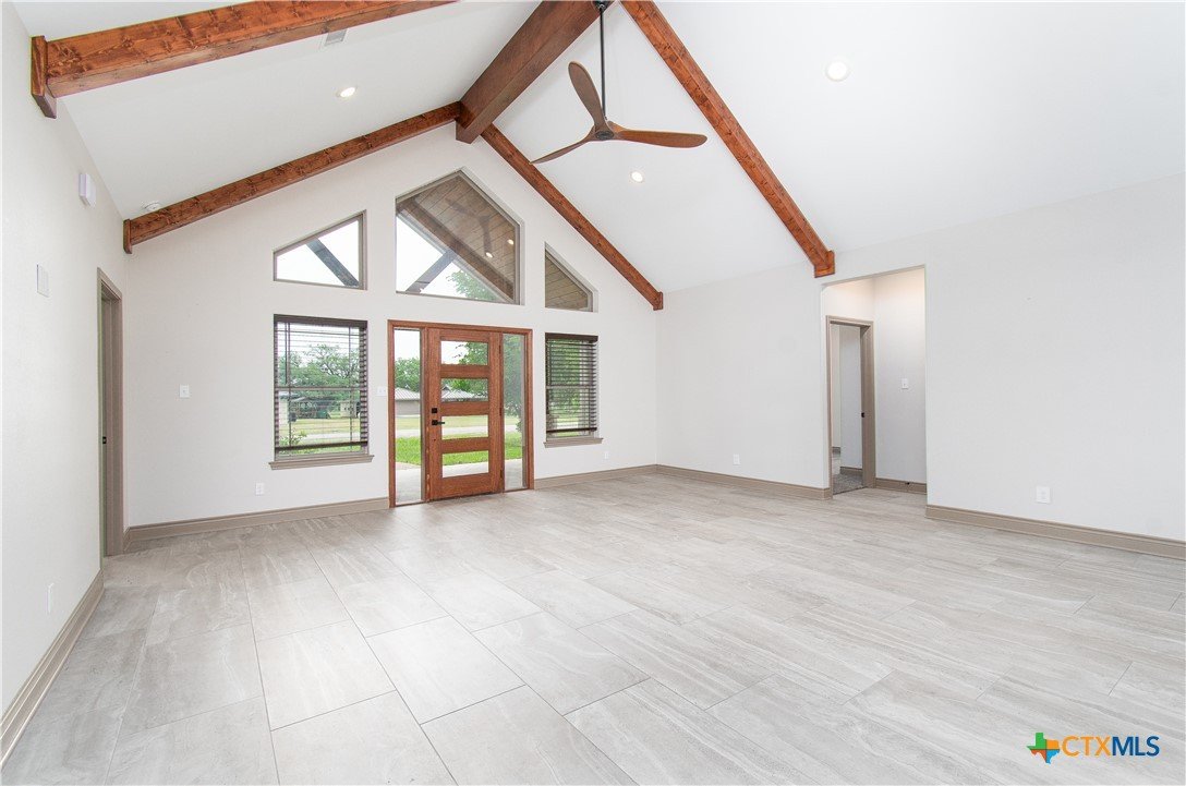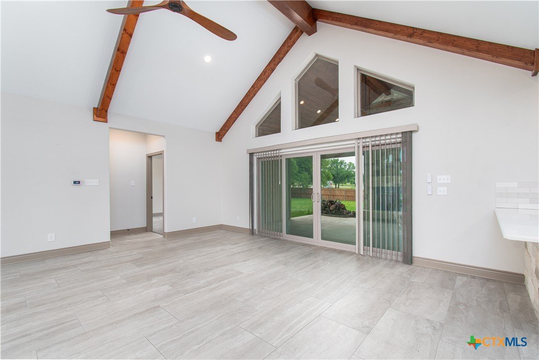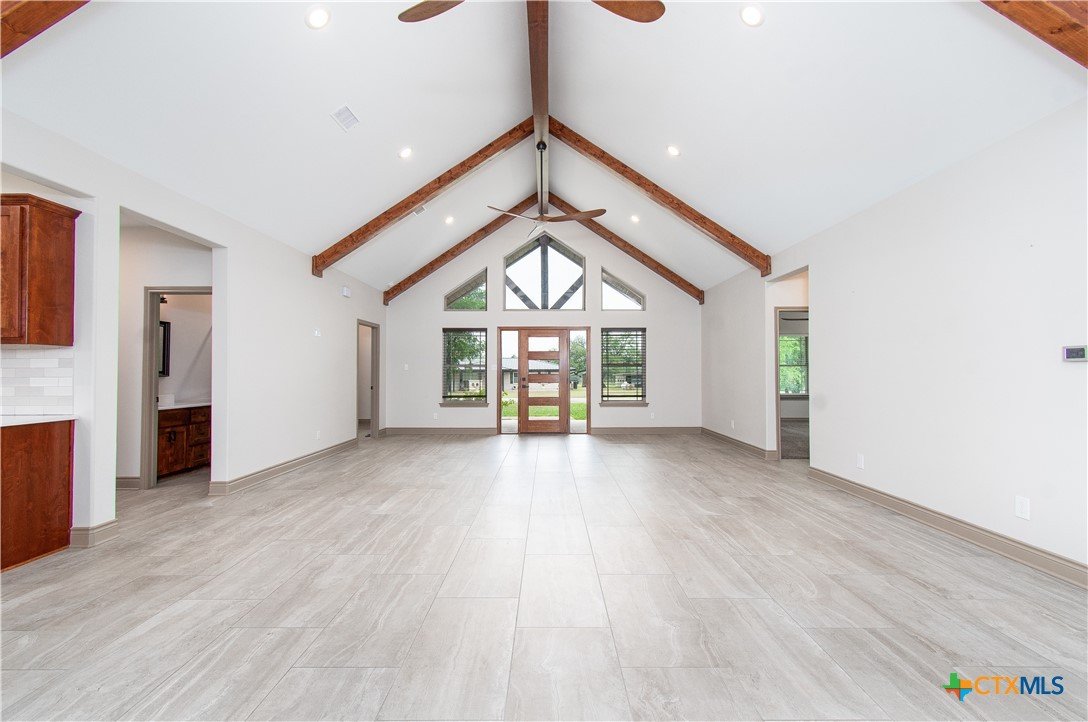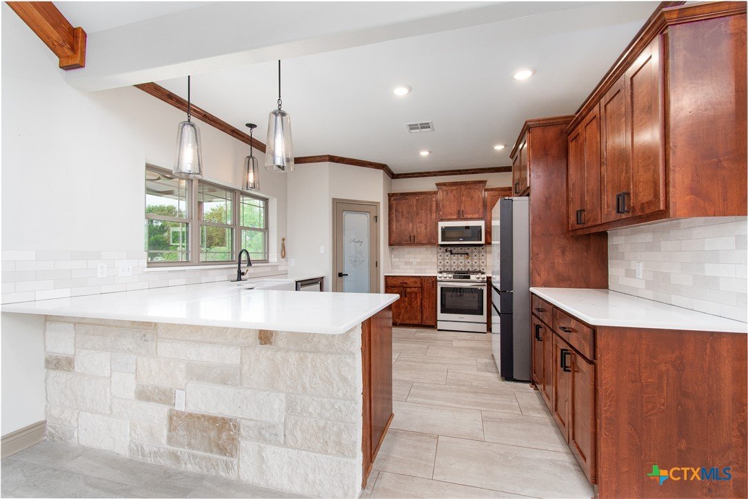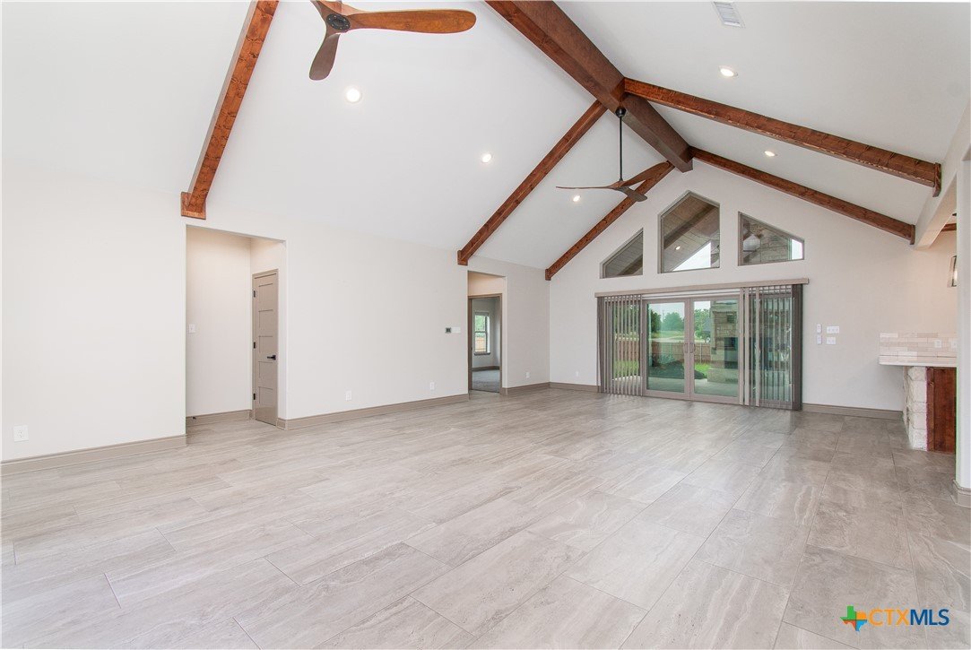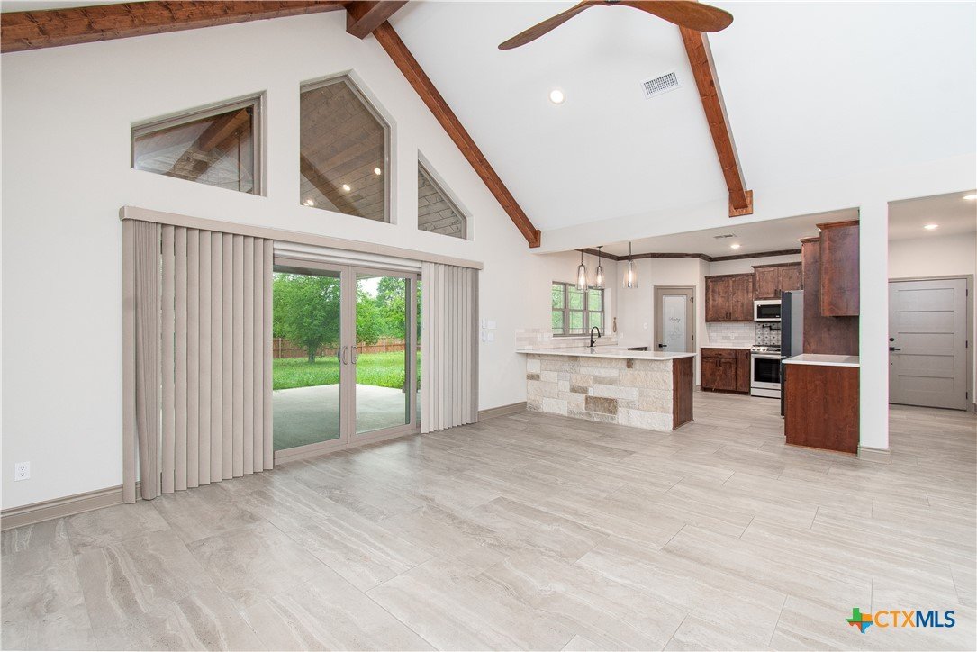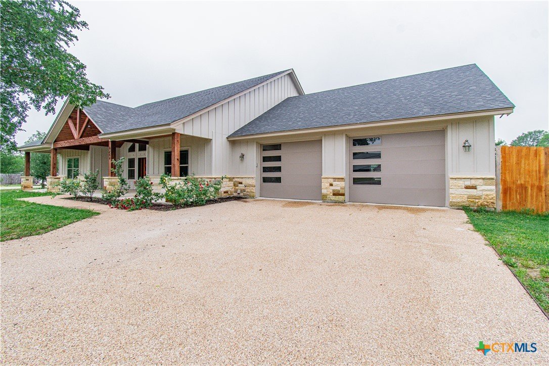 Stunning Custom Designer Home Near Lake Access; Welcome to this beautifully crafted custom home that blends modern elegance with thoughtful functionality. Boasting soaring vaulted ceilings and expansive windows, this home is filled with natural light and architectural charm. The gourmet kitchen is a chef’s dream, featuring gleaming quartz countertops, premium appliances, a pot filler, farmhouse sink, and ample space for entertaining. Enjoy the warmth and character of tile and exposed stone finishes throughout the interior, creating a refined yet rustic ambiance. The oversized garage includes an enclosed workshop complete with a workbench, ideal for hobbies or extra storage. Step outside to expansive covered patios in both the front and back, perfect for relaxing or entertaining year-round by the outdoor fireplace. Located just down the street from lake access, this home sits on a generously sized lot just under one acre — offering plenty of space to add a pool, shop and more. This home is also zoned for North Belton Schools and located in a lower tax area outside of city limits. Don't miss your chance to own this one-of-a-kind property that perfectly balances luxury, comfort, and convenience.